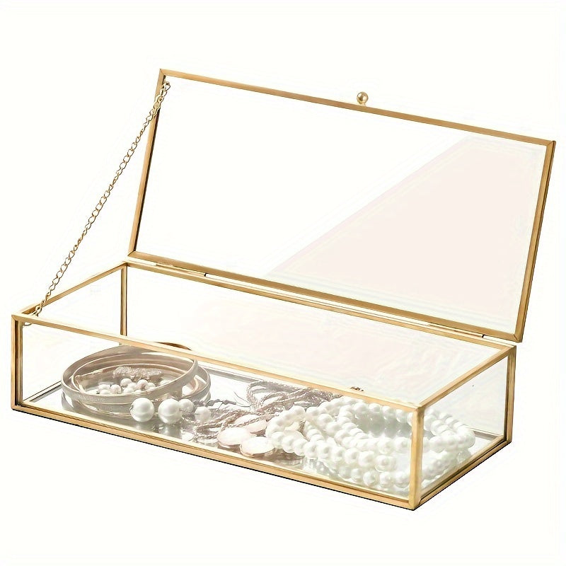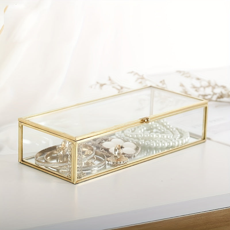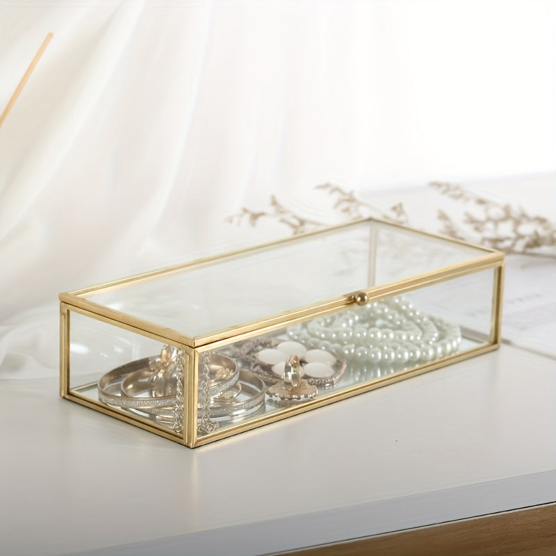 Прямоугольная стеклянная шкатулка для украшений с 1 отделением для браслетов, ожерелий и помад