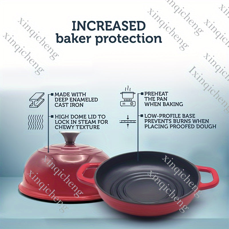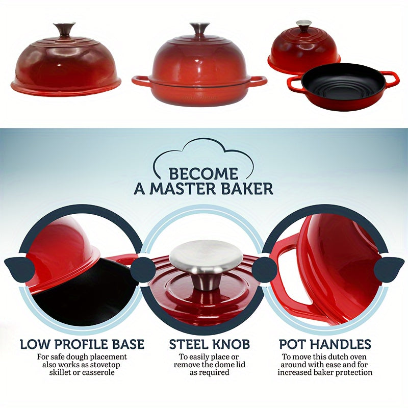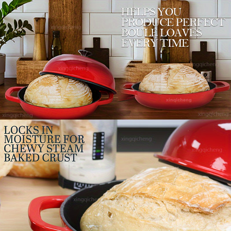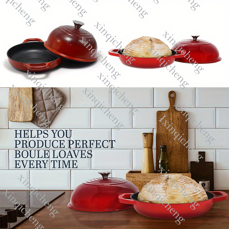 - "Красная эмалированная чугунная форма для хлеба - 9 дюймов с крышкой, отлично подходит для домашнего хлеба и закваски - прочное покрытие, идеальный кухонный подарок, безопасна для духовки, идеальный подарок для дома"