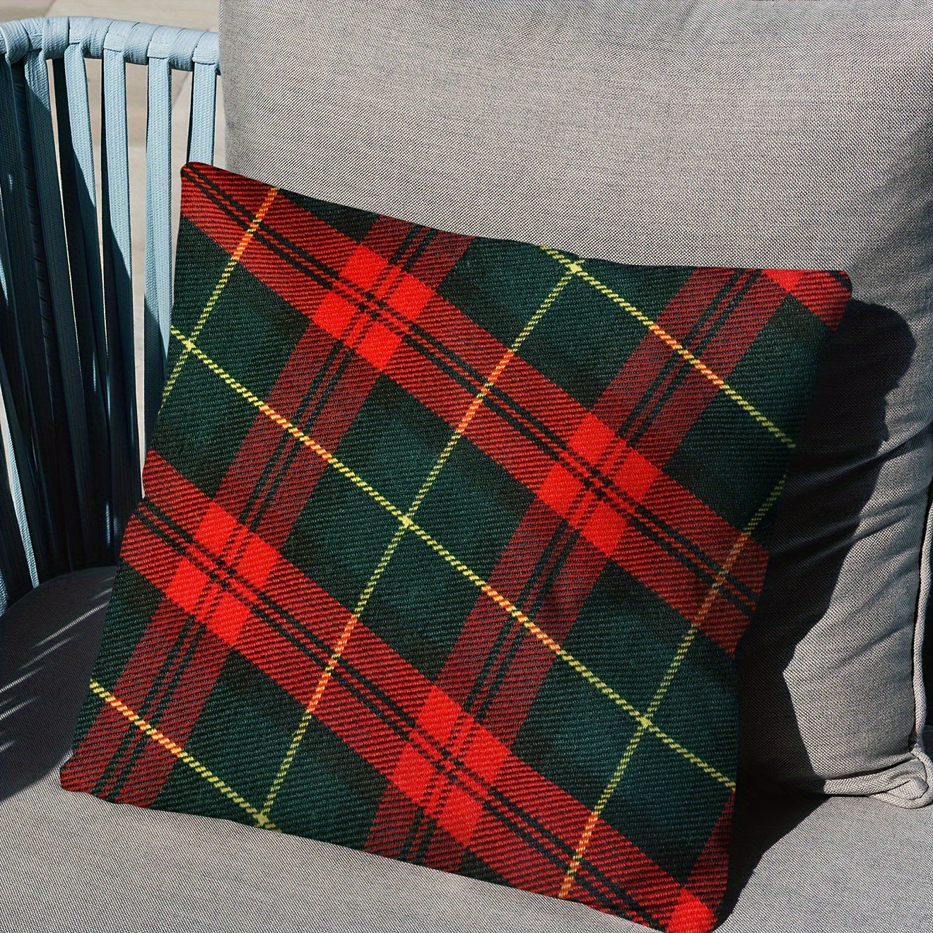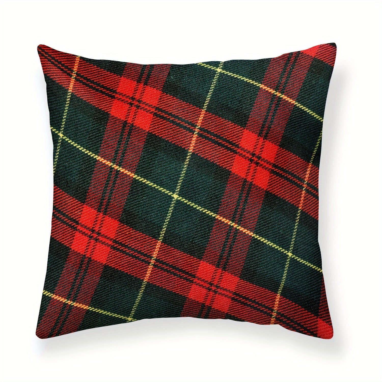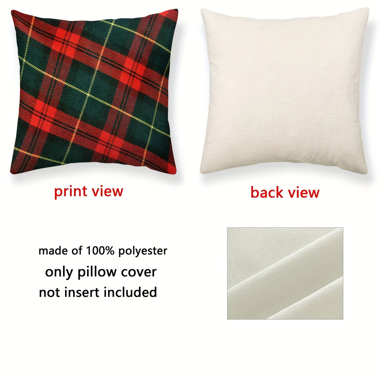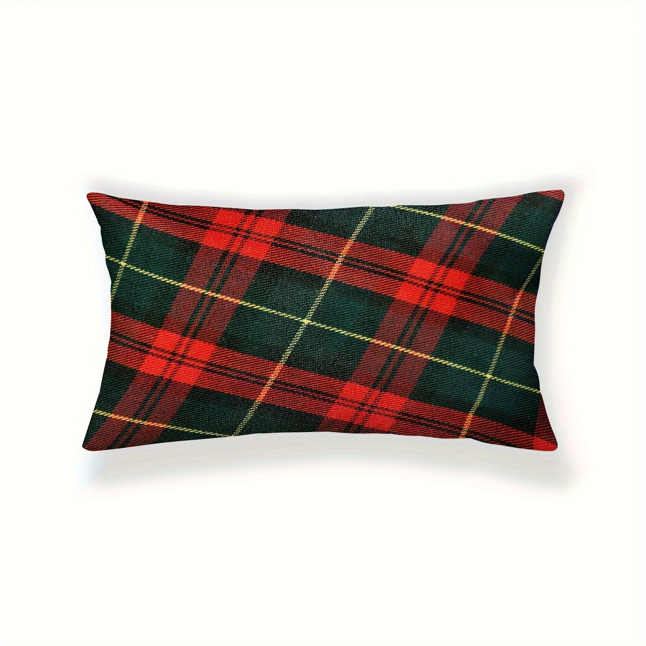 Наволочка в красно-зеленую клетку с классическим рождественским дизайном, смесь полиэстера и льна, с застежкой на молнии. Идеально подходит для домашнего и праздничного декора. Вставка для подушки не включена.