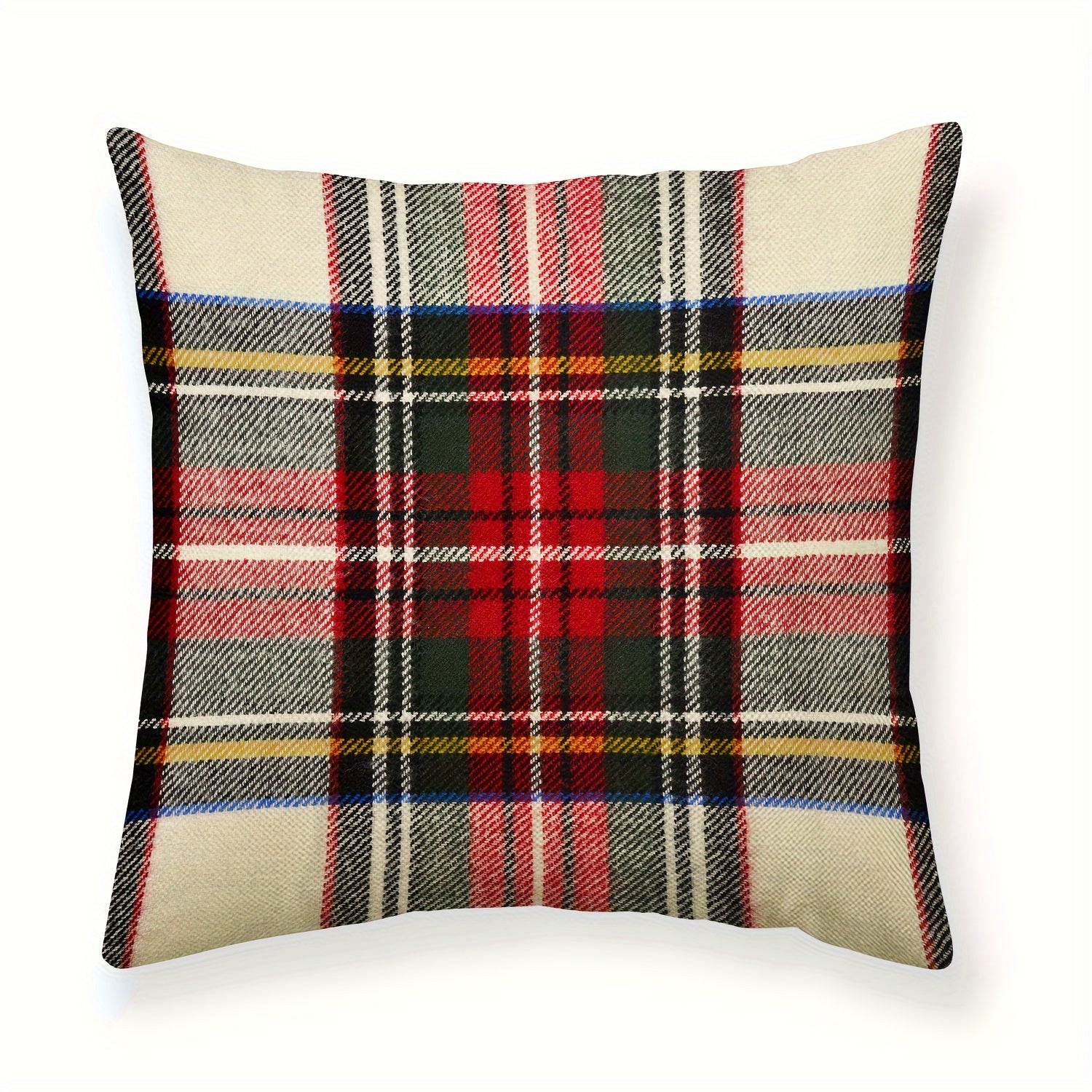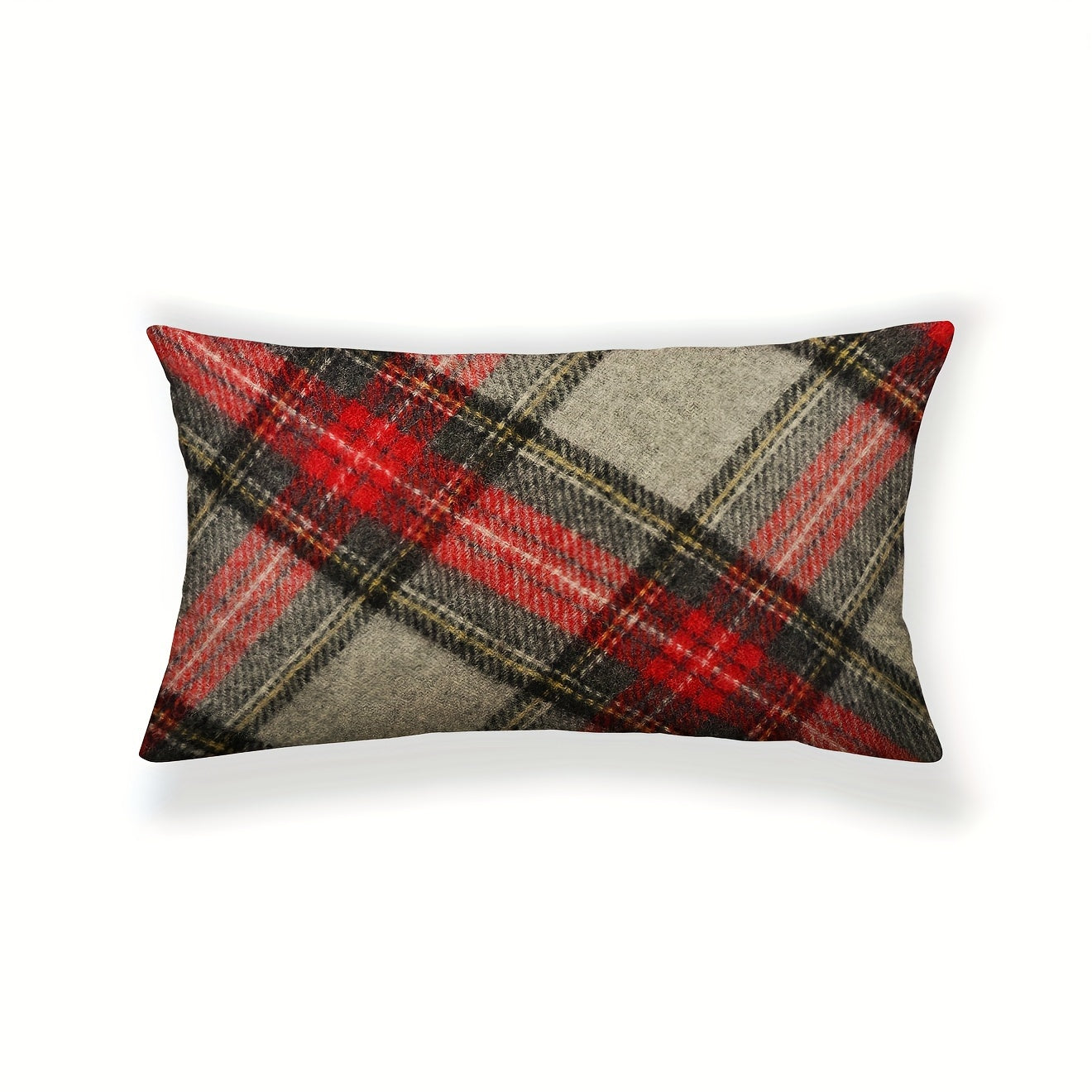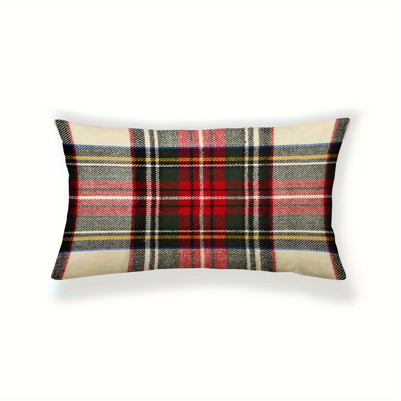 Наволочка в красно-зеленую клетку с классическим рождественским дизайном, смесь полиэстера и льна, с застежкой на молнии. Идеально подходит для домашнего и праздничного декора. Вставка для подушки не включена.