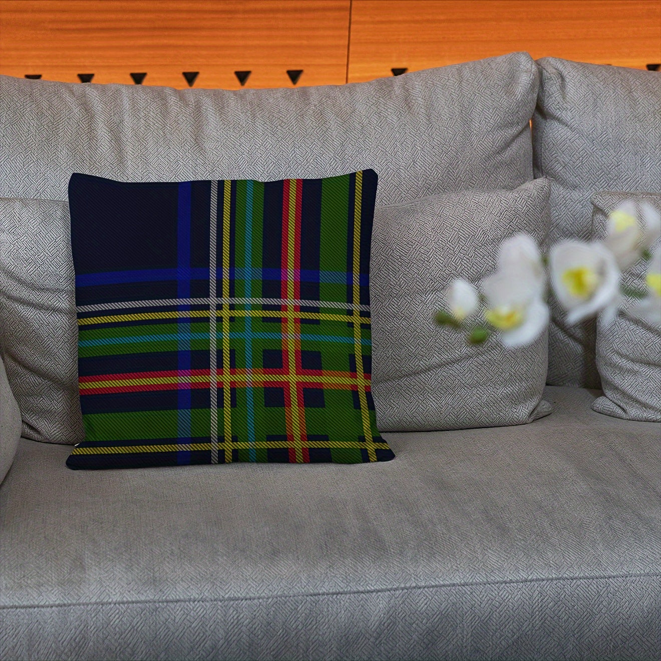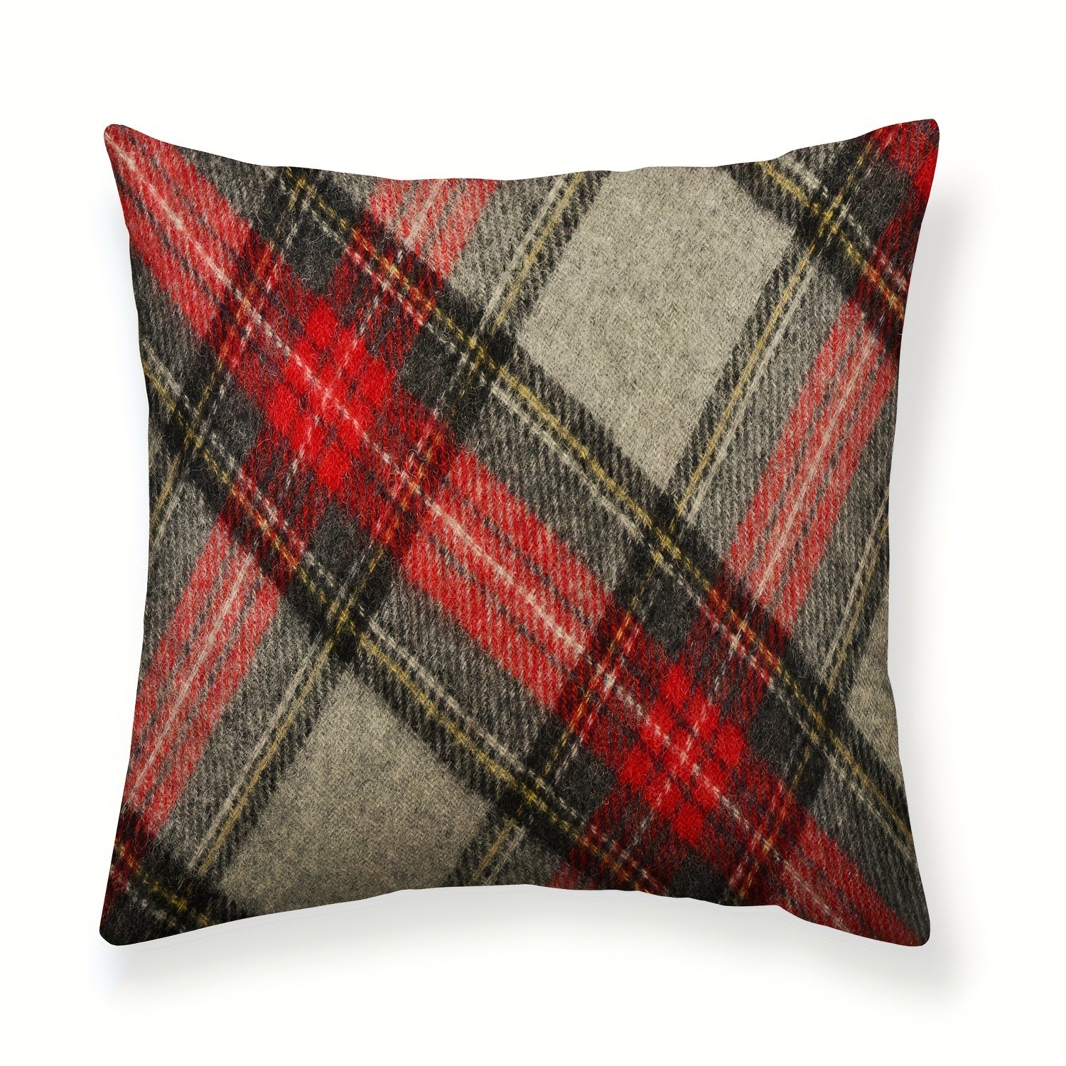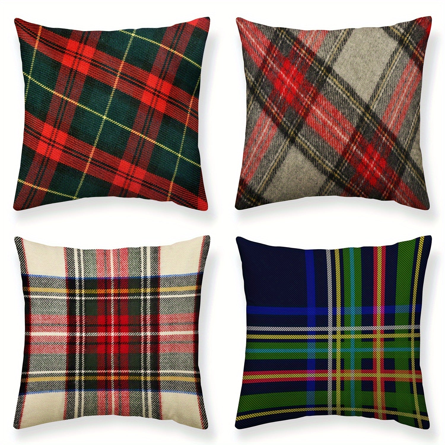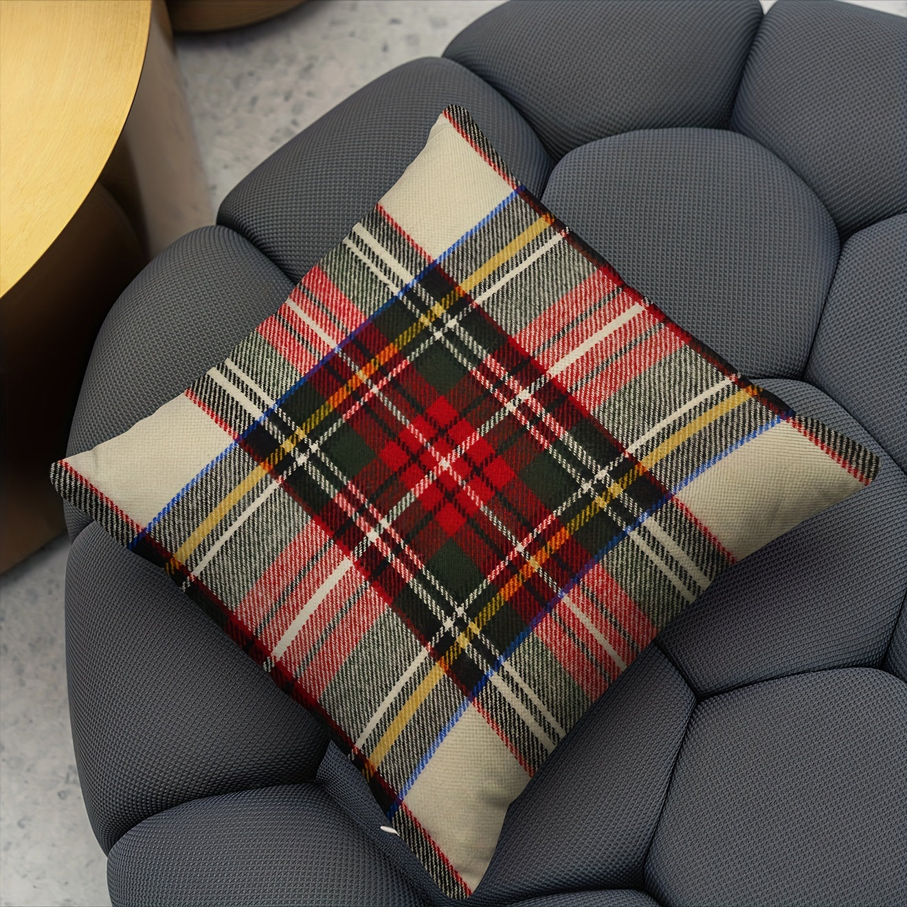 Наволочка в красно-зеленую клетку с классическим рождественским дизайном, смесь полиэстера и льна, с застежкой на молнии. Идеально подходит для домашнего и праздничного декора. Вставка для подушки не включена.