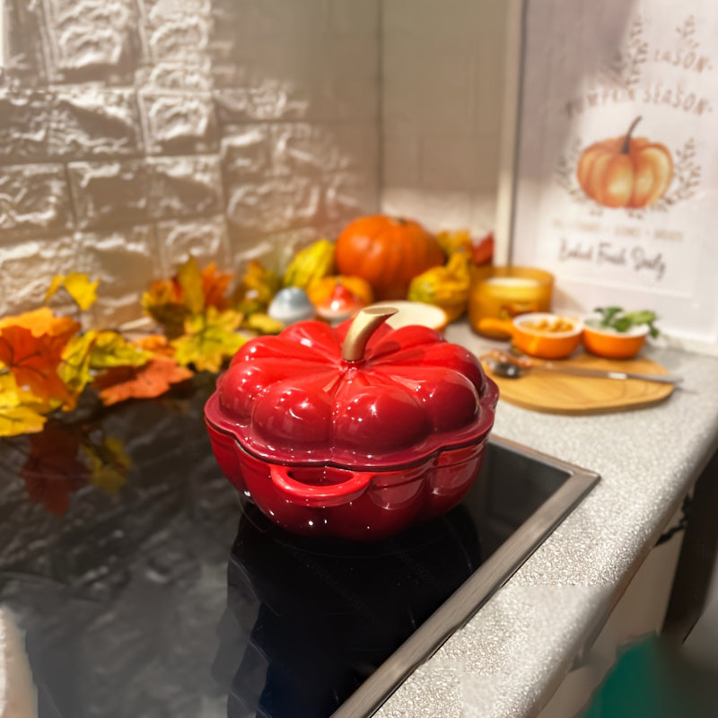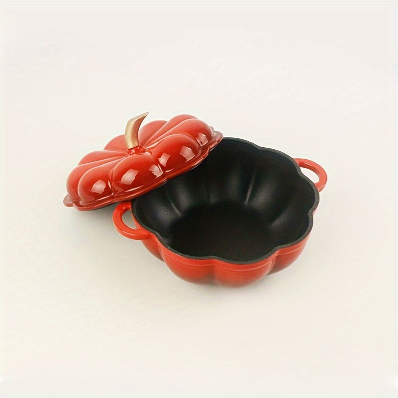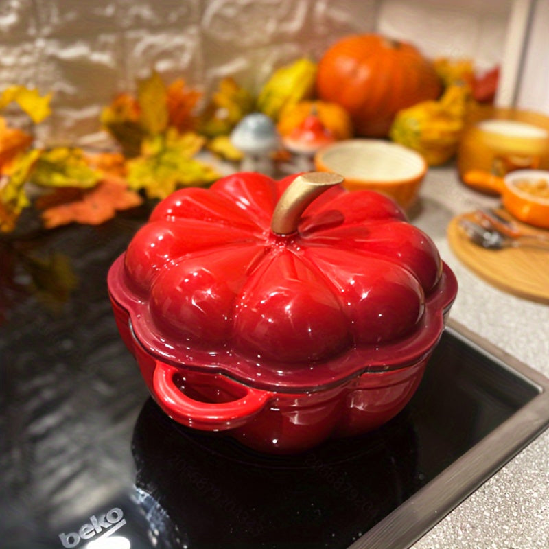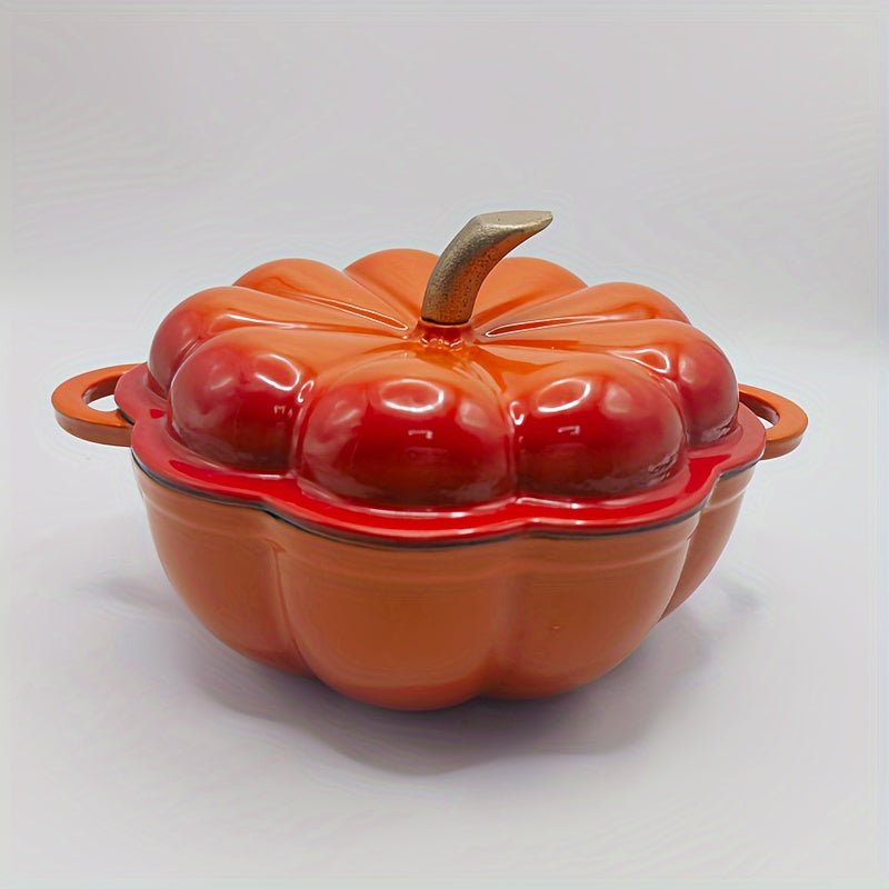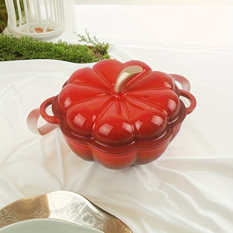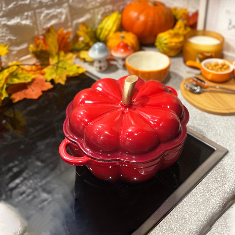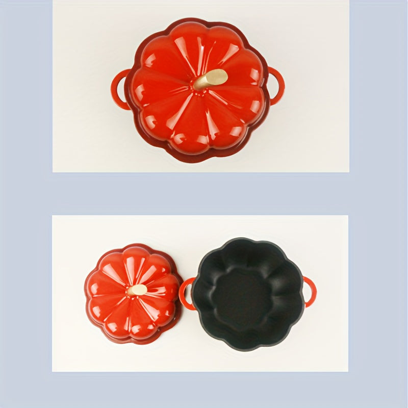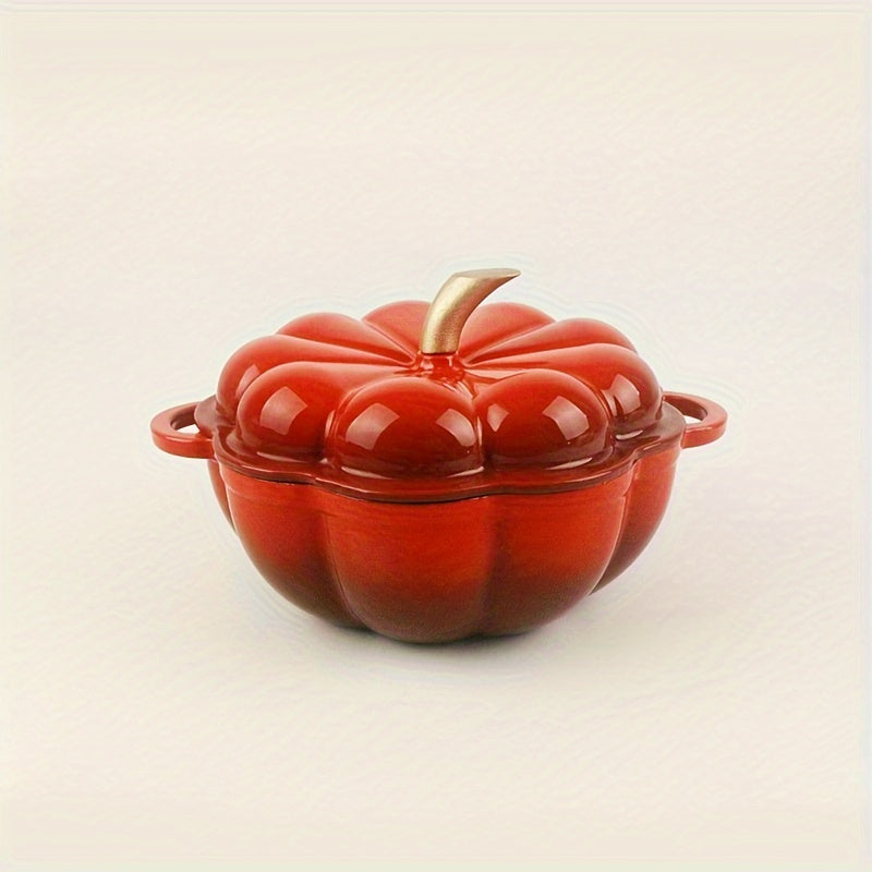 Красная кастрюля в форме тыквы из чугунного литья с эмалированной крышкой, толстая кастрюля, подходящая для газовых и индукционных плит, кухонная посуда.