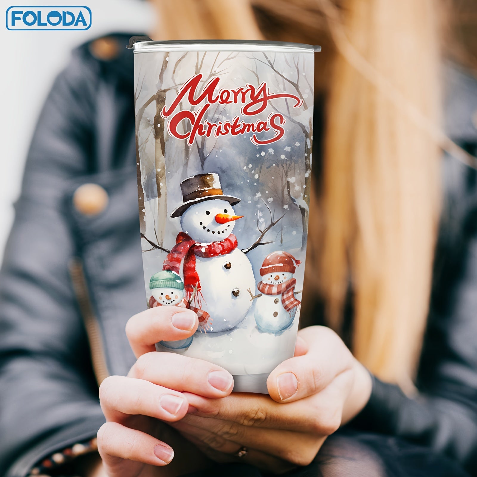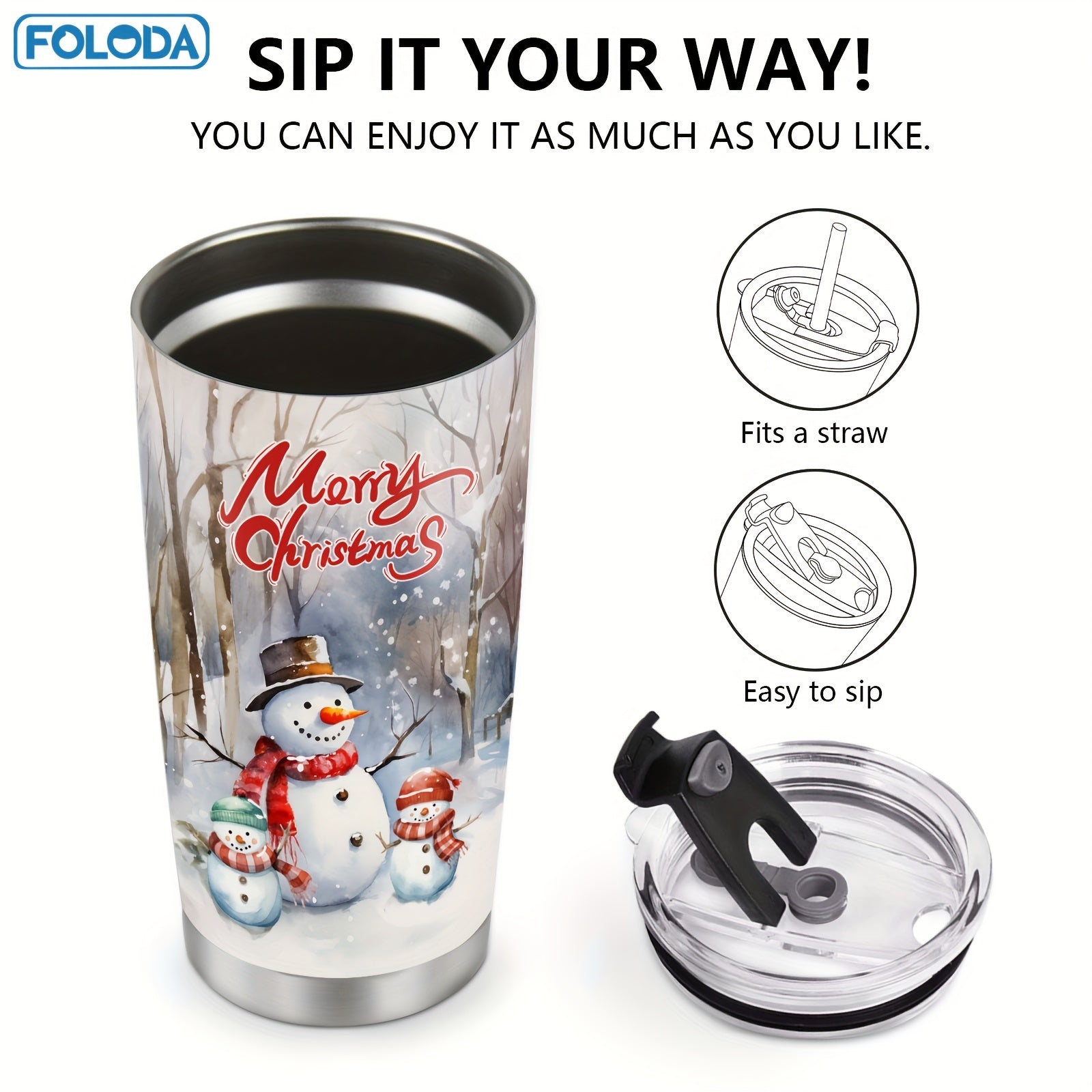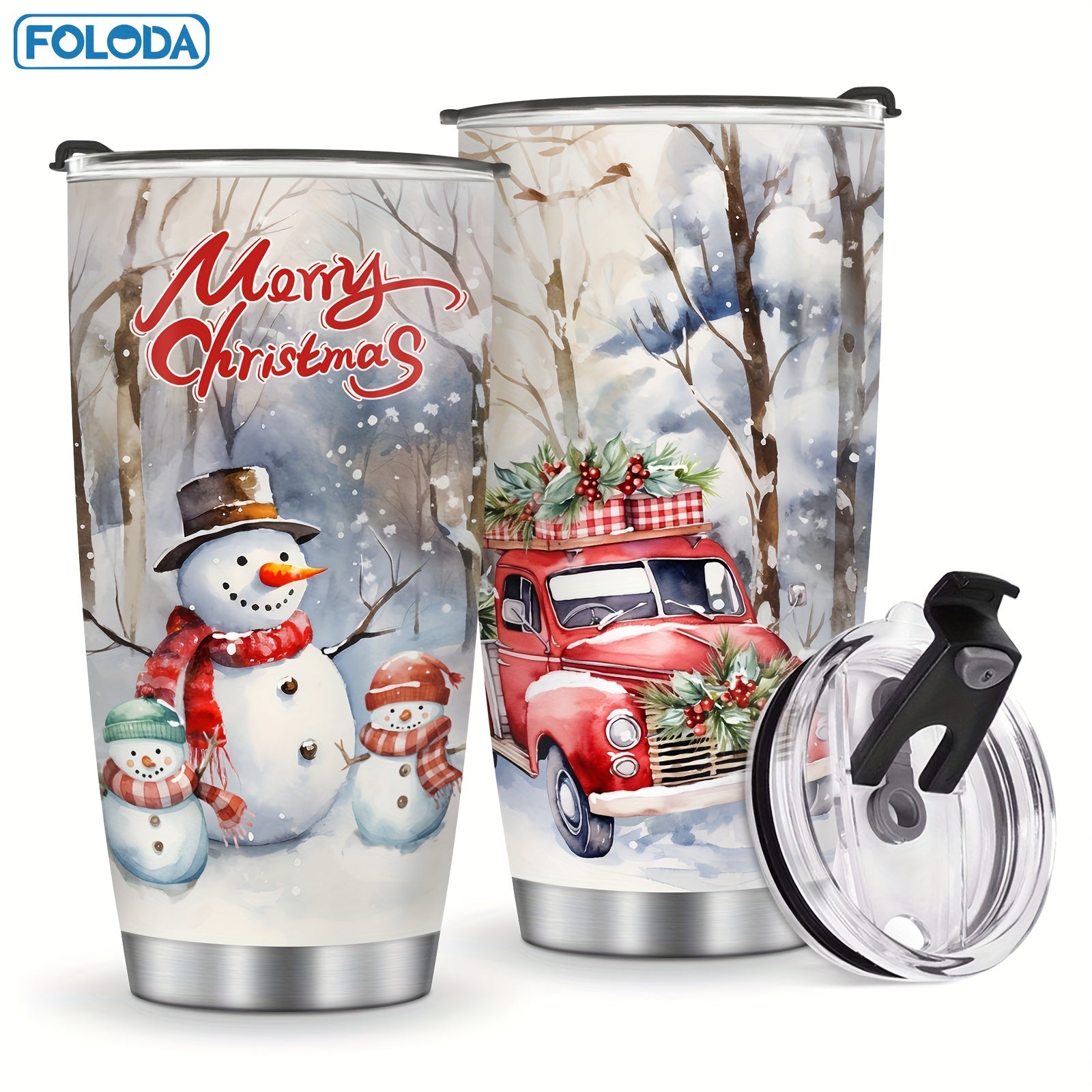 "Красный грузовик снеговик термос - 20 унций нержавеющая сталь изолированный рождественский mug. Идеальный подарок для мужчин, женщин, друзей и учителей."