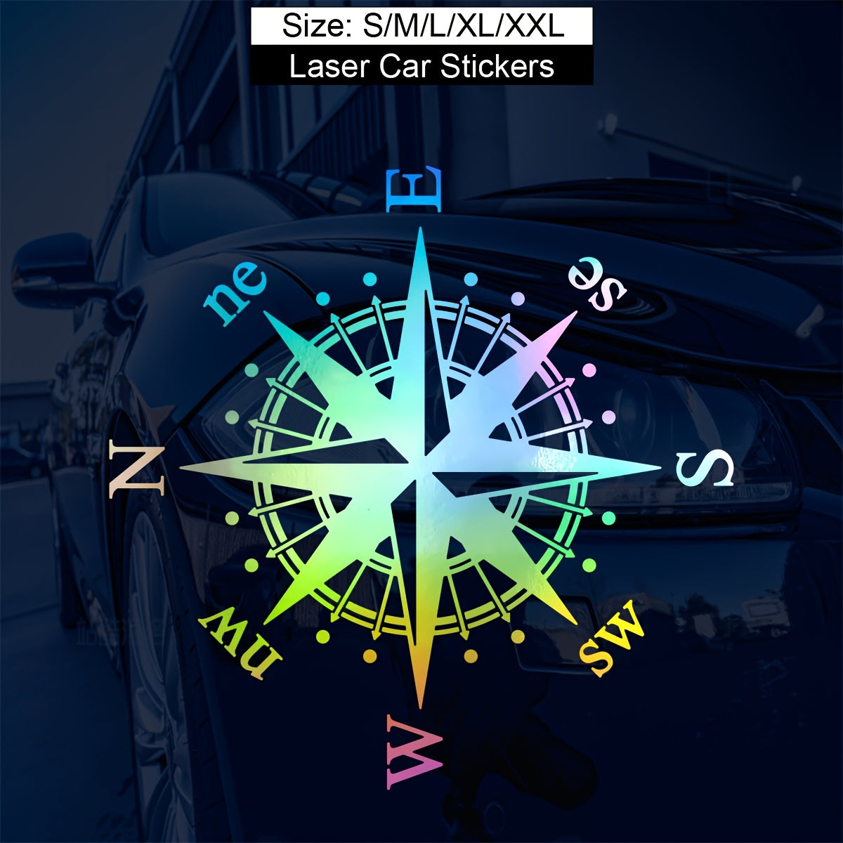 Отражающий виниловый стикер с дизайном компаса, подходящий для автомобилей, грузовиков, бамперов, окон, ноутбуков и других поверхностей. Этот самоклеящийся стикер добавляет стильный и функциональный акцент благодаря своим отражающим свойствам, повышая видимость и индивидуальность вашего транспортного средства или устройства.