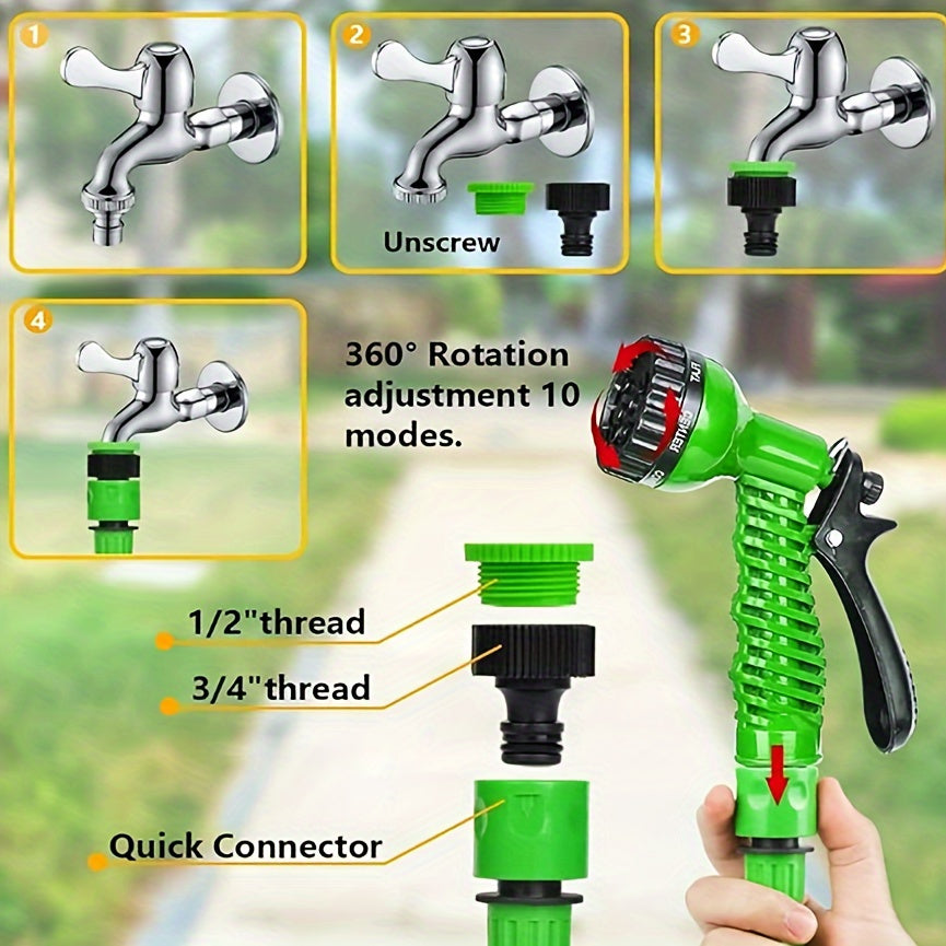 Выдвижной шланг с функцией распыления, универсальные соединители, прочная и гибкая резиновая трубка, герметичная, легкая, легко хранится, подходит для дома, мойки автомобилей, бытовой мойки автомобилей.