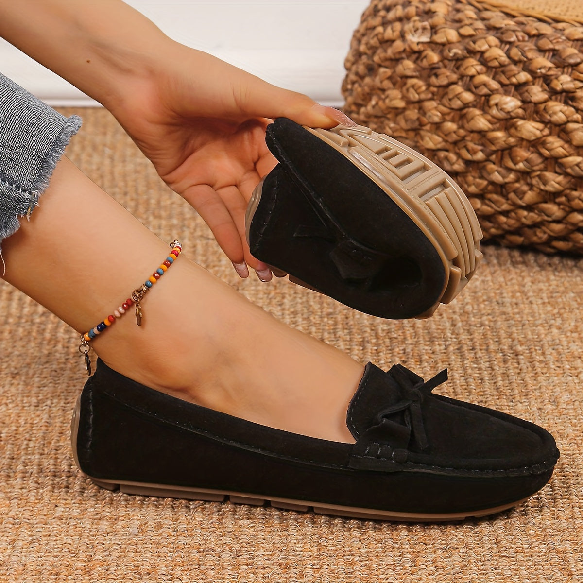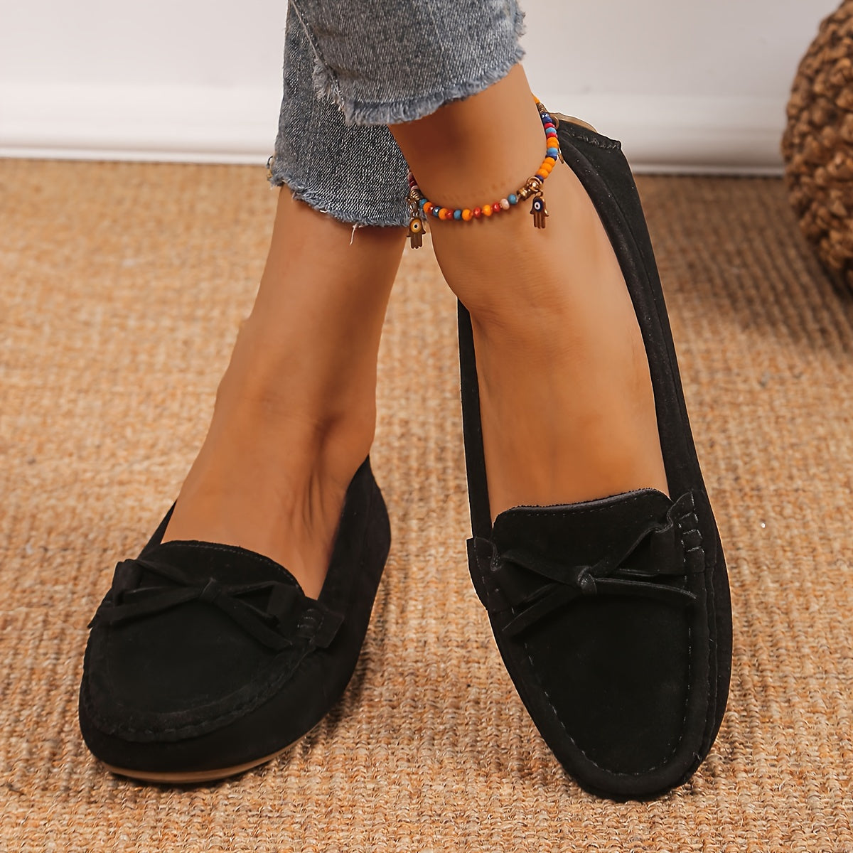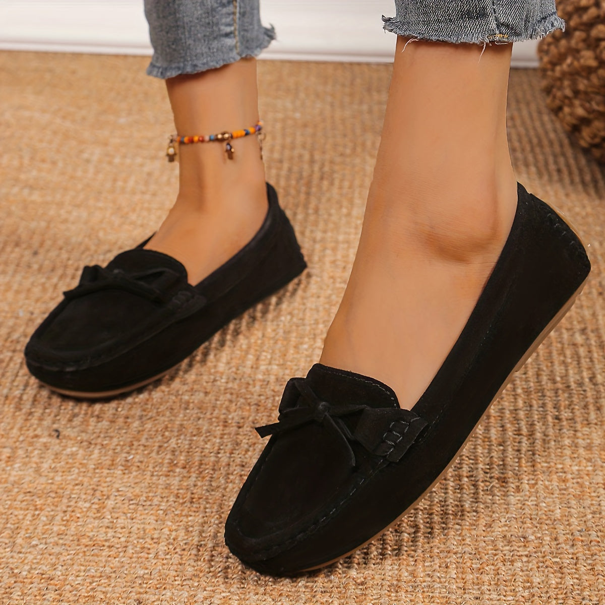 Ретро плоские лоферы с бантом, стиль с легким надеванием и мягкой подошвой для повседневной носки.