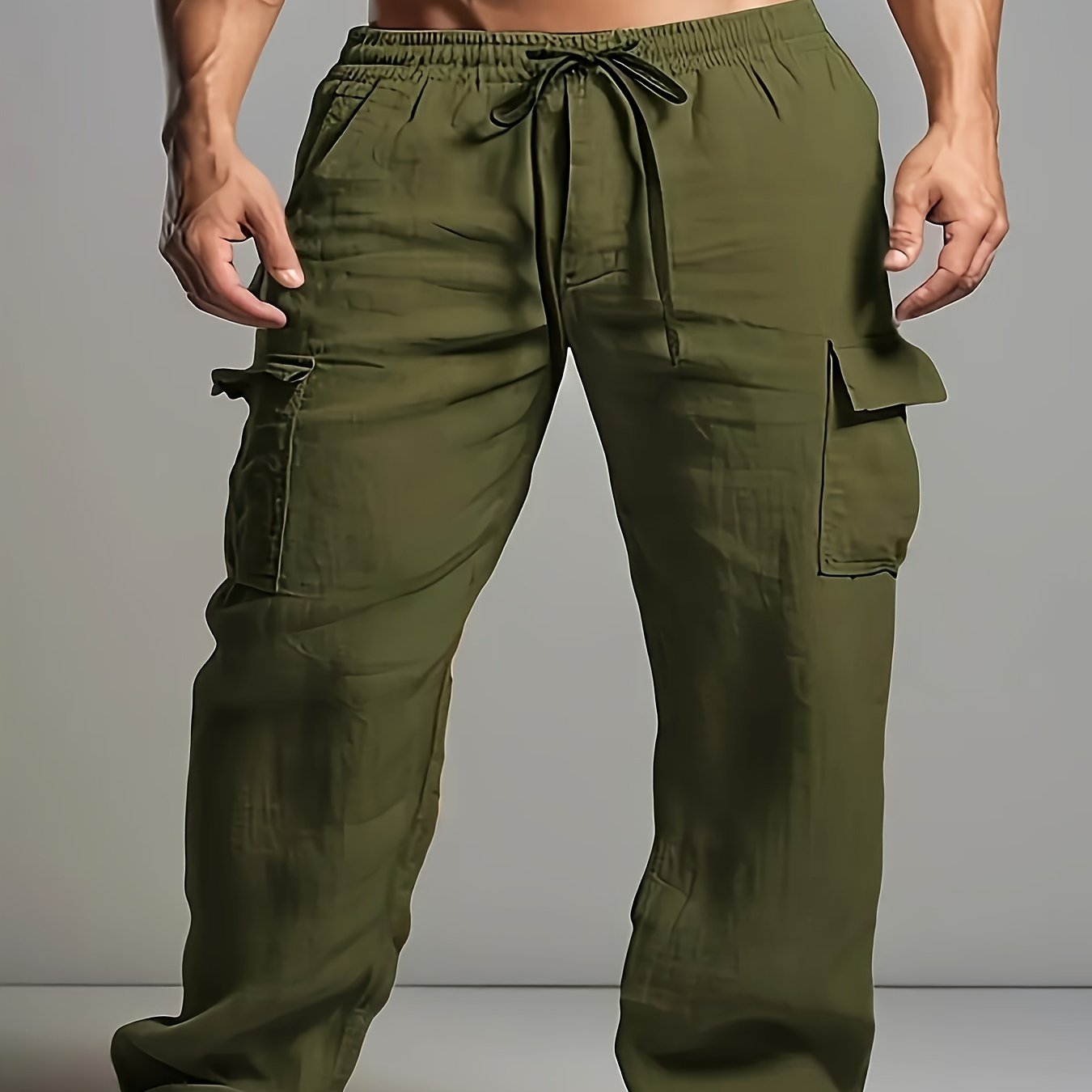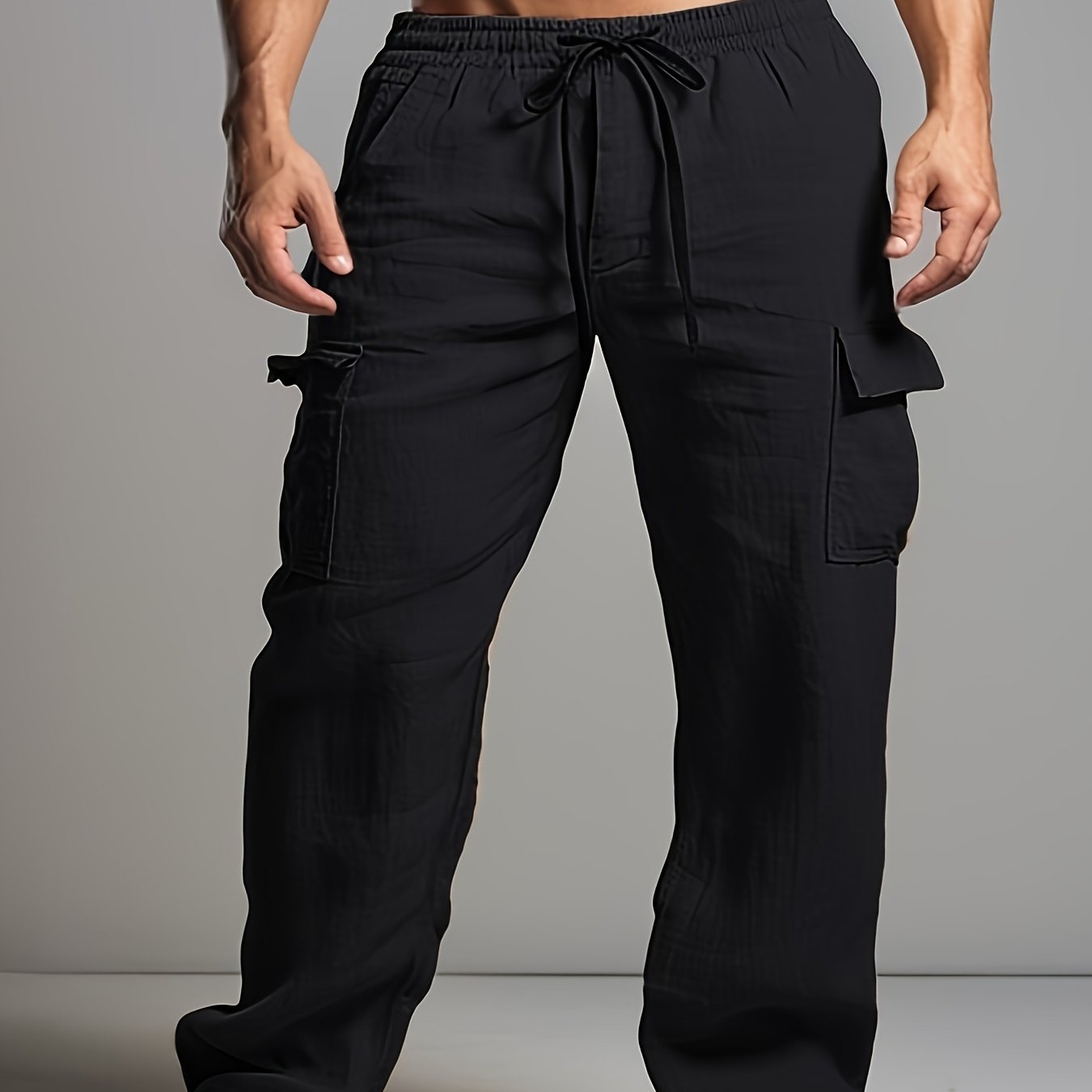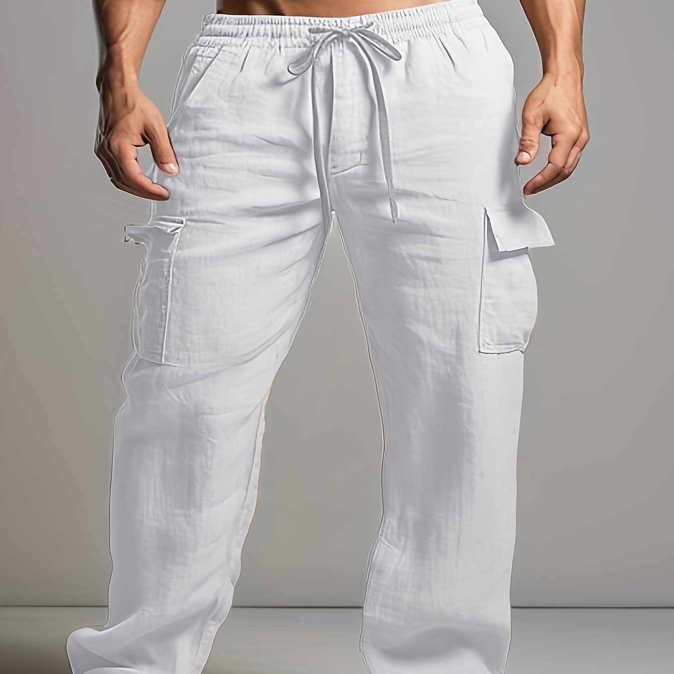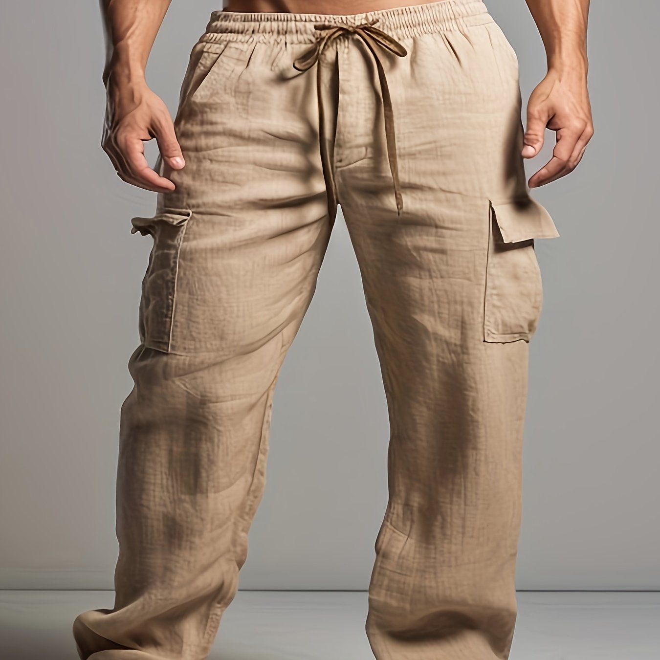 Мужские хлопковые льняные брюки с шнурком и карманами, повседневные, весна, классическая посадка