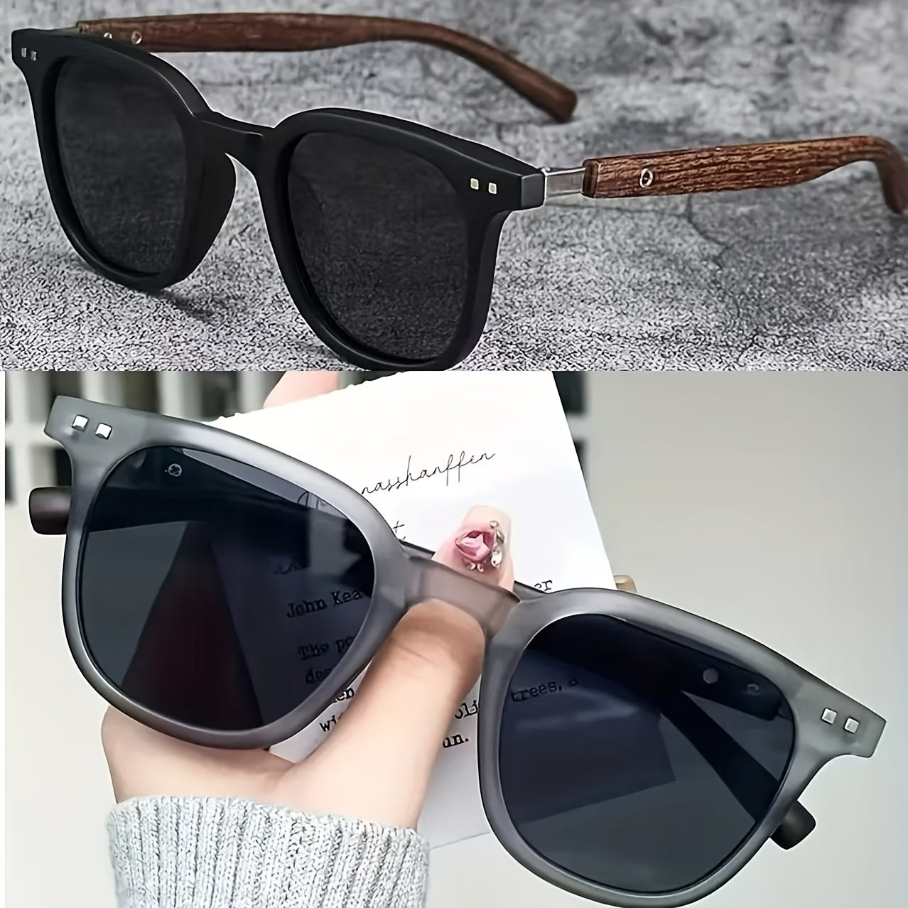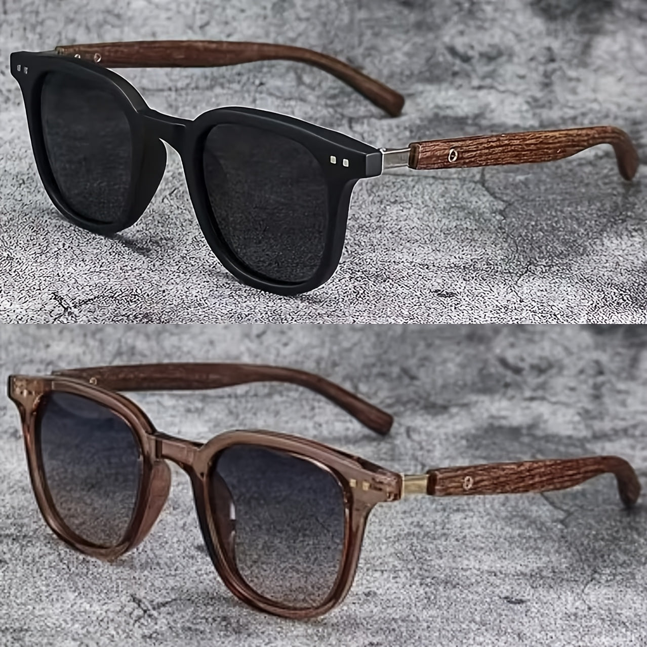 Ретро квадратные очки, 2 штуки в упаковке, унисекс, пластиковая оправа с деревянной текстурой на дужках, антибликовые линзы, декоративные очки для пляжа и путешествий.