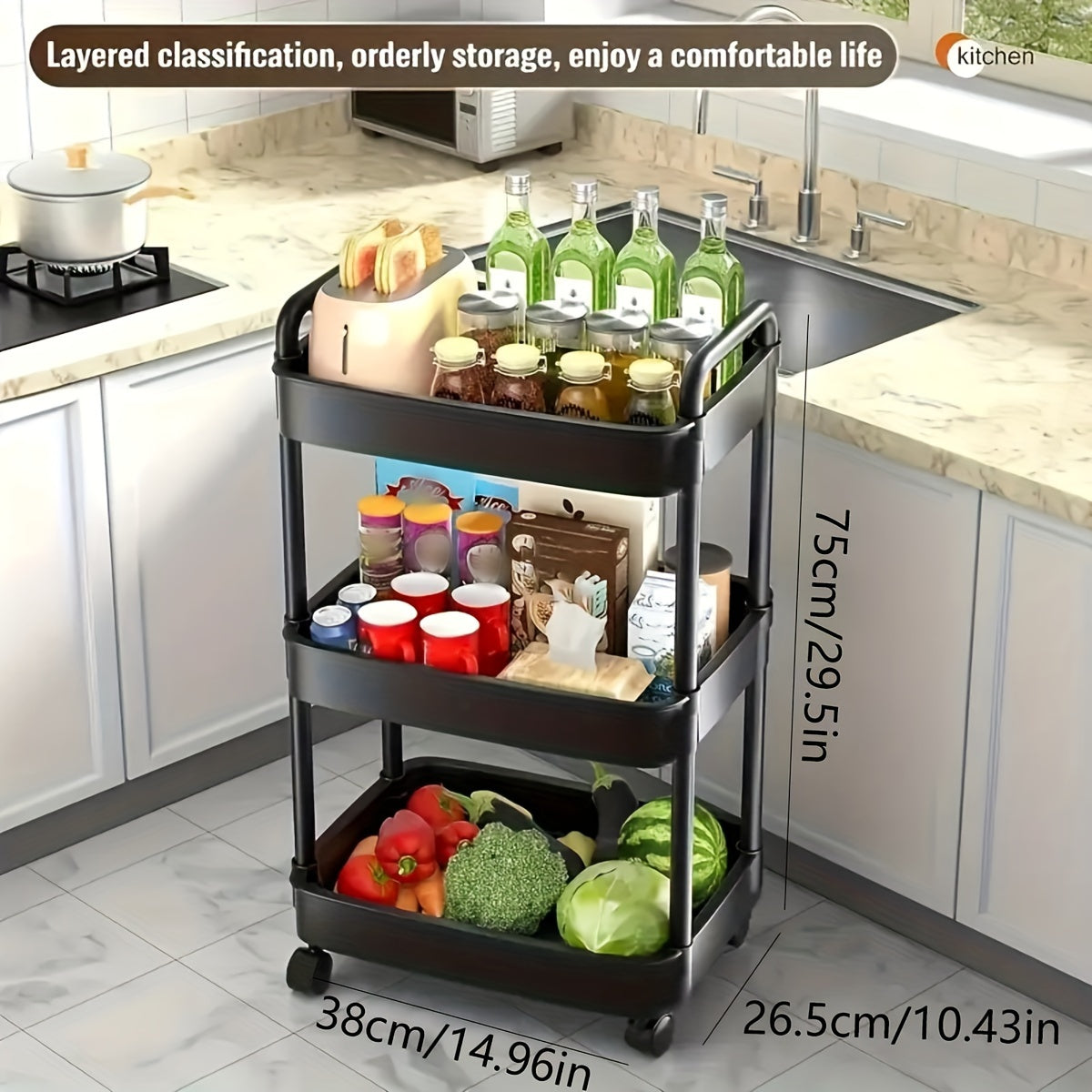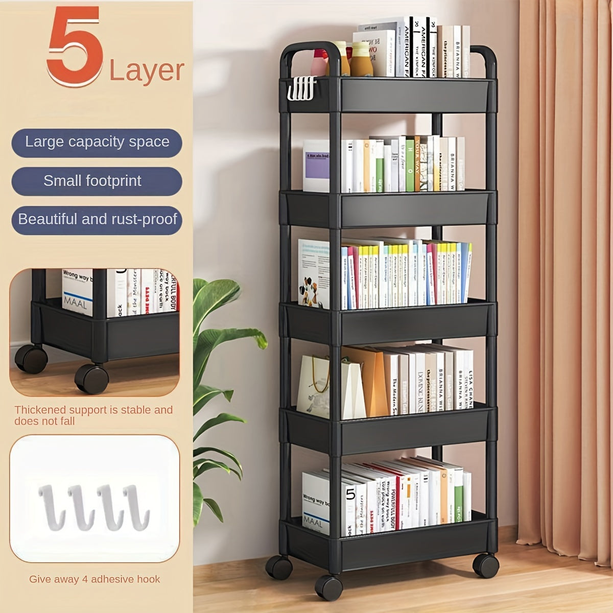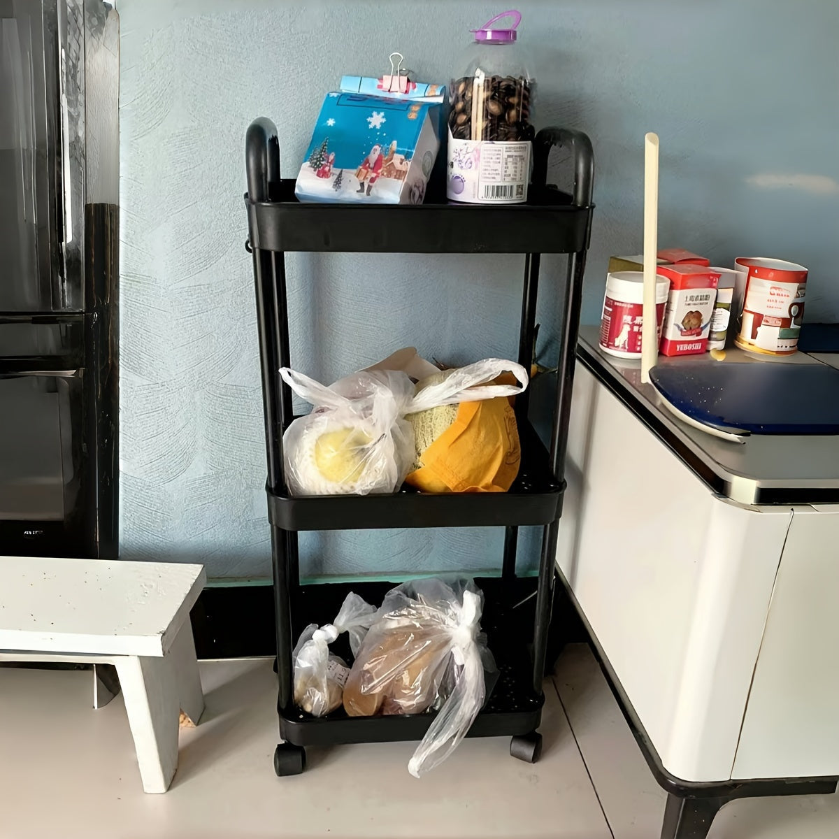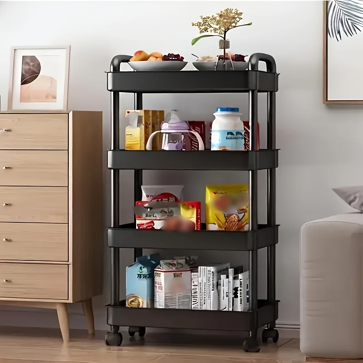 Каталка для хранения с несколькими уровнями - подходит для спальни, кухни и гостиной - легко перемещается на колесах - идеально подходит для закусок, книг и многого другого