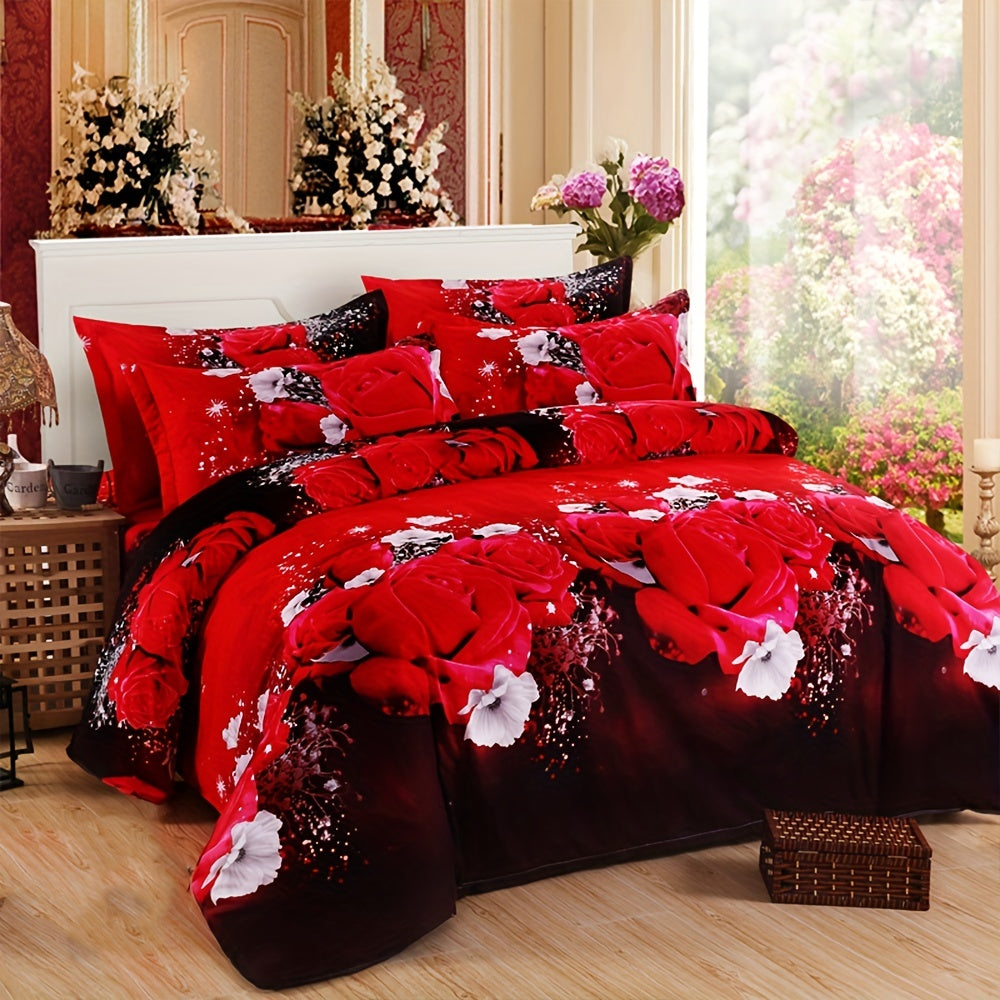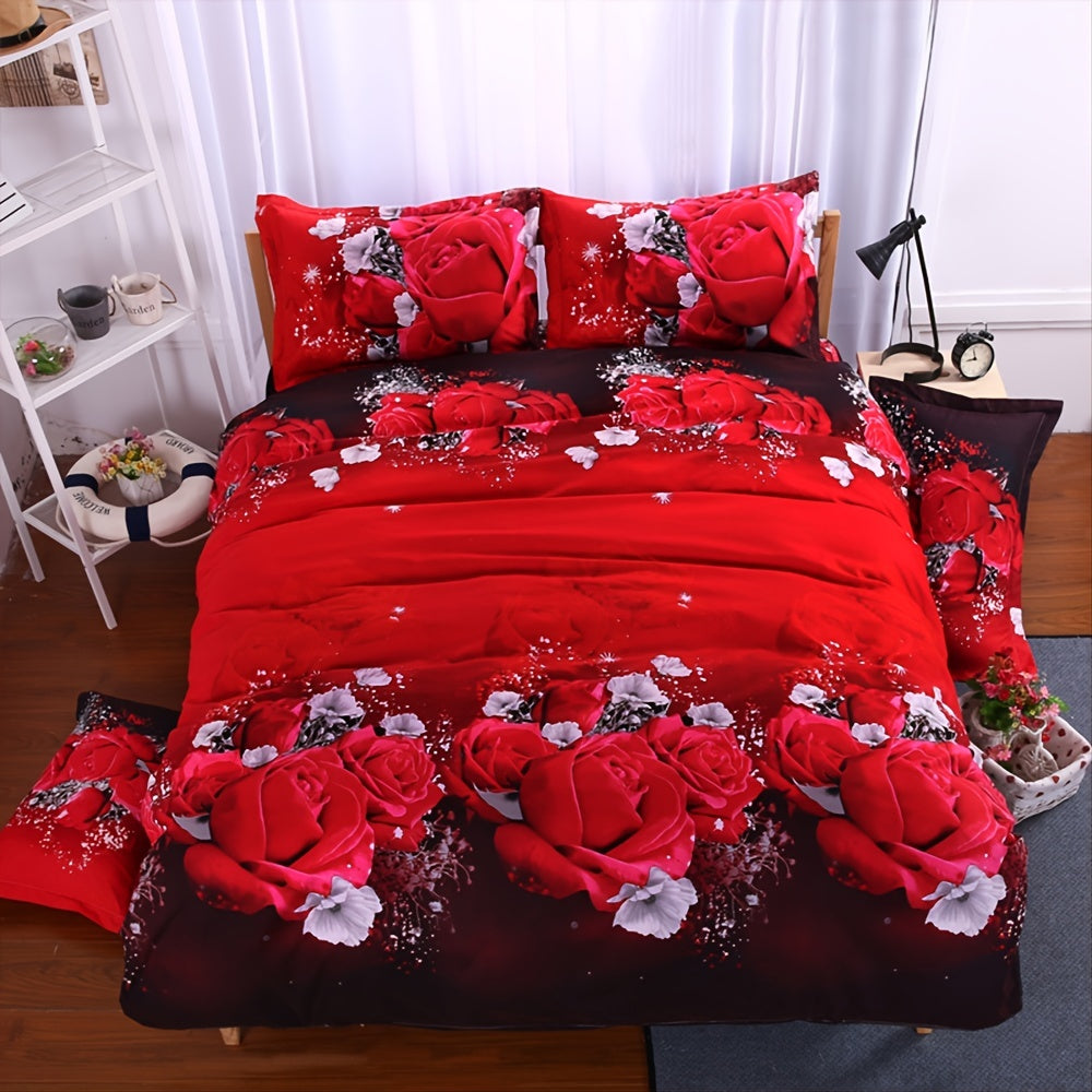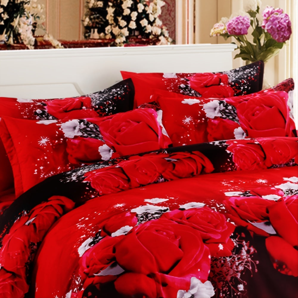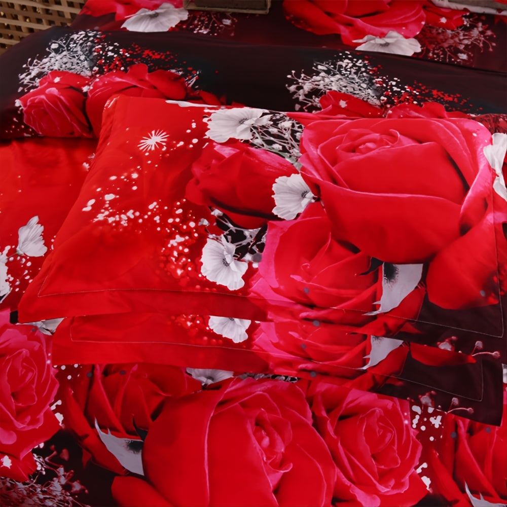 Романтический комплект постельного белья из бронзового мрамора розового цвета с 3-частичным букетом роз. Включает 1 пододеяльник и 2 наволочки (вкладыши для подушек не включены).