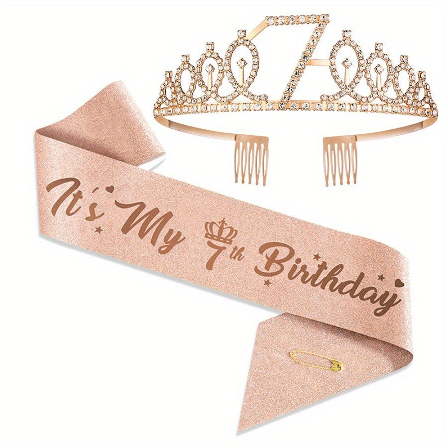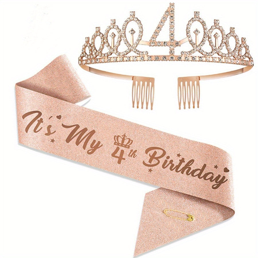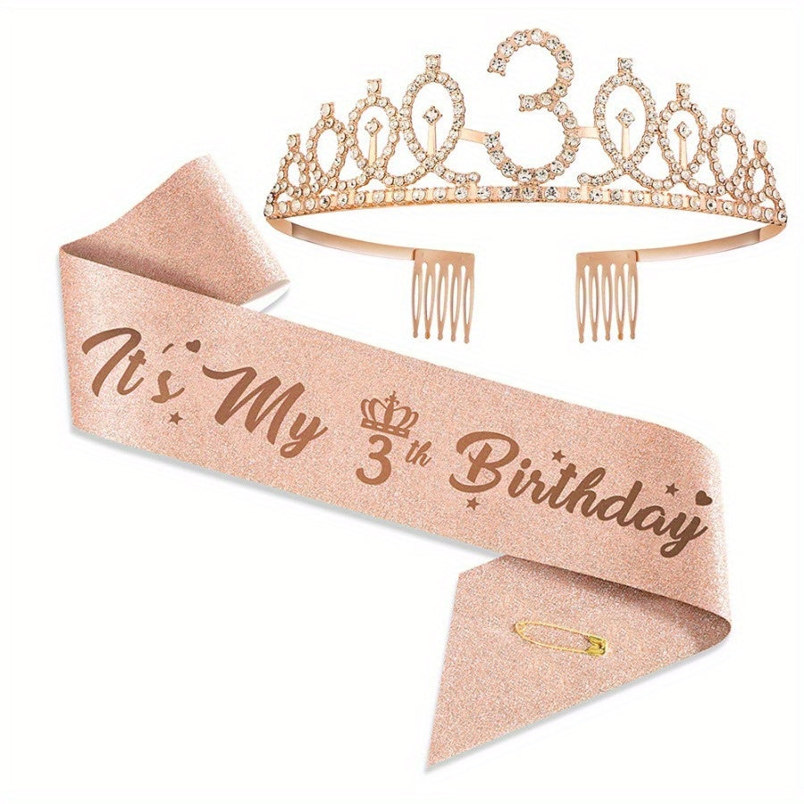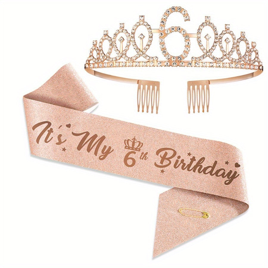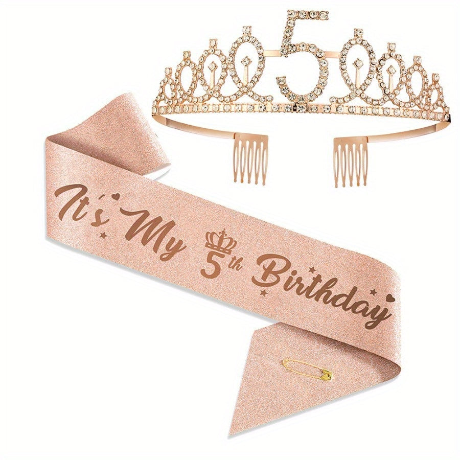 Набор для празднования дня рождения в розовом золоте включает тиару, ленту с опцией "Мистер и Миссис", идеально подходит для юбилейных мероприятий. Включает подарки для гостей, фотоприспособления, металлический материал, не требует электроэнергии.