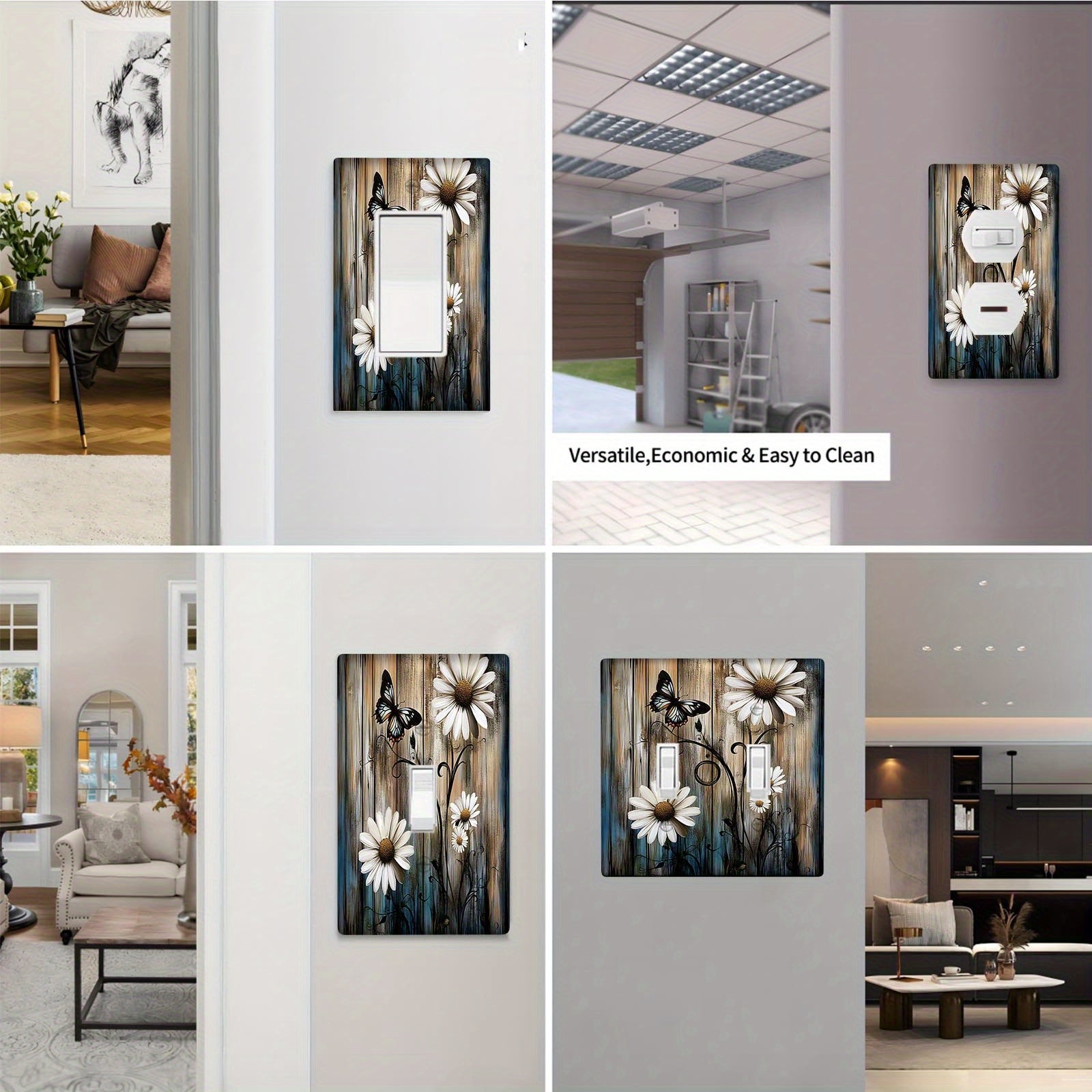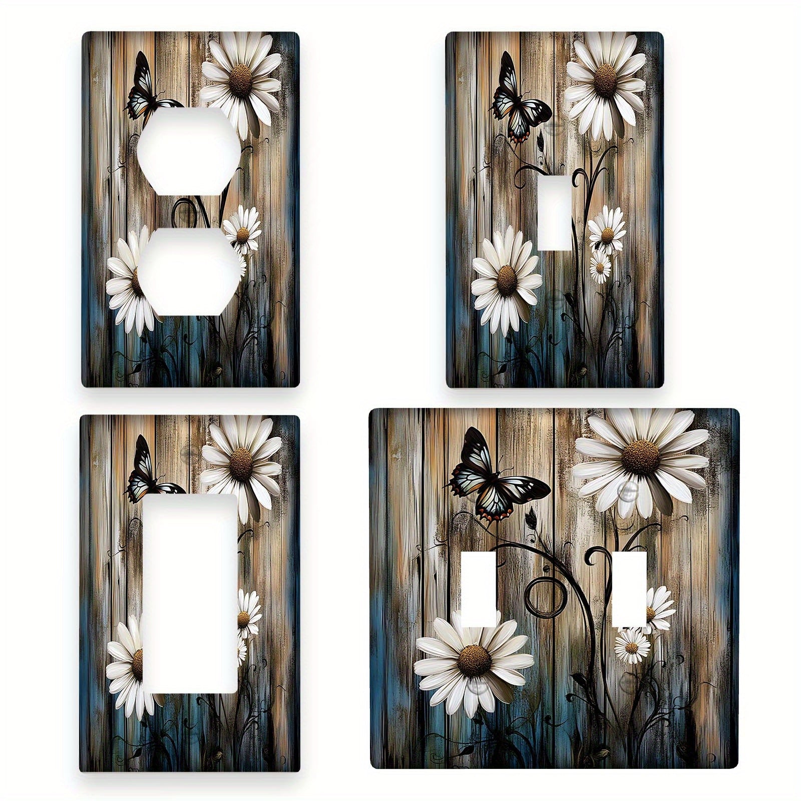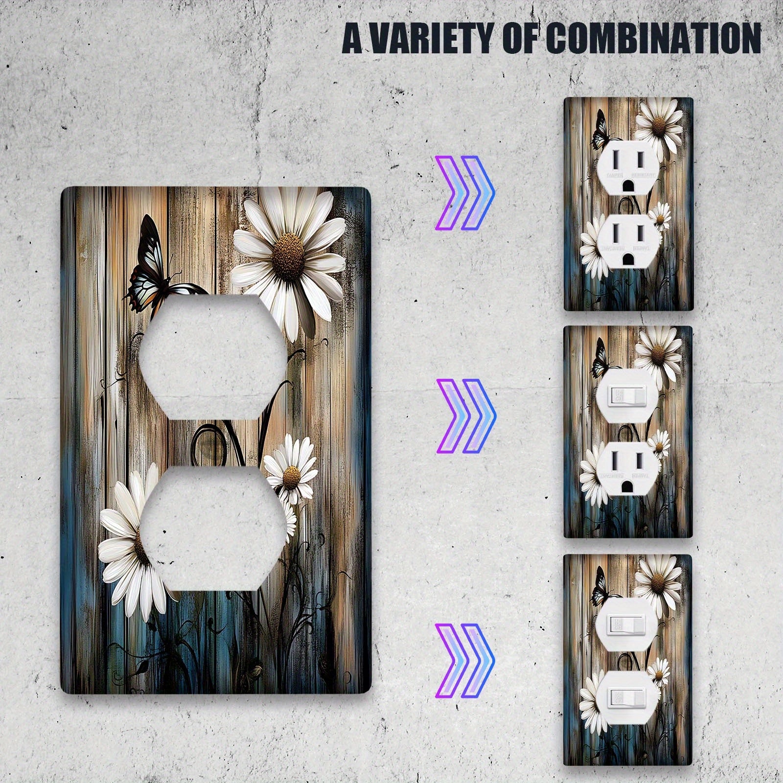Деревенская фермерская настенная панель с ромашкой и бабочкой для выключателя света, подходит для использования в помещении/на улице на кухне, в спальне или кафе. Не требует электричества или батареек. Доступна в вариантах 1Gang или 2Gang.