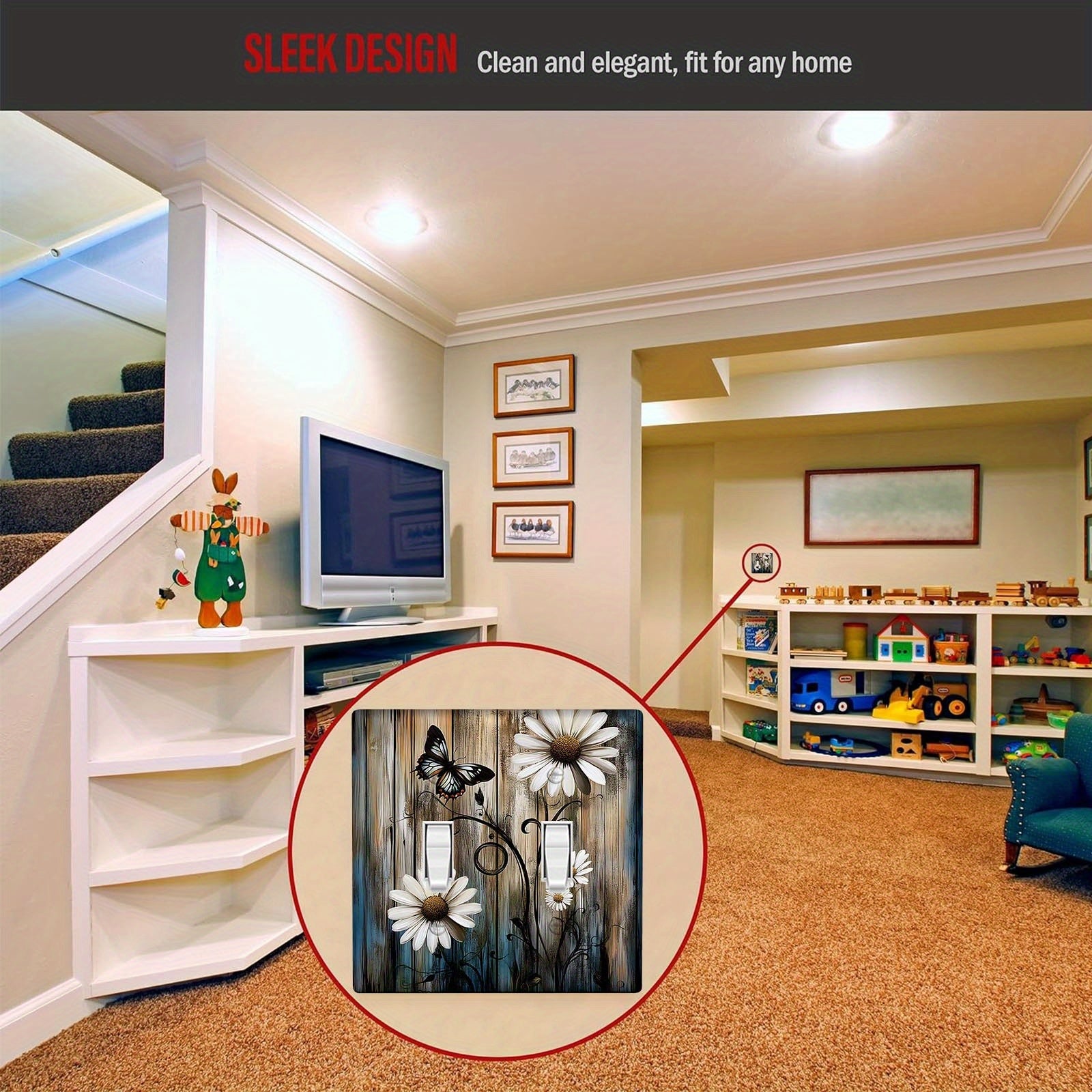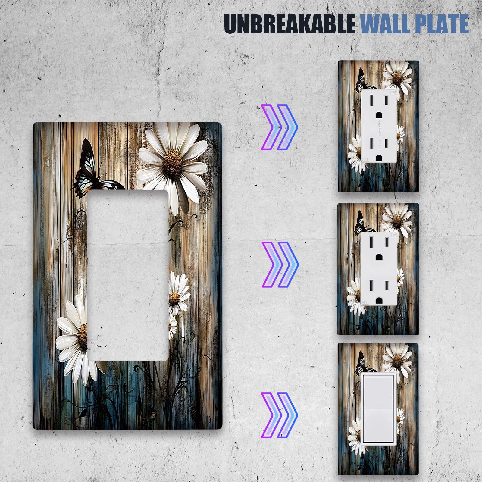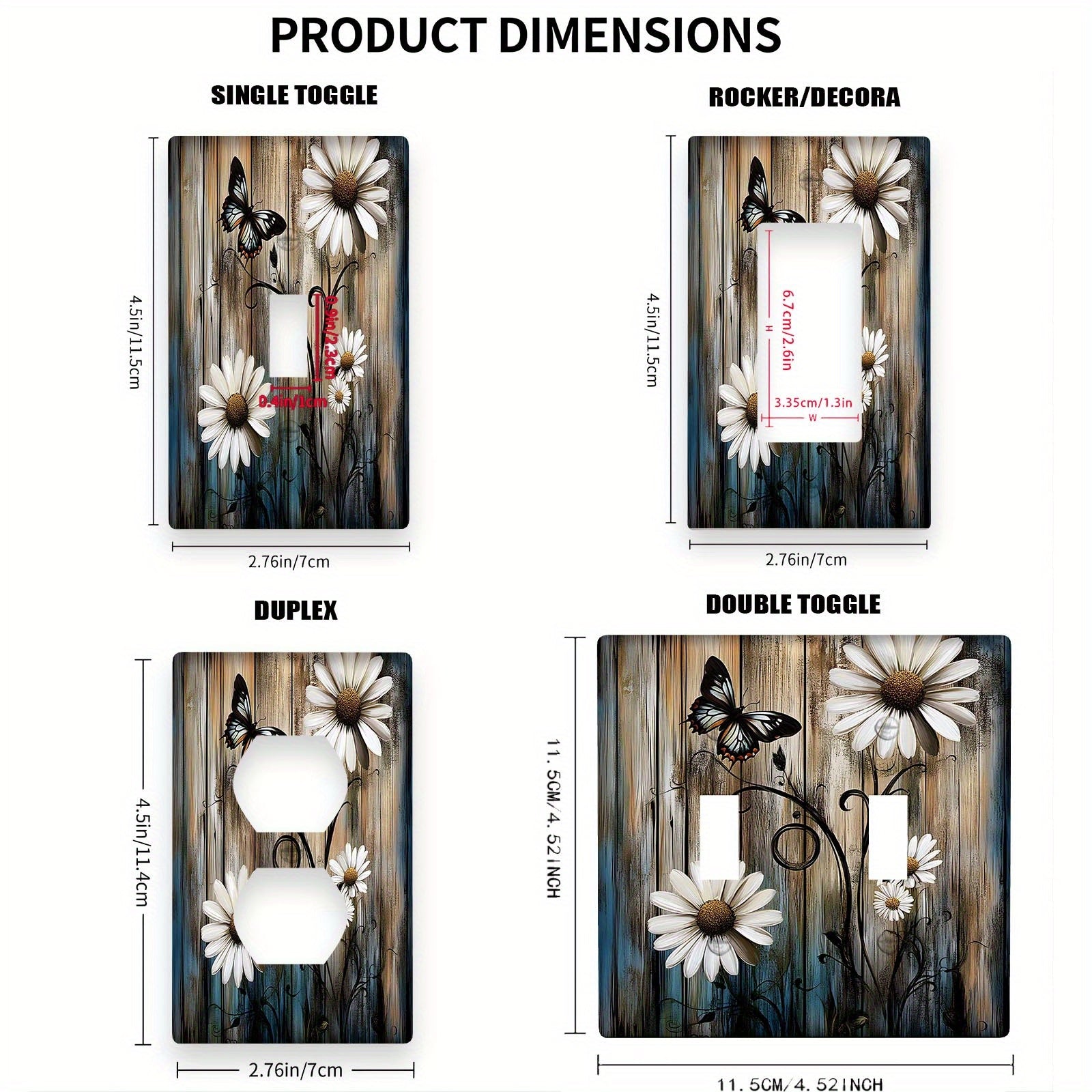 Деревенская фермерская настенная панель с ромашкой и бабочкой для выключателя света, подходит для использования в помещении/на улице на кухне, в спальне или кафе. Не требует электричества или батареек. Доступна в вариантах 1Gang или 2Gang.
