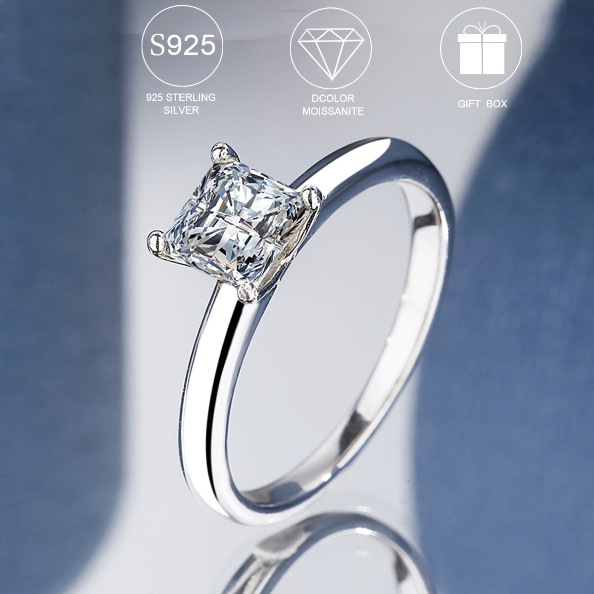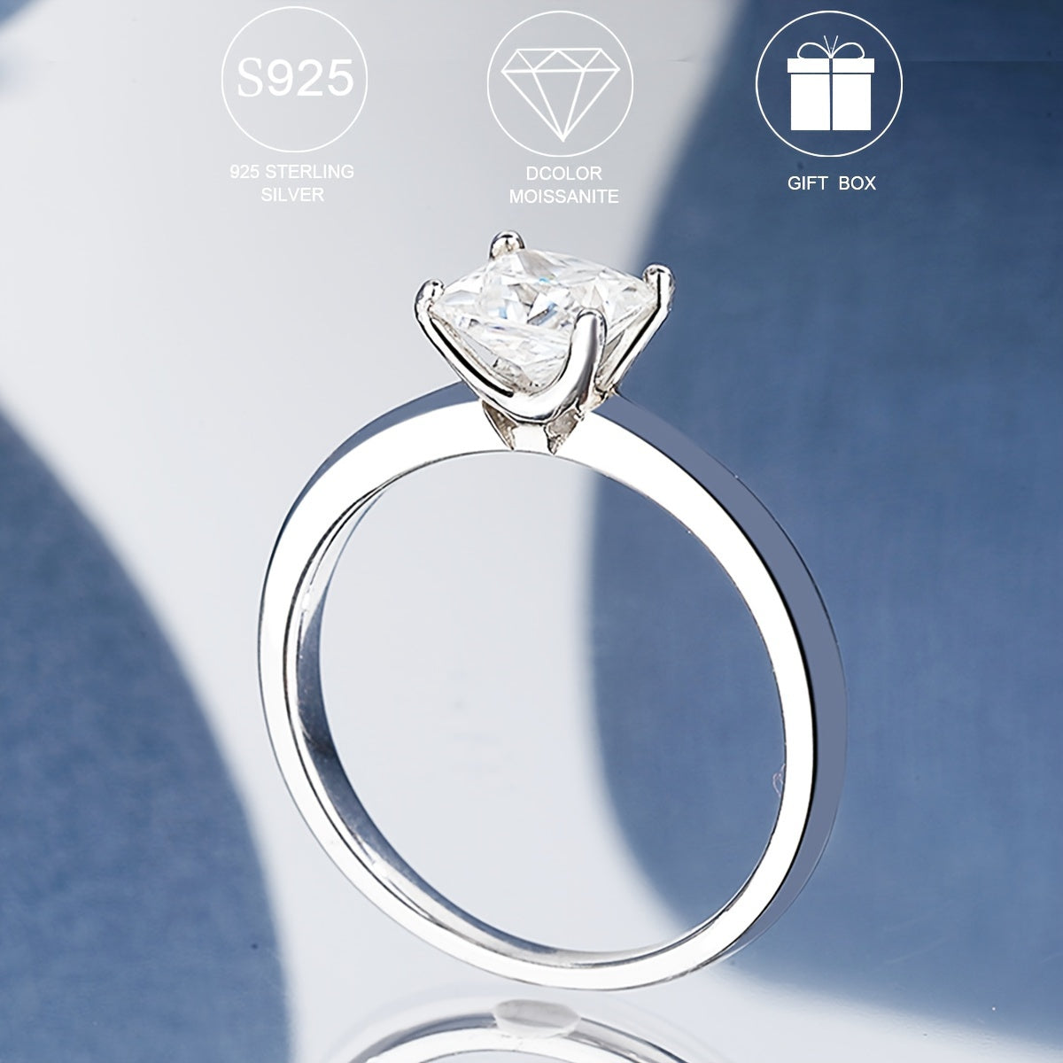 Кольцо для помолвки из стерлингового серебра с принцесским огранкой из моссанита, гипоаллергенное, в стиле бохо для ежедневного ношения и особых случаев