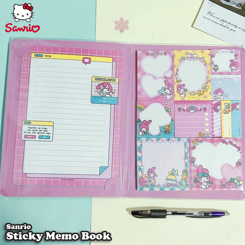 Книга стикеров Sanrio включает 2 листа бумаги для писем и 11 дизайнов стикеров, всего 330 листов. Размер A5 с 6 обложками персонажей. Идеально подходит для заметок, мемо и писем. Подходит для студентов.