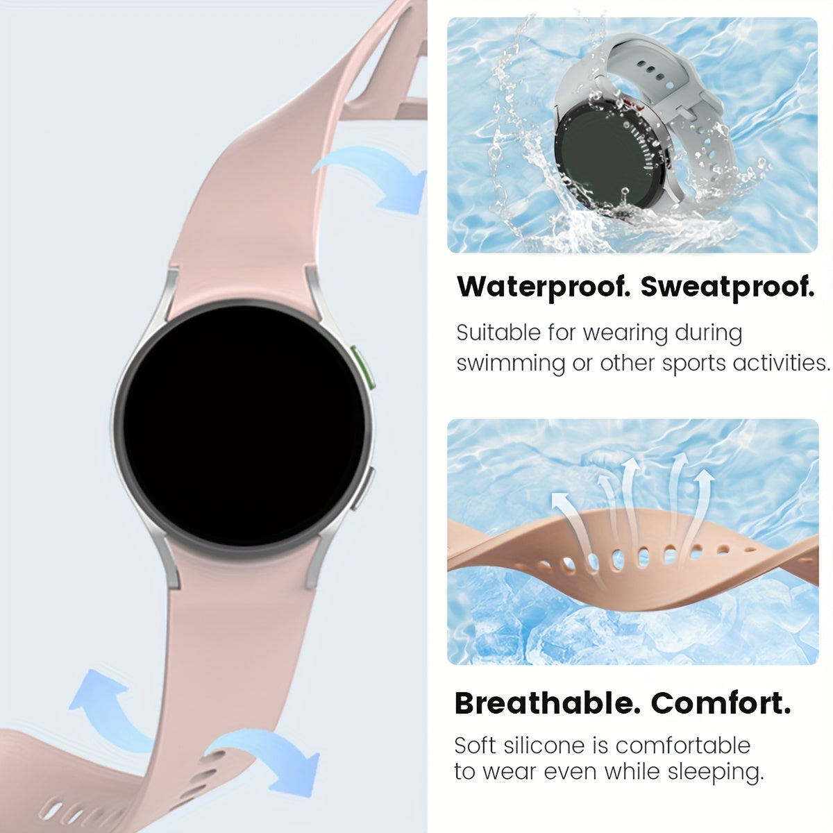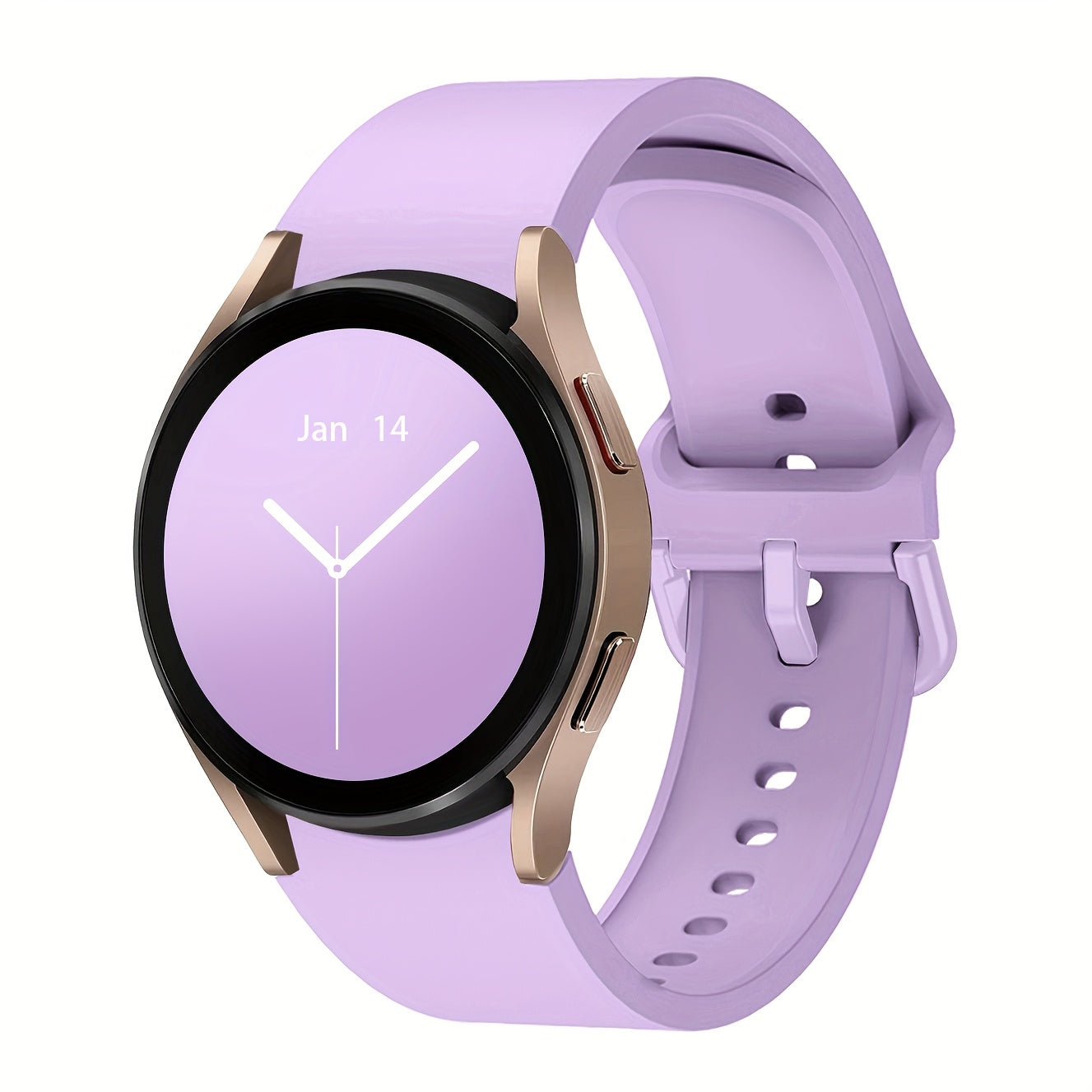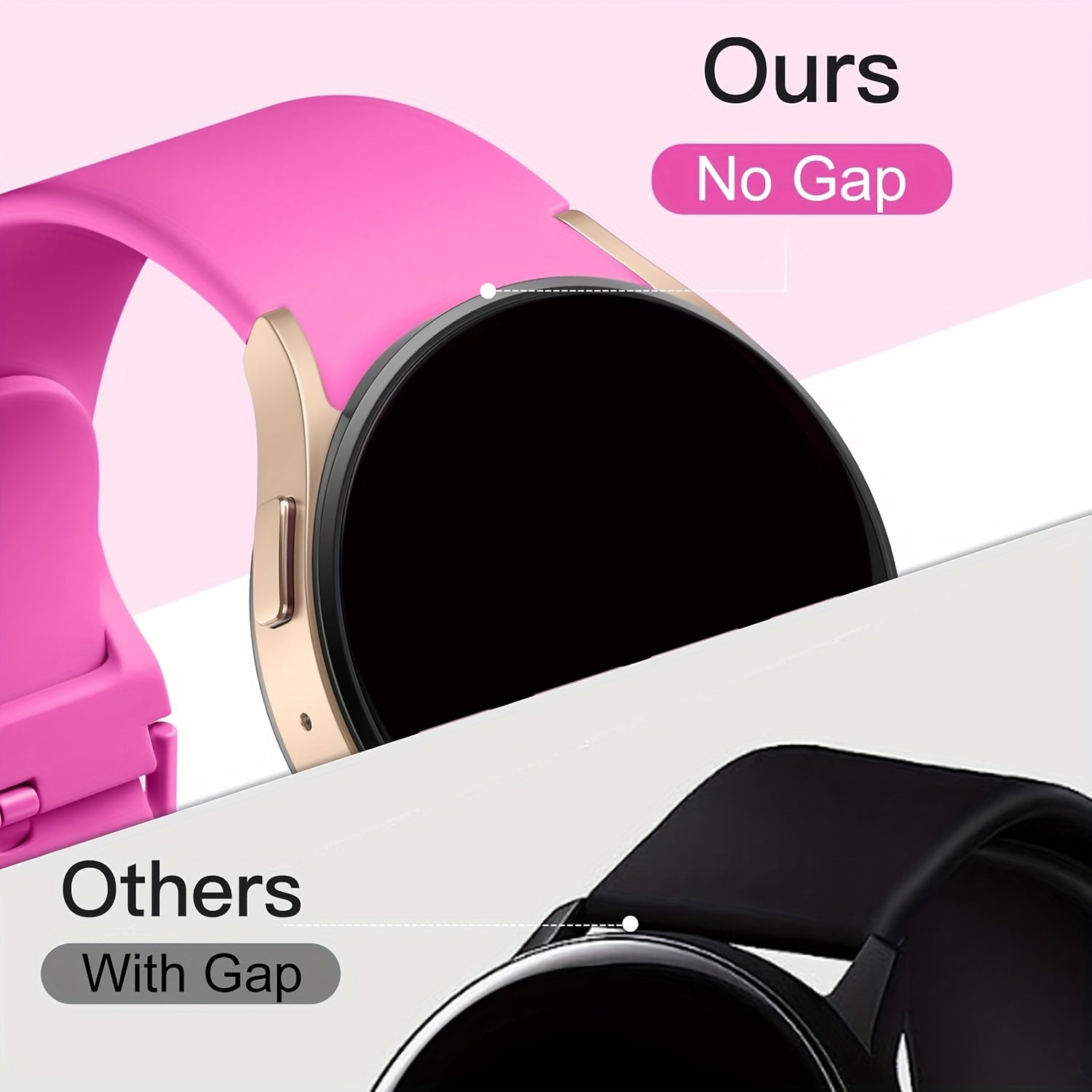 Непрерывный мягкий силиконовый водонепроницаемый ремешок для часов, совместимый с Samsung Galaxy Watch 7/6/5/4. Доступен в розовом, желтом и розовом золоте с застежкой из нержавеющей стали. Удобная посадка для мужчин и