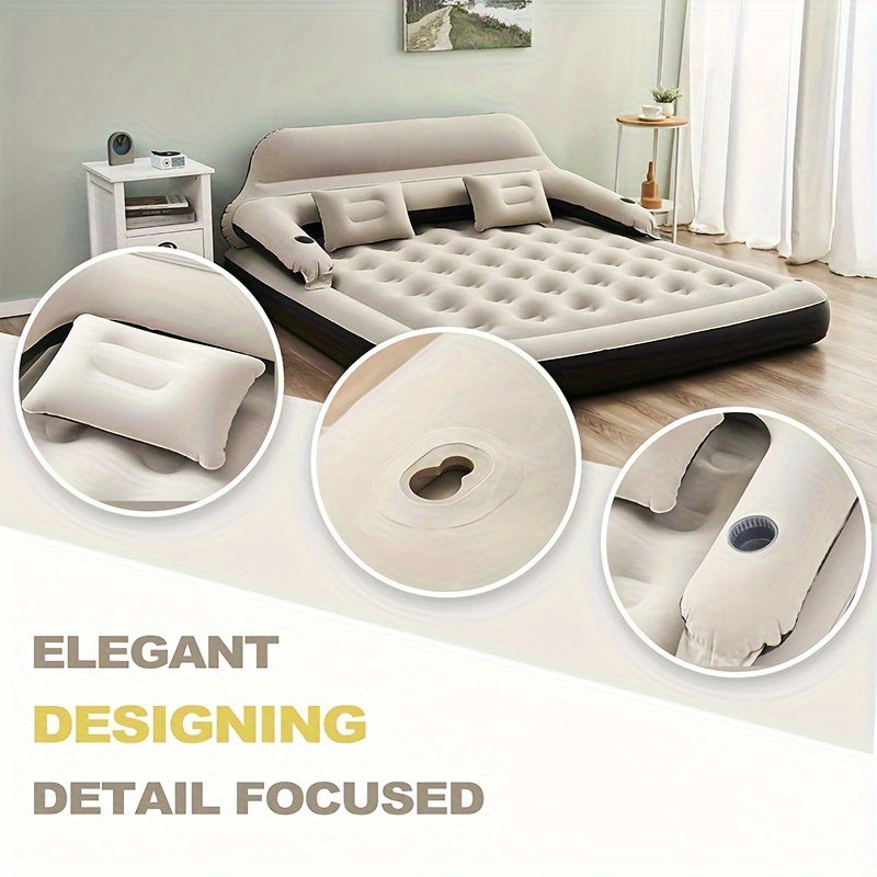 Самонадувающийся двухместный надувной матрас с подушками для кемпинга, изготовленный из не заряженного полиэфирного волокна. Ремонтный комплект и мешок для хранения не включены.