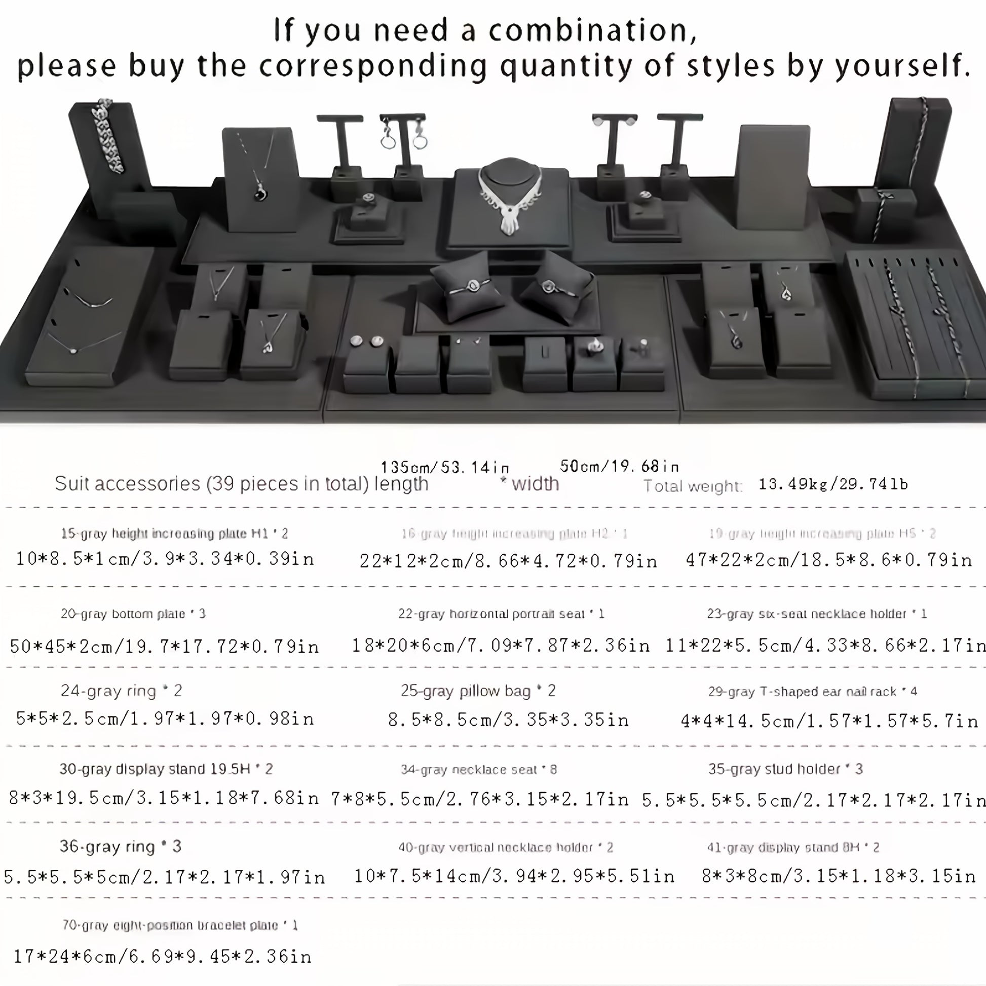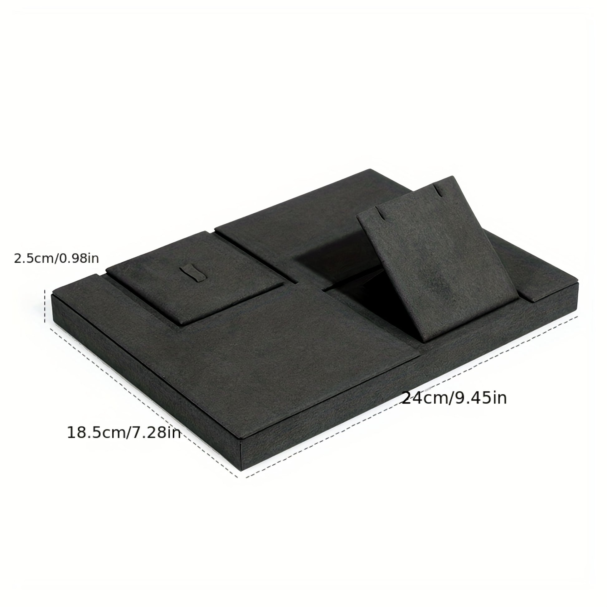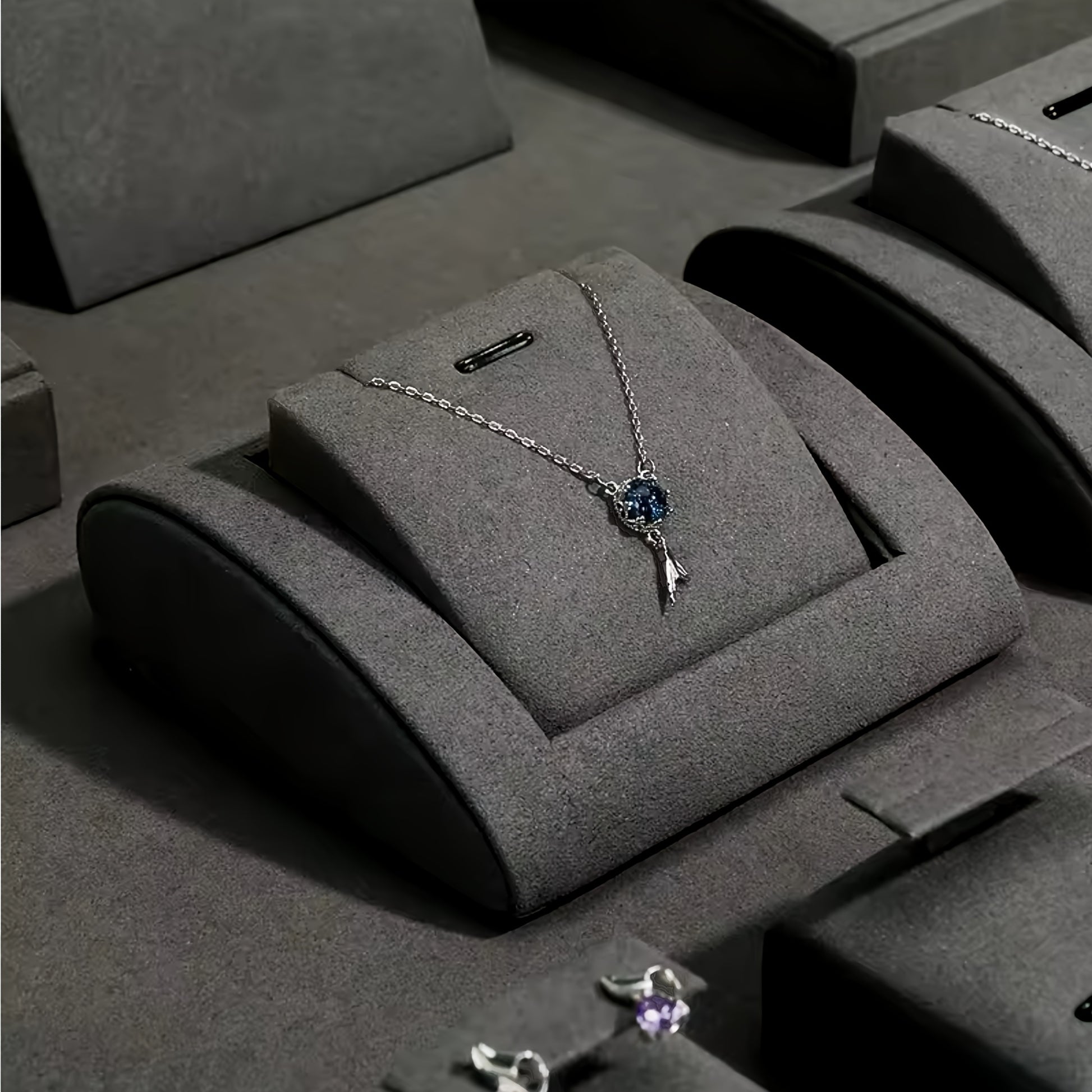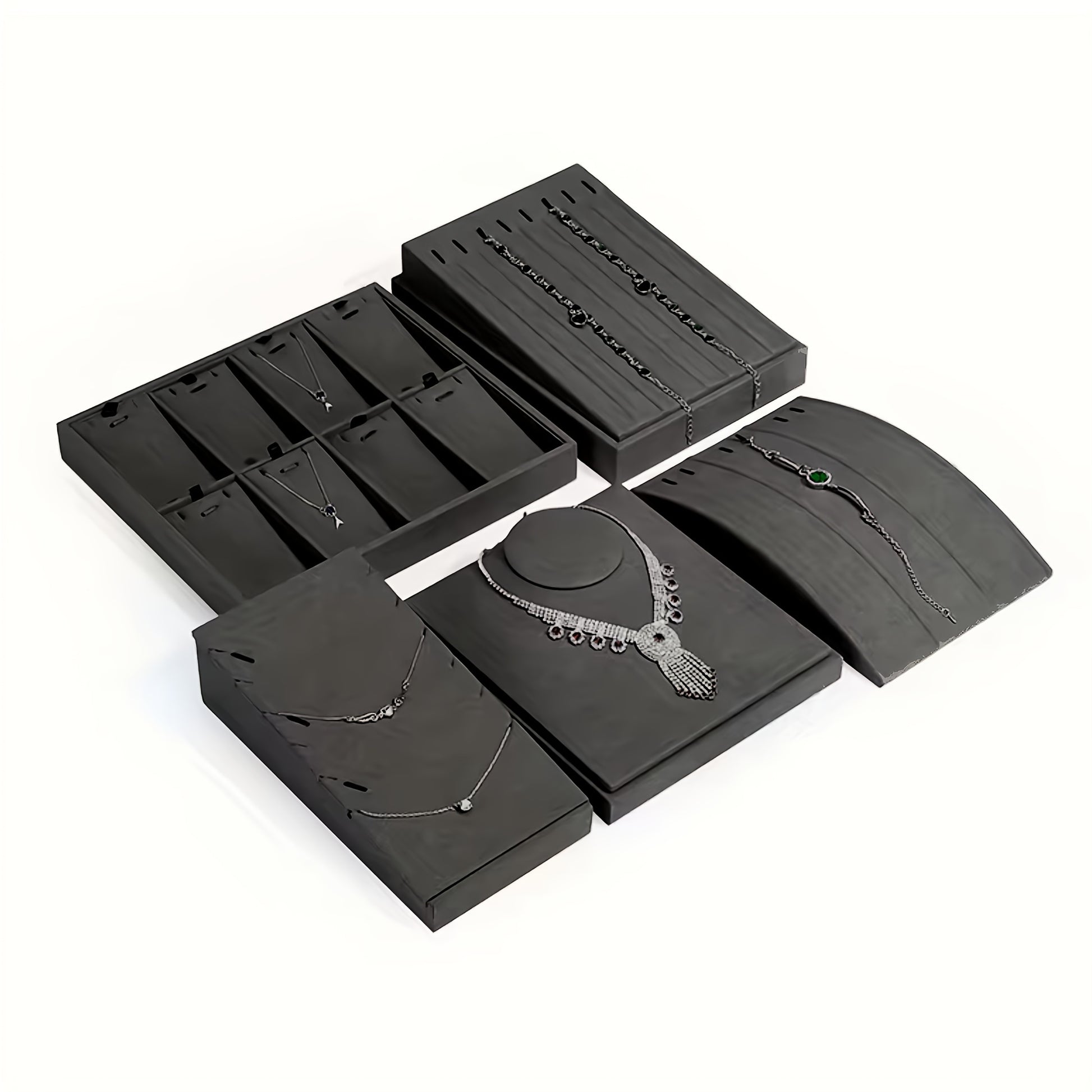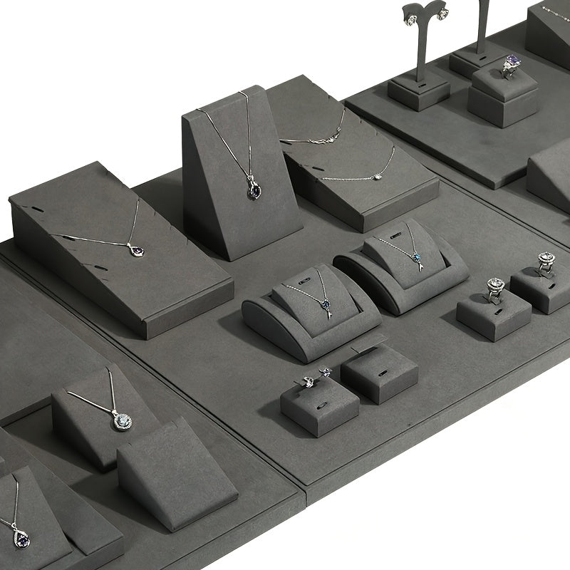Набор дисплеев для украшений серого цвета с кулоном, серьгами, кольцом, подставкой и подносом