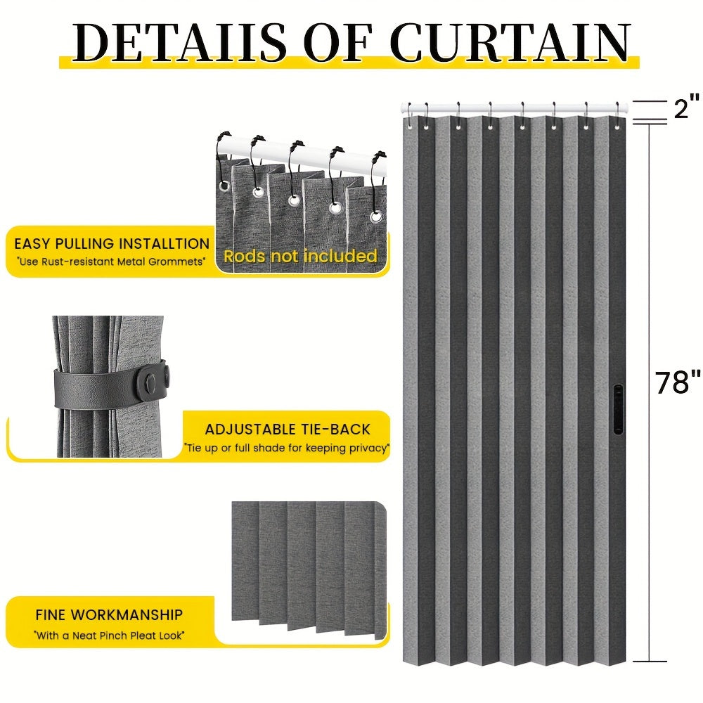 Набор из 1 складного затемняющего штора с крючками в аккордеонном стиле для окон, идеально подходит для создания перегородок в помещениях. Подходит для гостиных, спален, входов, гардеробных, офисных дверей и французских окон. Улучшите декор вашего дома.