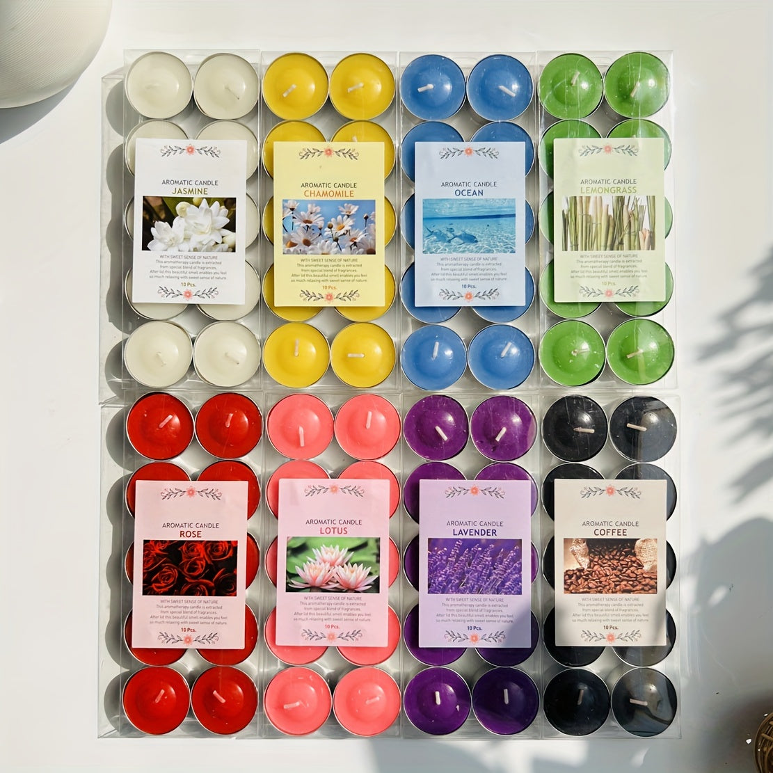 Набор из 10 сильно ароматизированных чайных свечей, идеально подходящих для домашнего декора, свадеб, вечеринок, праздников, спа и ароматерапии.