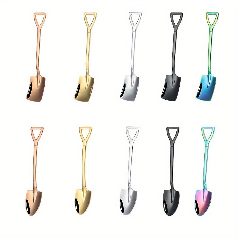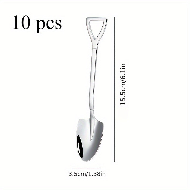 Набор из 10 ложек для мороженого из нержавеющей стали в креативном дизайне лопаты - идеально подходит для десертов, чая, кофе, дома, кухни и ресторанного использования