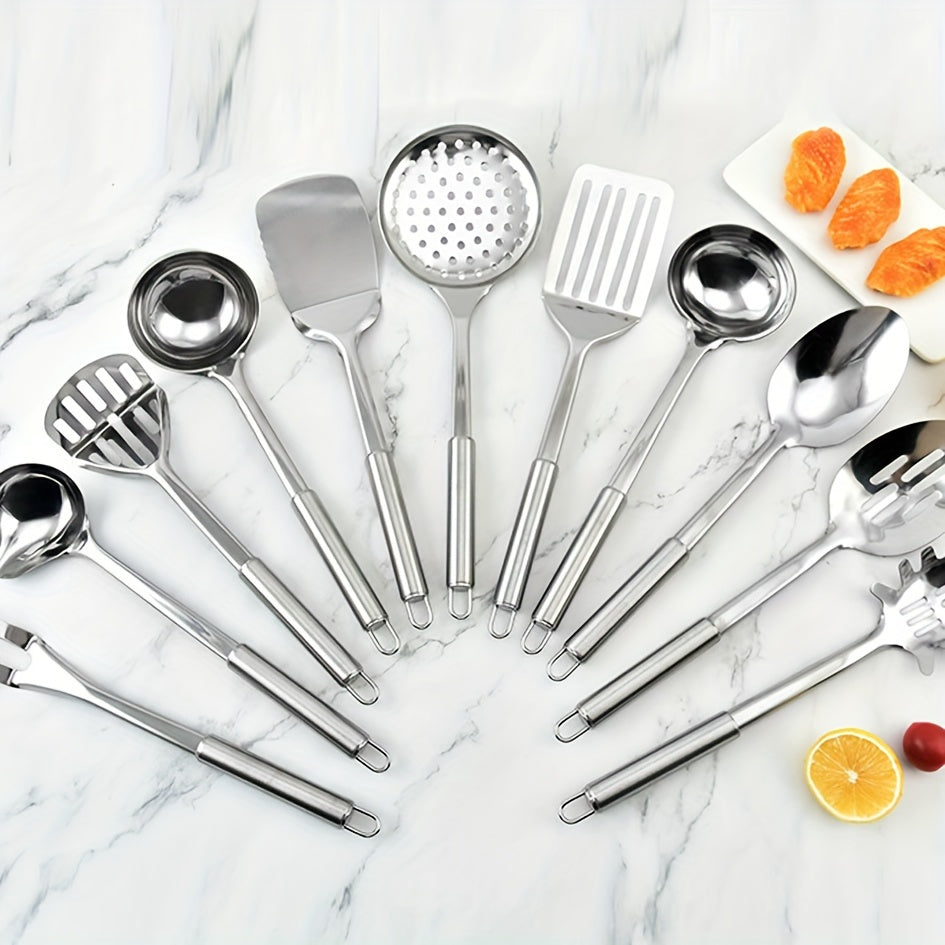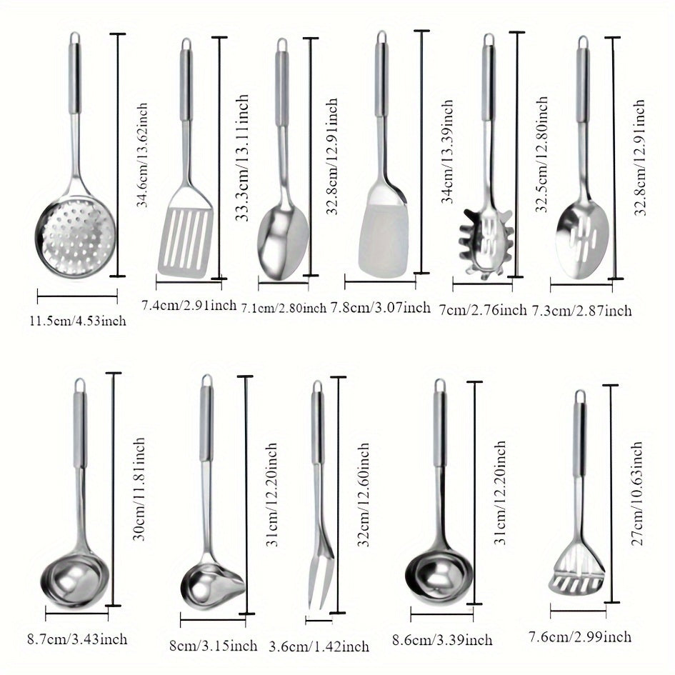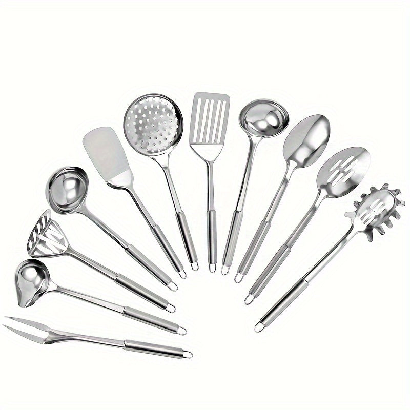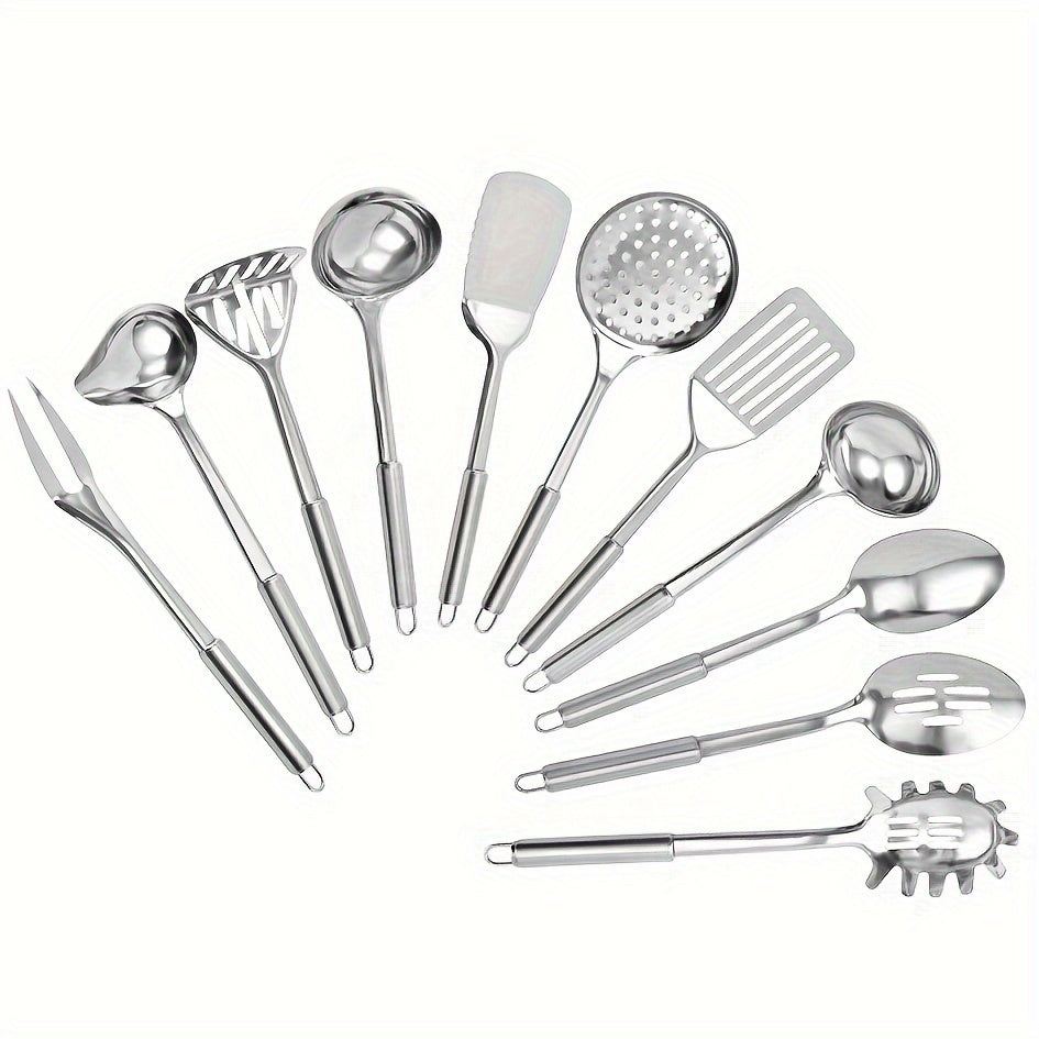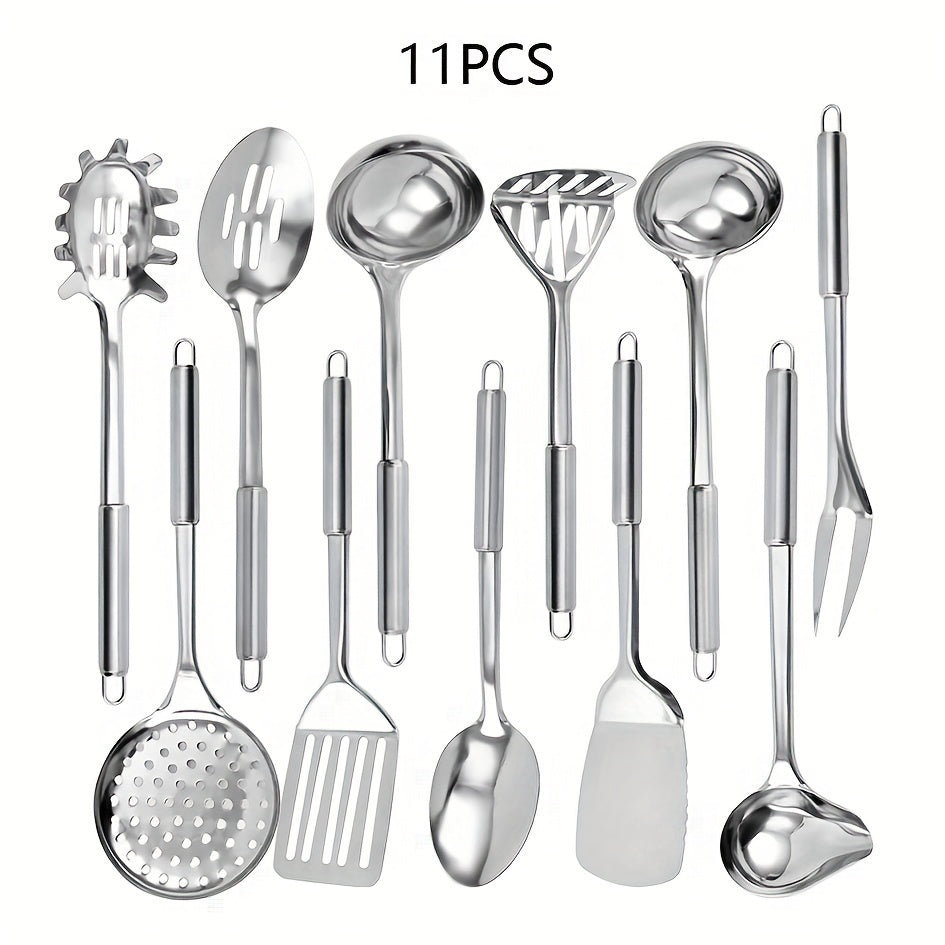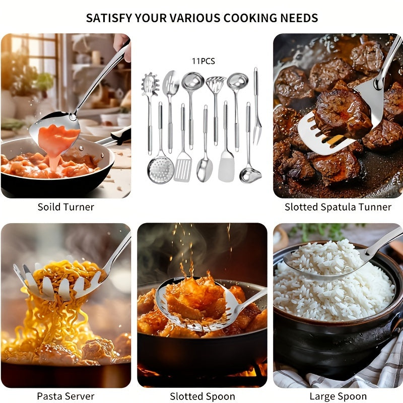 Набор из 11 кухонных принадлежностей из нержавеющей стали - долговечные инструменты для приготовления пищи для использования дома и в ресторанах