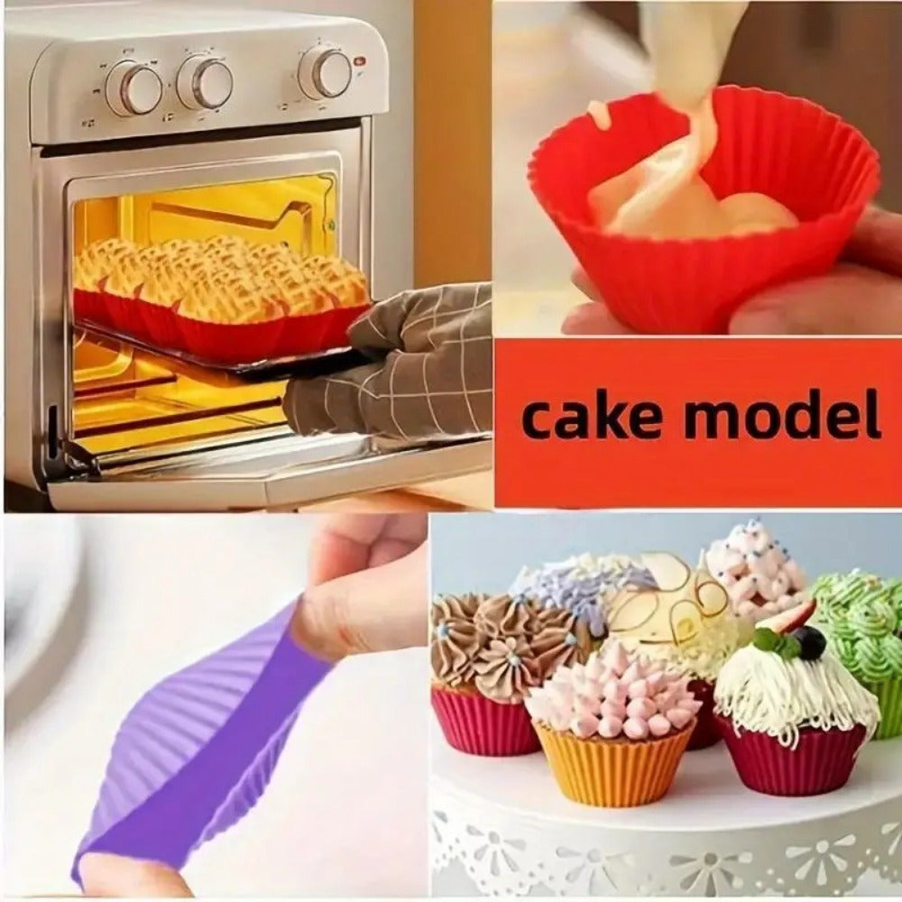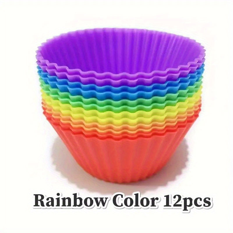 Набор из 12 ярких силиконовых формочек для маффинов, идеально подходящих для выпечки и украшения кексов. Эти многоразовые подкладки изготовлены из безопасных для пищи материалов, что делает их незаменимым аксессуаром для вашей кухни.