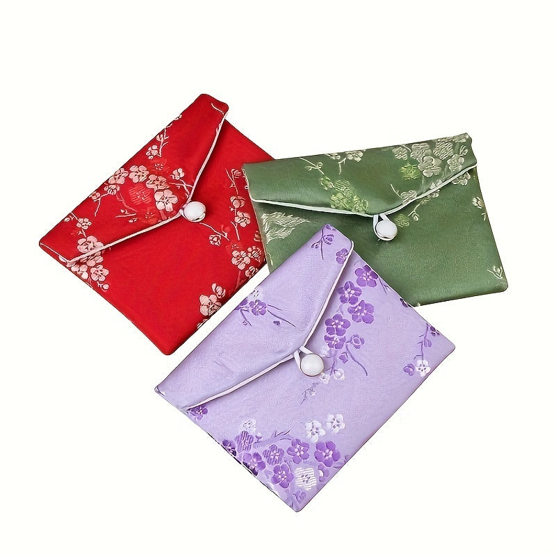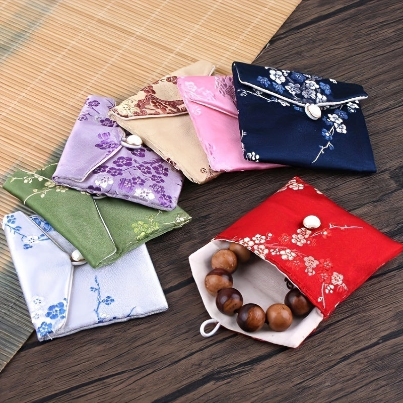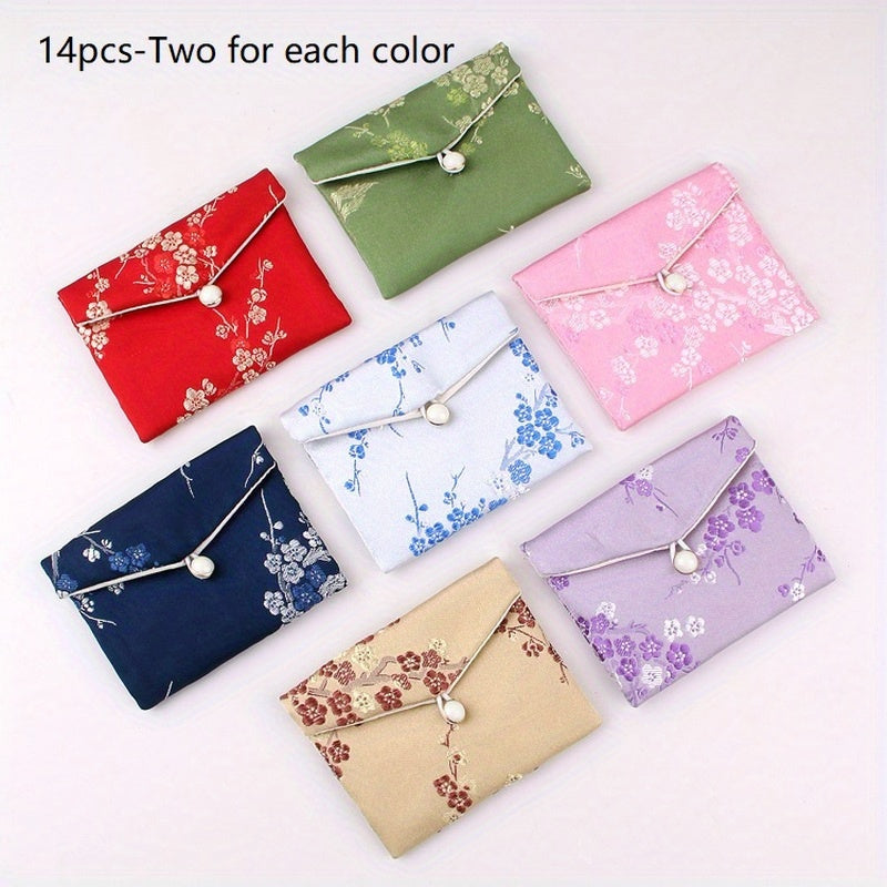Набор из 14 шелковых косметичек с китайской вышивкой из брокадной ткани и застежками из жемчужных пуговиц
