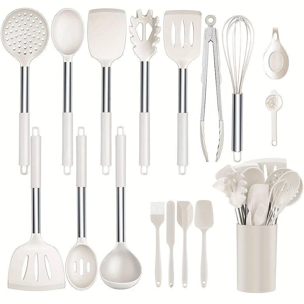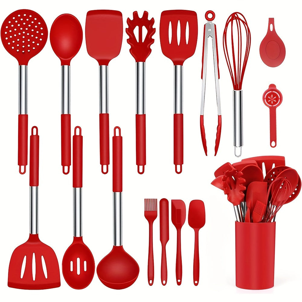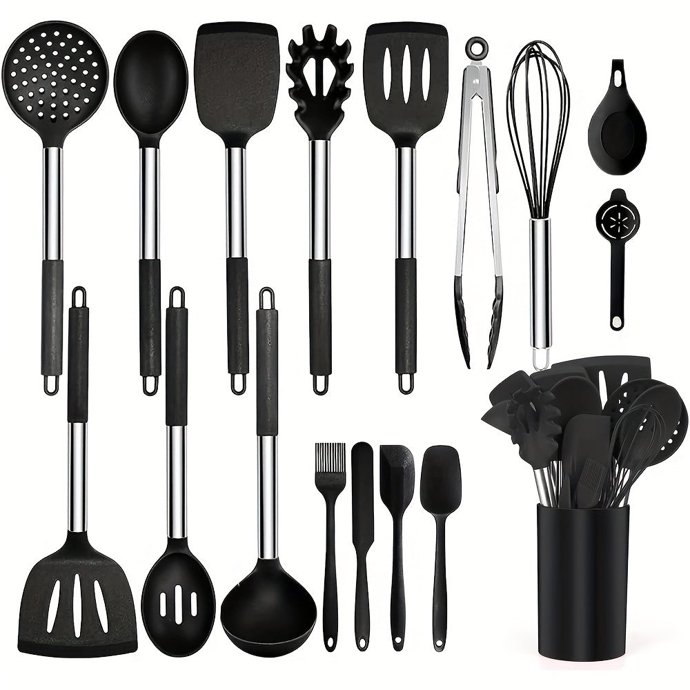 Набор из 17 силиконовых кухонных принадлежностей - термостойкие, антипригарные инструменты для готовки с ручками из нержавеющей стали, можно мыть в посудомоечной машине - идеально подходит для приготовления блюд на Хэллоуин, Рождество и Пасху.