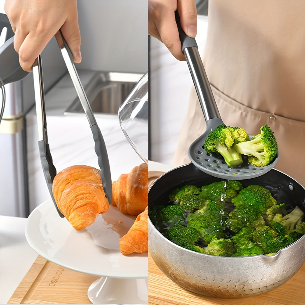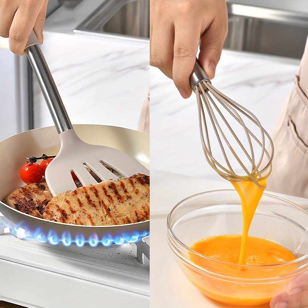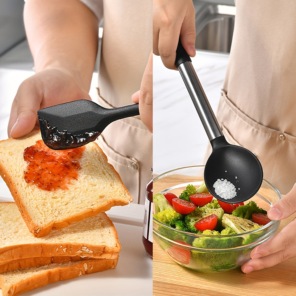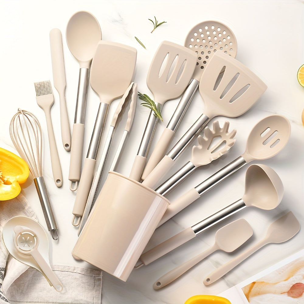 Набор из 17 силиконовых кухонных принадлежностей - термостойкие, антипригарные инструменты для готовки с ручками из нержавеющей стали, можно мыть в посудомоечной машине - идеально подходит для приготовления блюд на Хэллоуин, Рождество и Пасху.