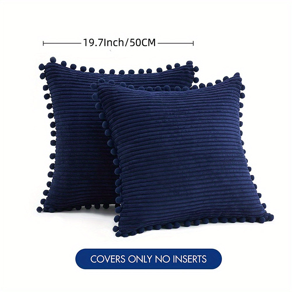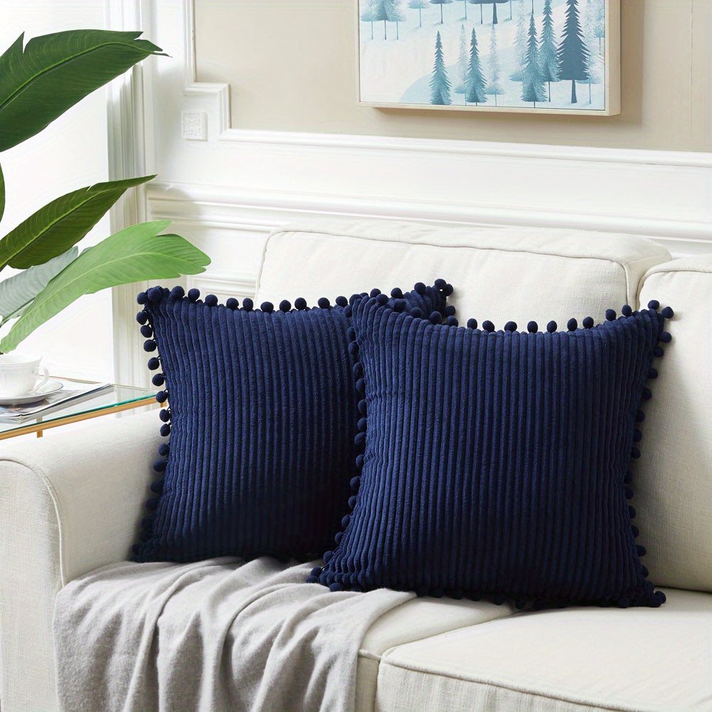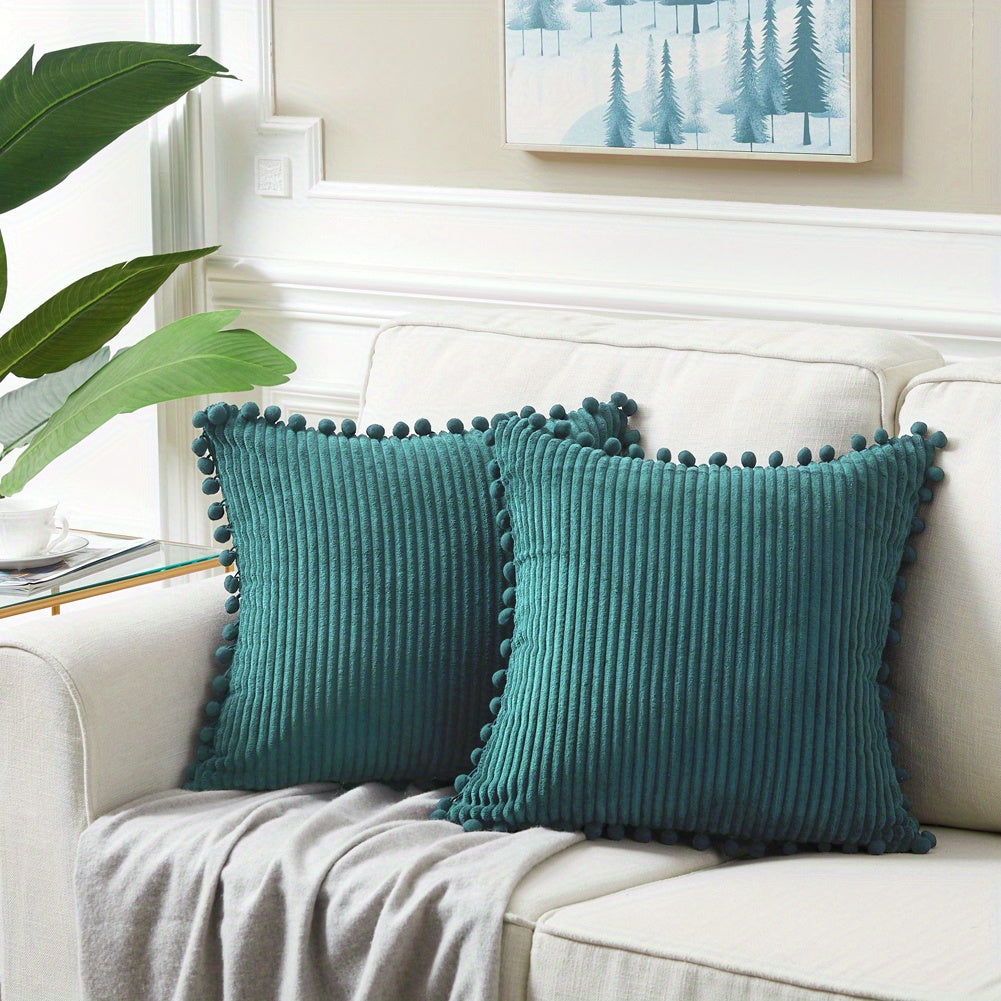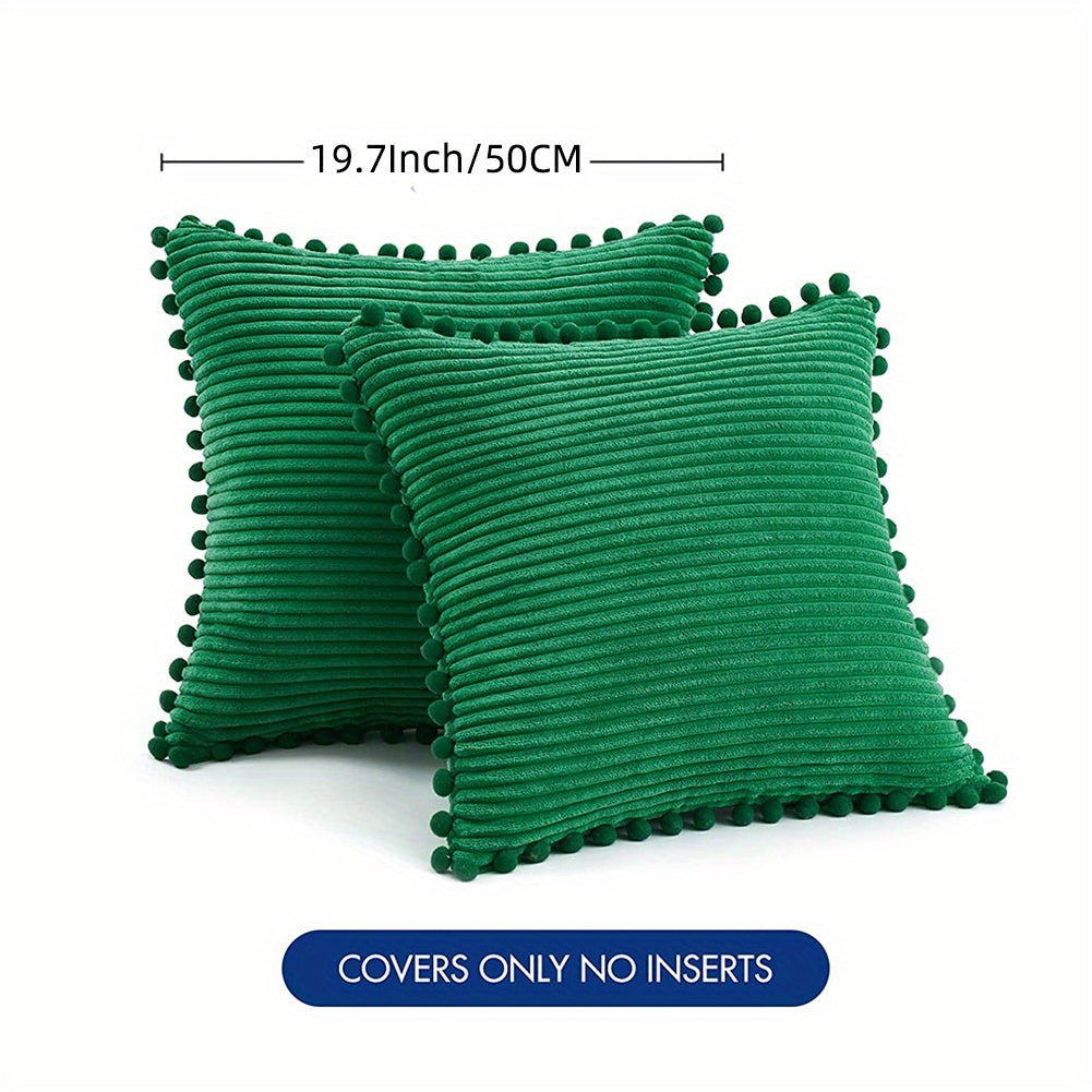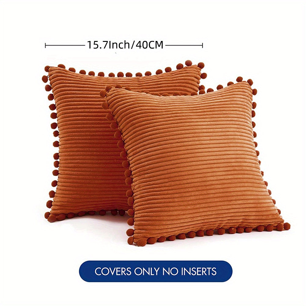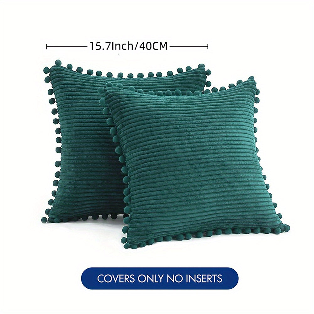 Набор из 2-х бохо наволочек для подушек с помпонами и акцентом из вельвета. Сплошные квадратные подушки для различных пространств. (18x18 дюймов/45x45 см). ВКЛЮЧЕНИЯ НЕ ВХОДЯТ.