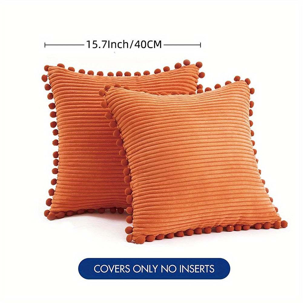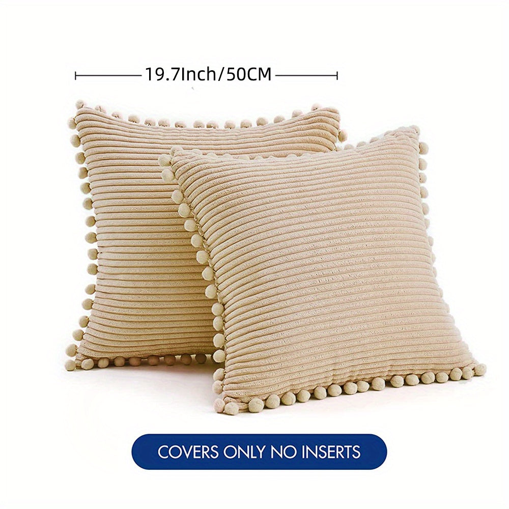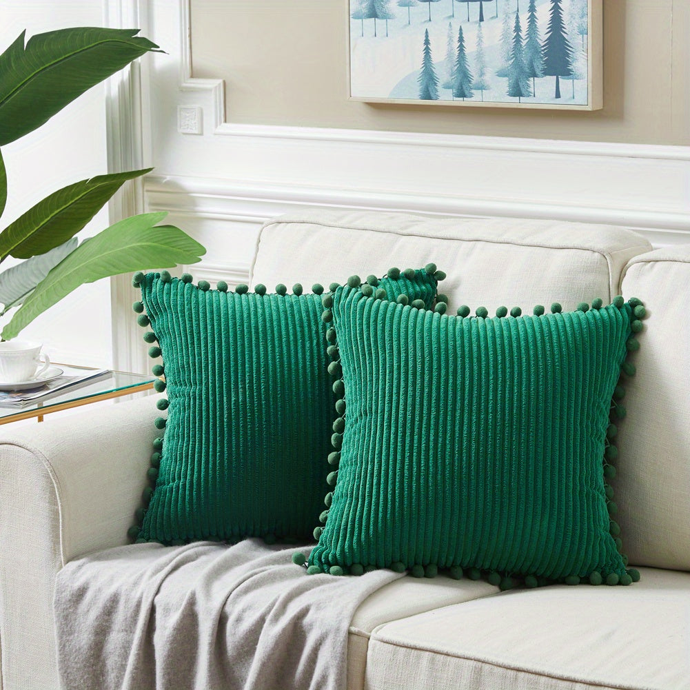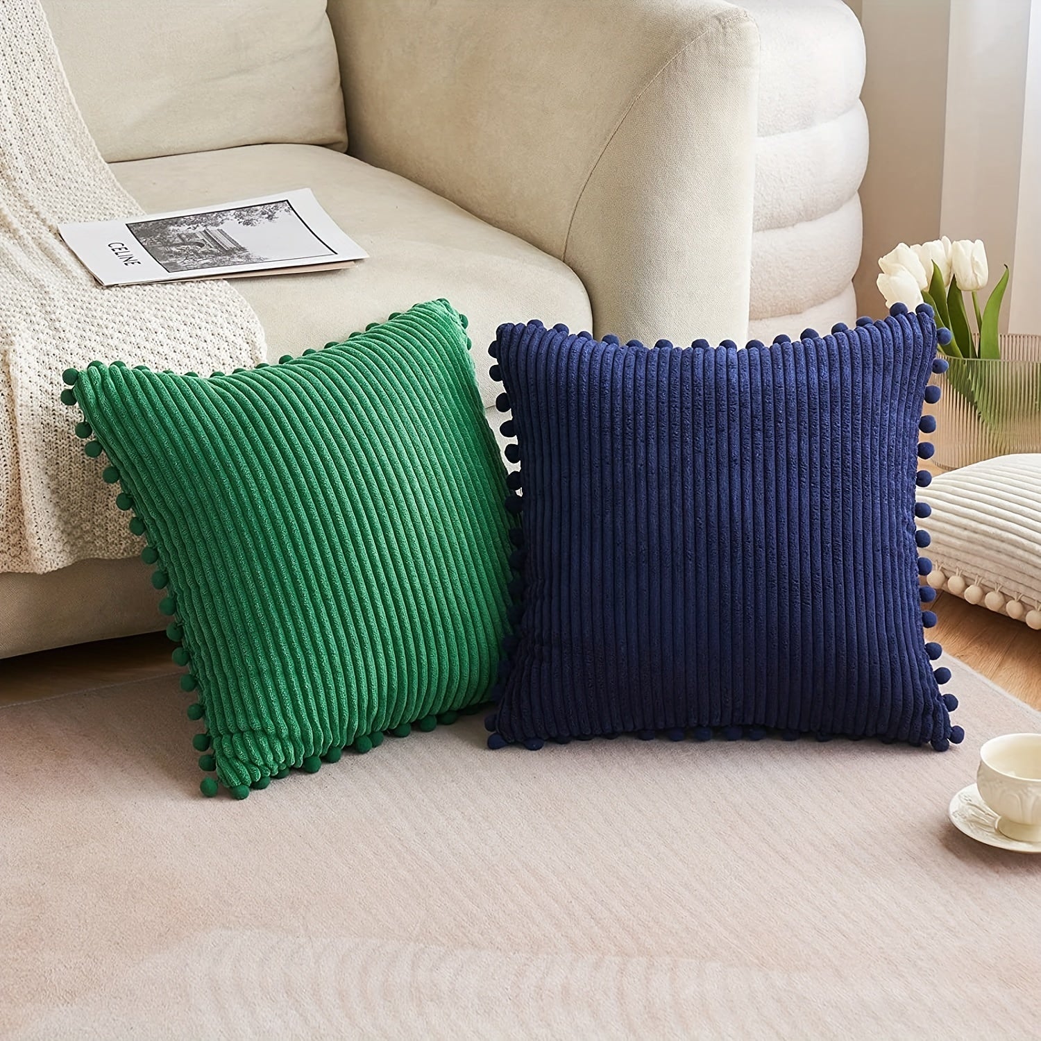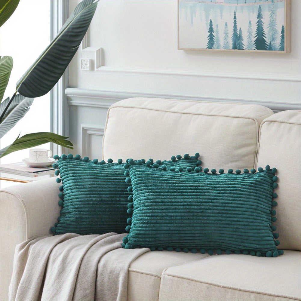 Набор из 2-х бохо наволочек для подушек с помпонами и акцентом из вельвета. Сплошные квадратные подушки для различных пространств. (18x18 дюймов/45x45 см). ВКЛЮЧЕНИЯ НЕ ВХОДЯТ.