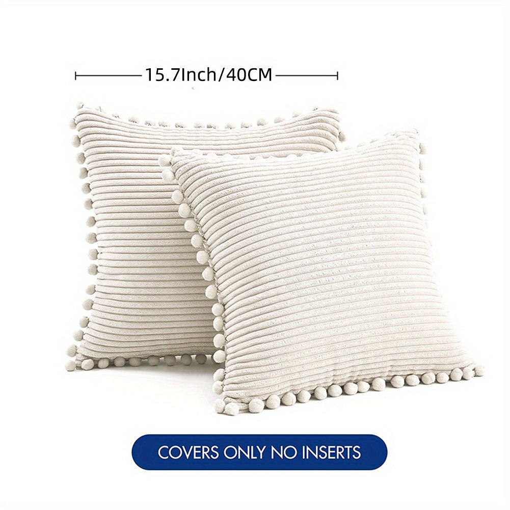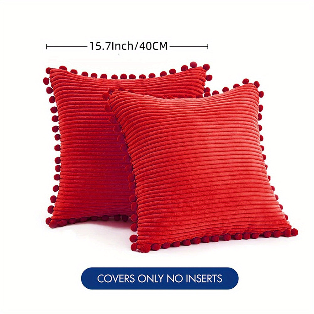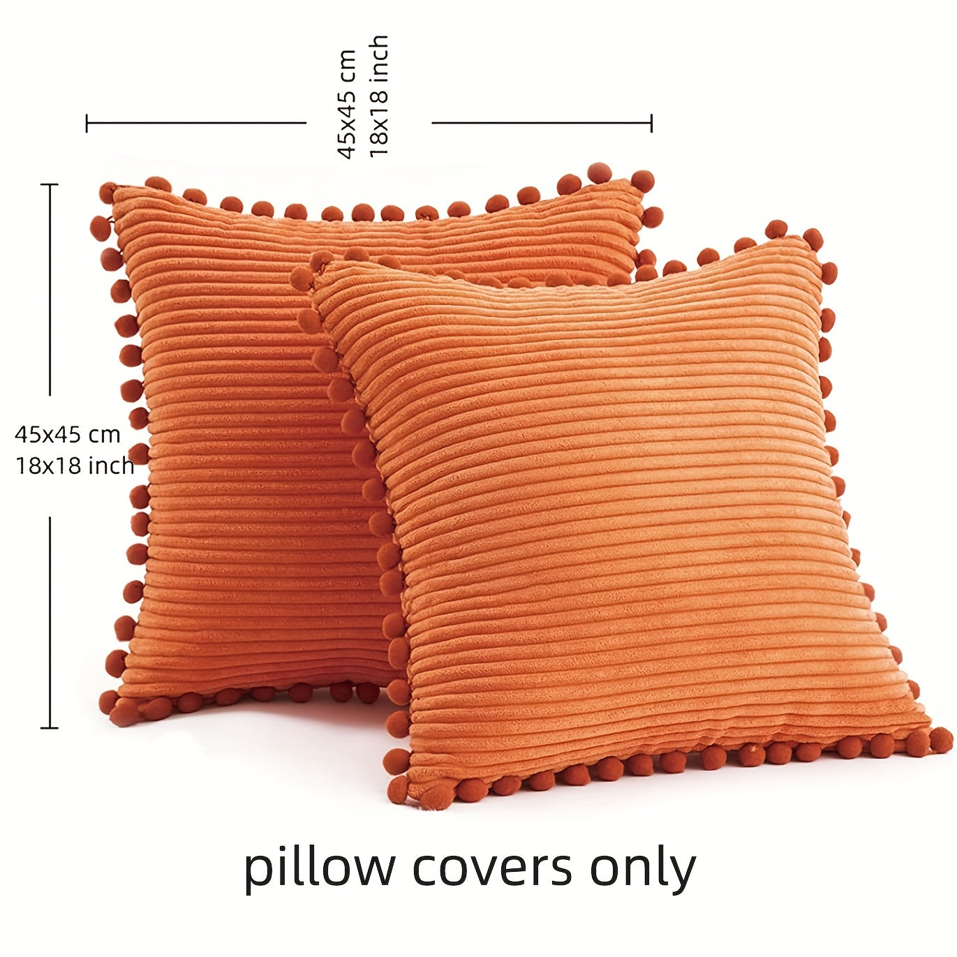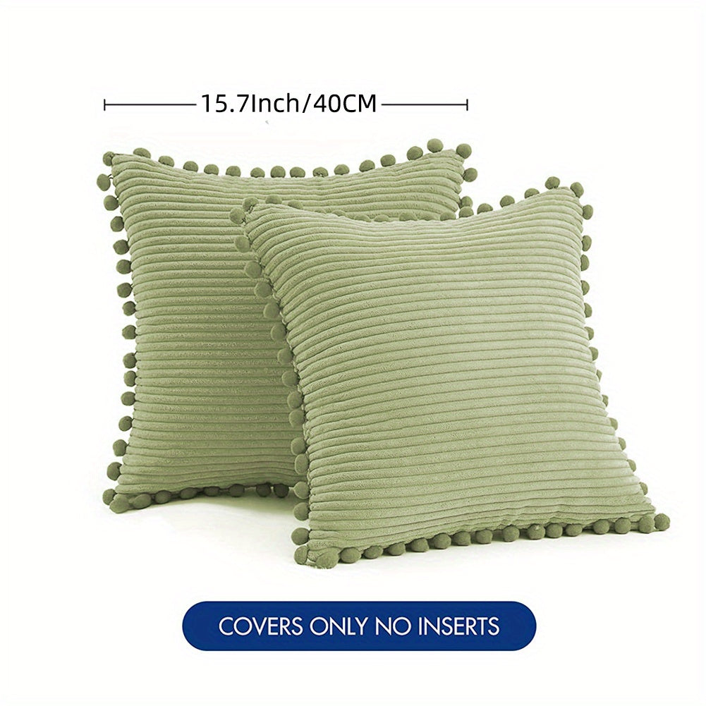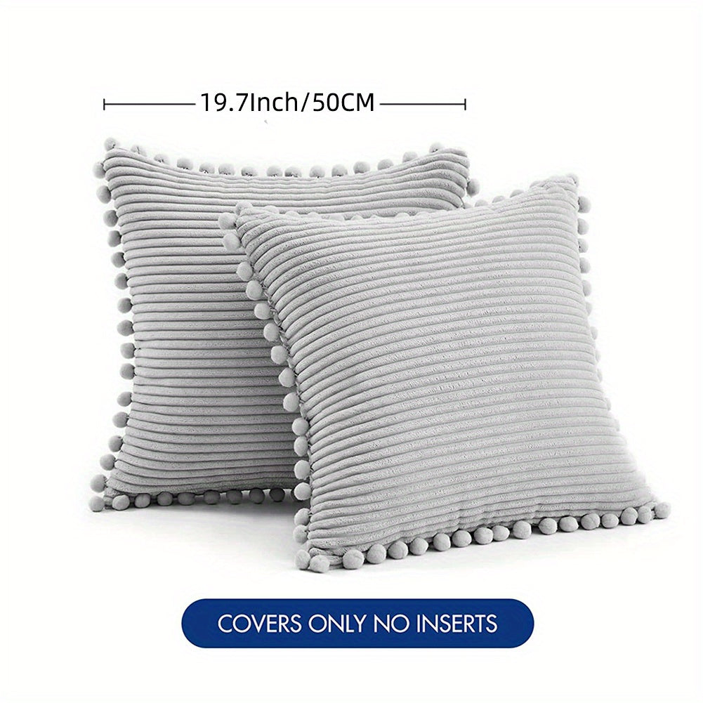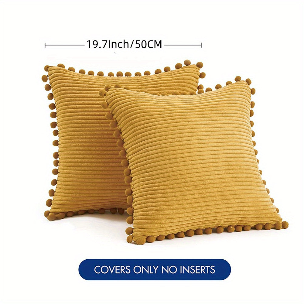 Набор из 2-х бохо наволочек для подушек с помпонами и акцентом из вельвета. Сплошные квадратные подушки для различных пространств. (18x18 дюймов/45x45 см). ВКЛЮЧЕНИЯ НЕ ВХОДЯТ.