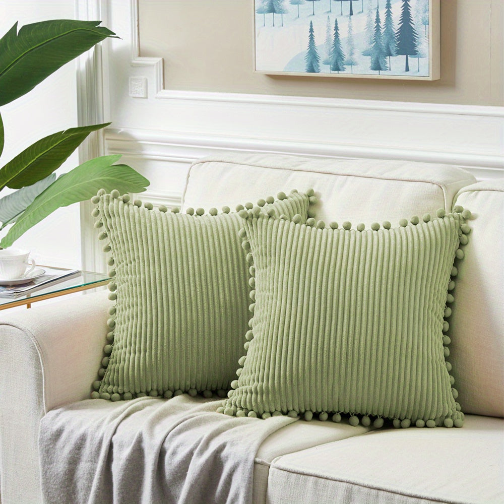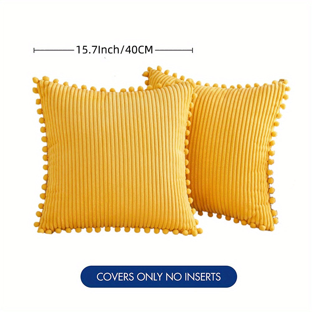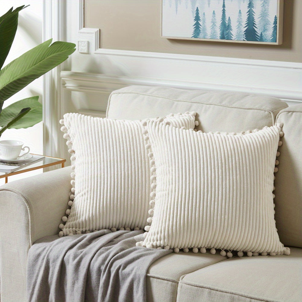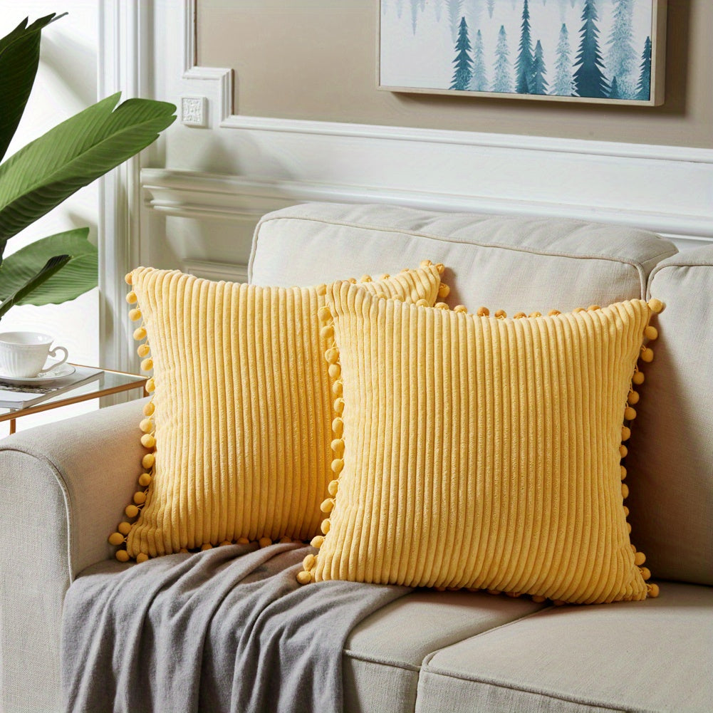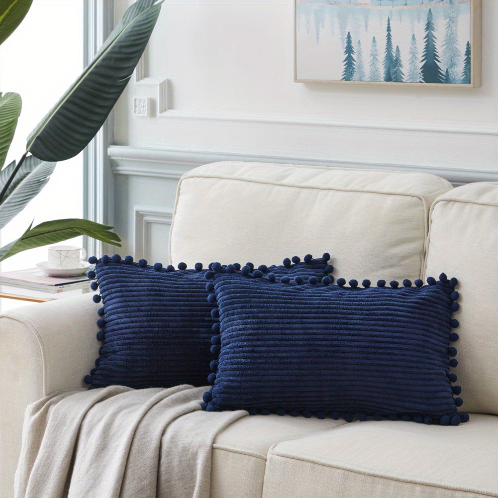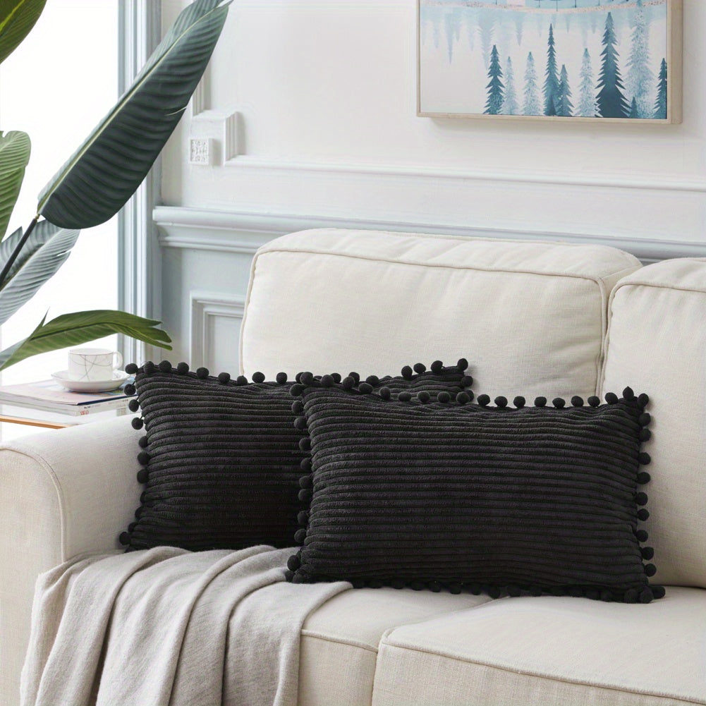 Набор из 2-х бохо наволочек для подушек с помпонами и акцентом из вельвета. Сплошные квадратные подушки для различных пространств. (18x18 дюймов/45x45 см). ВКЛЮЧЕНИЯ НЕ ВХОДЯТ.