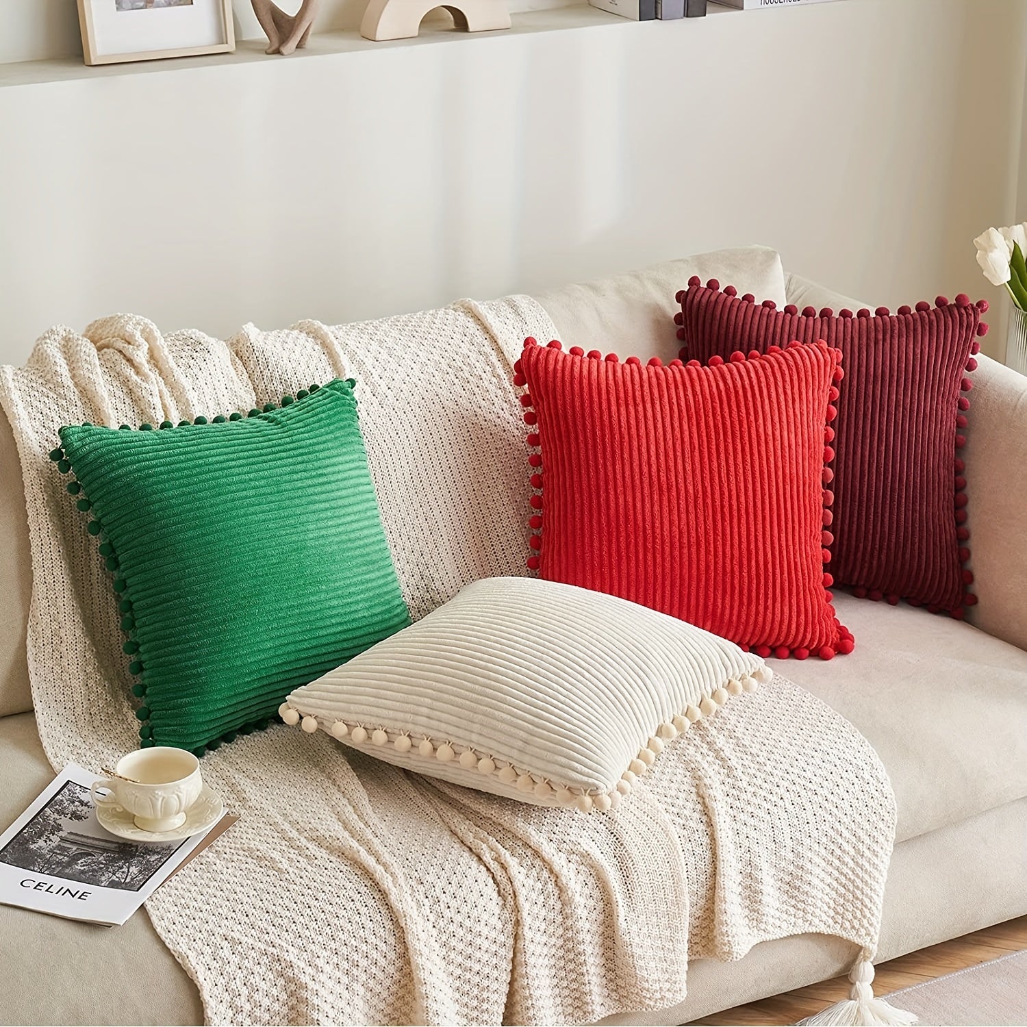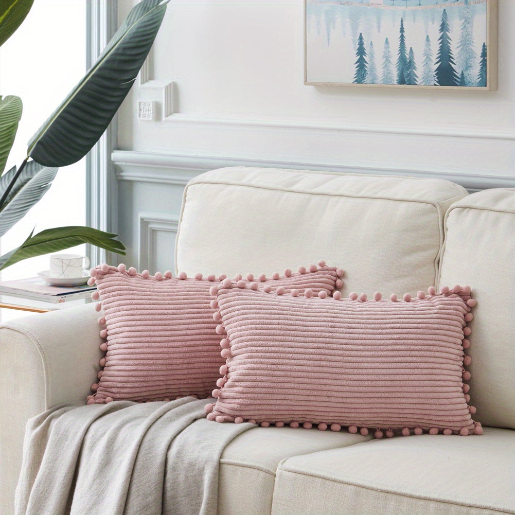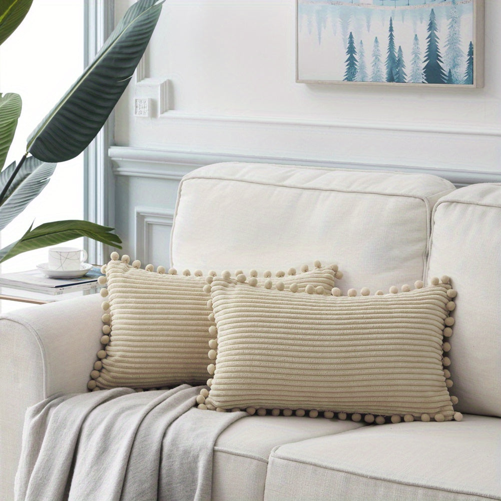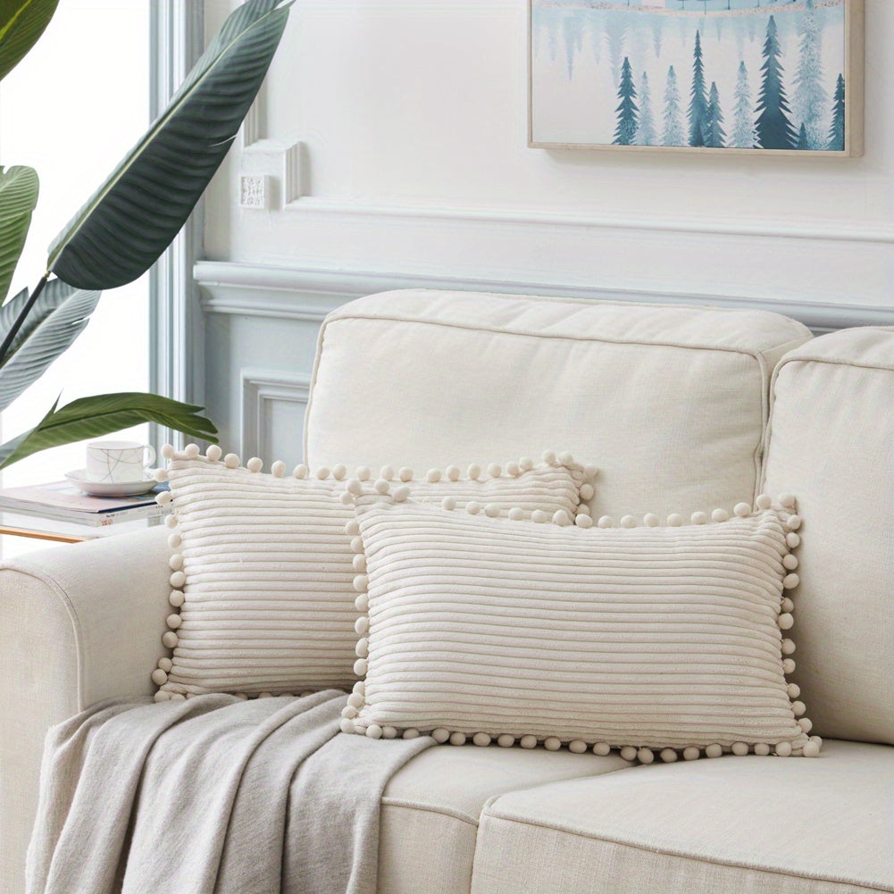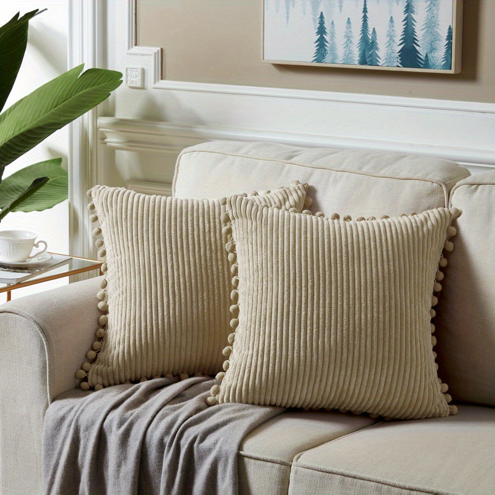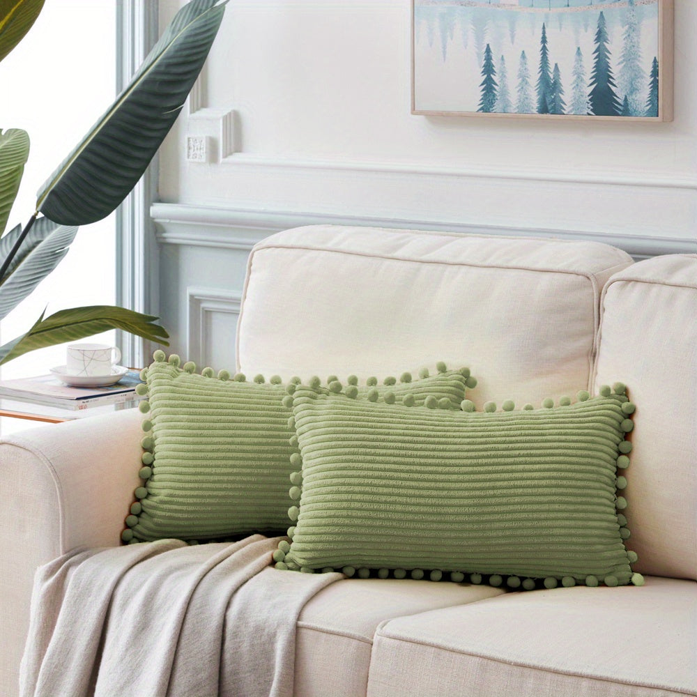 Набор из 2-х бохо наволочек для подушек с помпонами и акцентом из вельвета. Сплошные квадратные подушки для различных пространств. (18x18 дюймов/45x45 см). ВКЛЮЧЕНИЯ НЕ ВХОДЯТ.