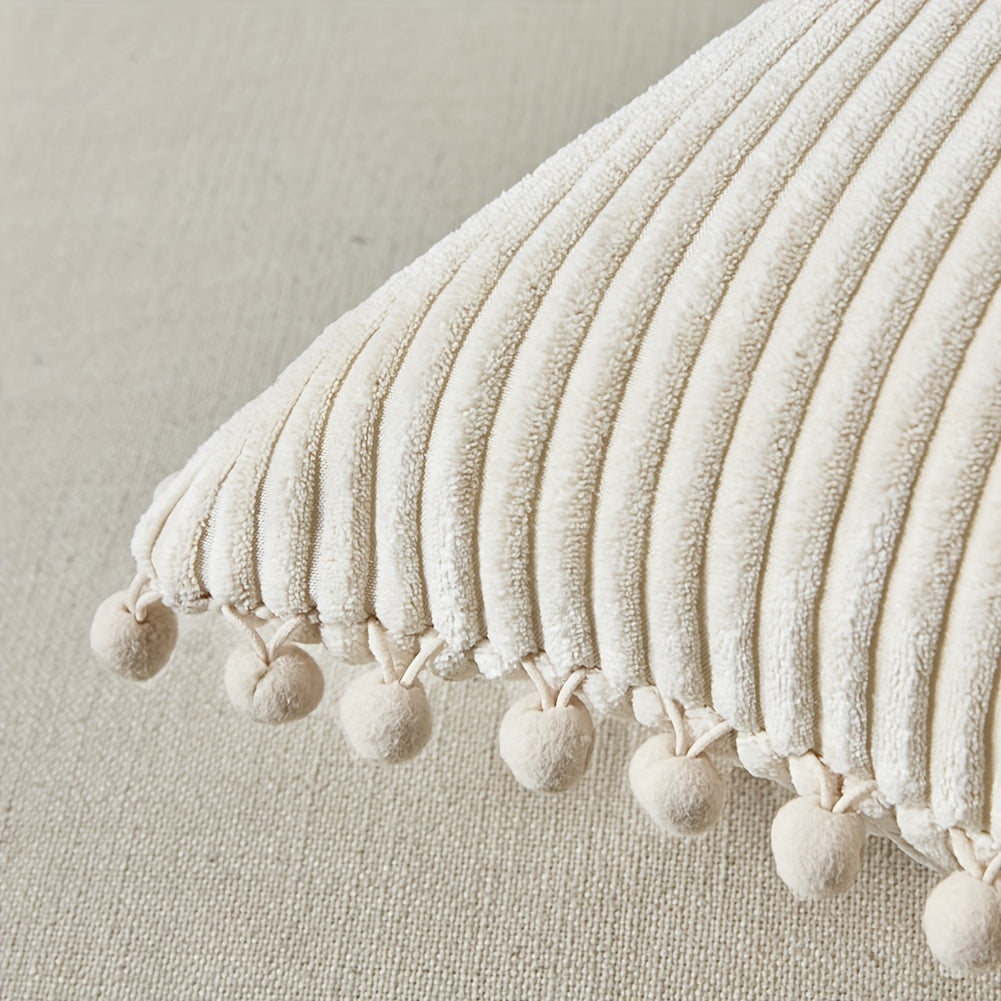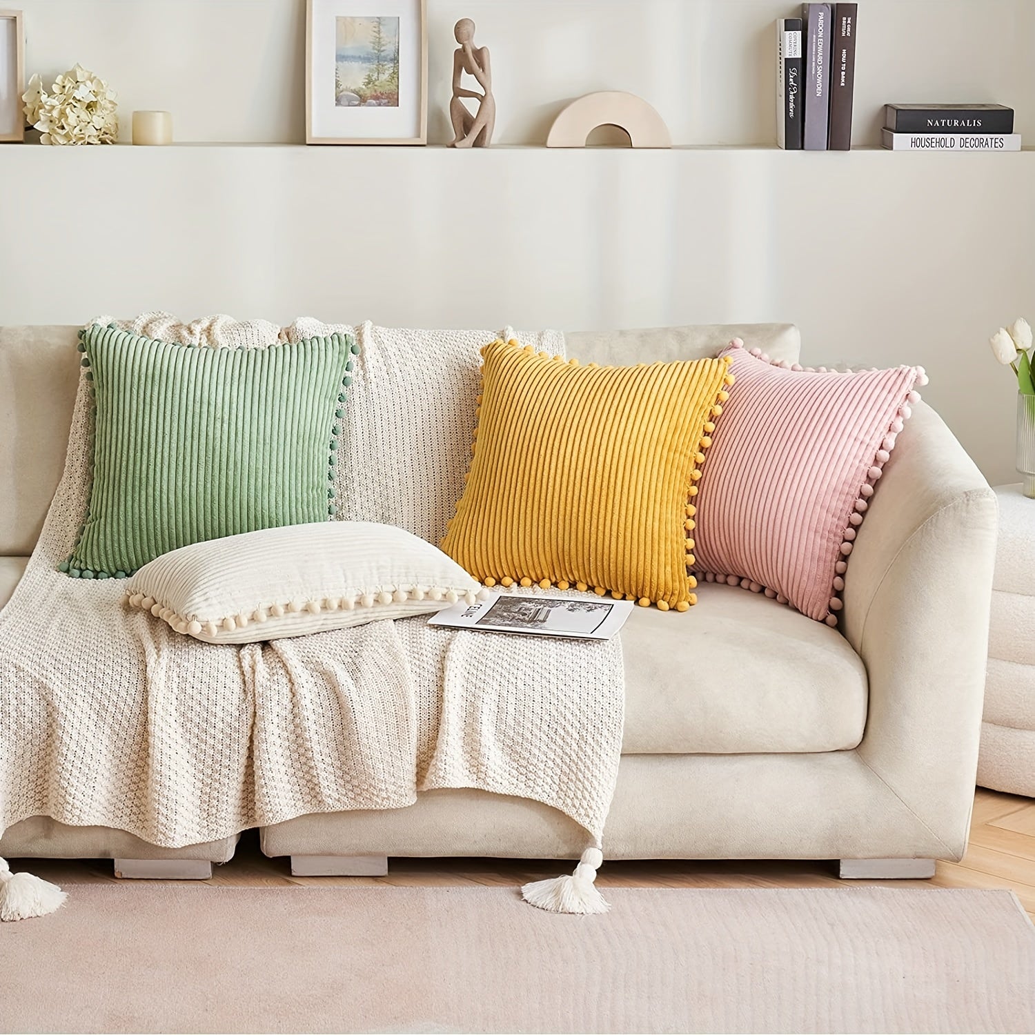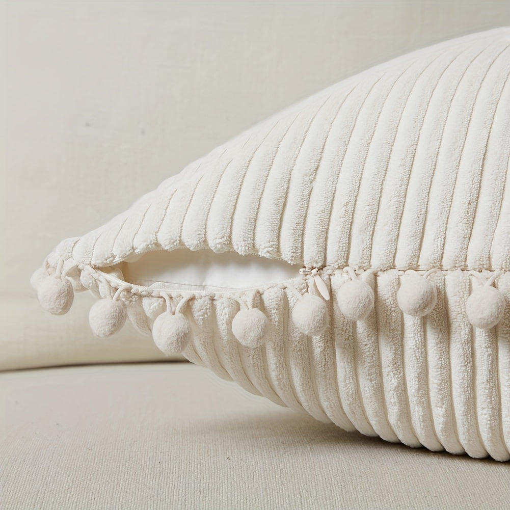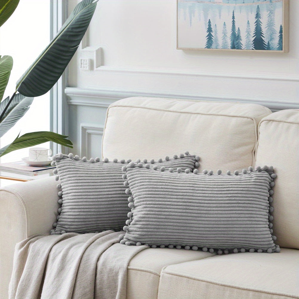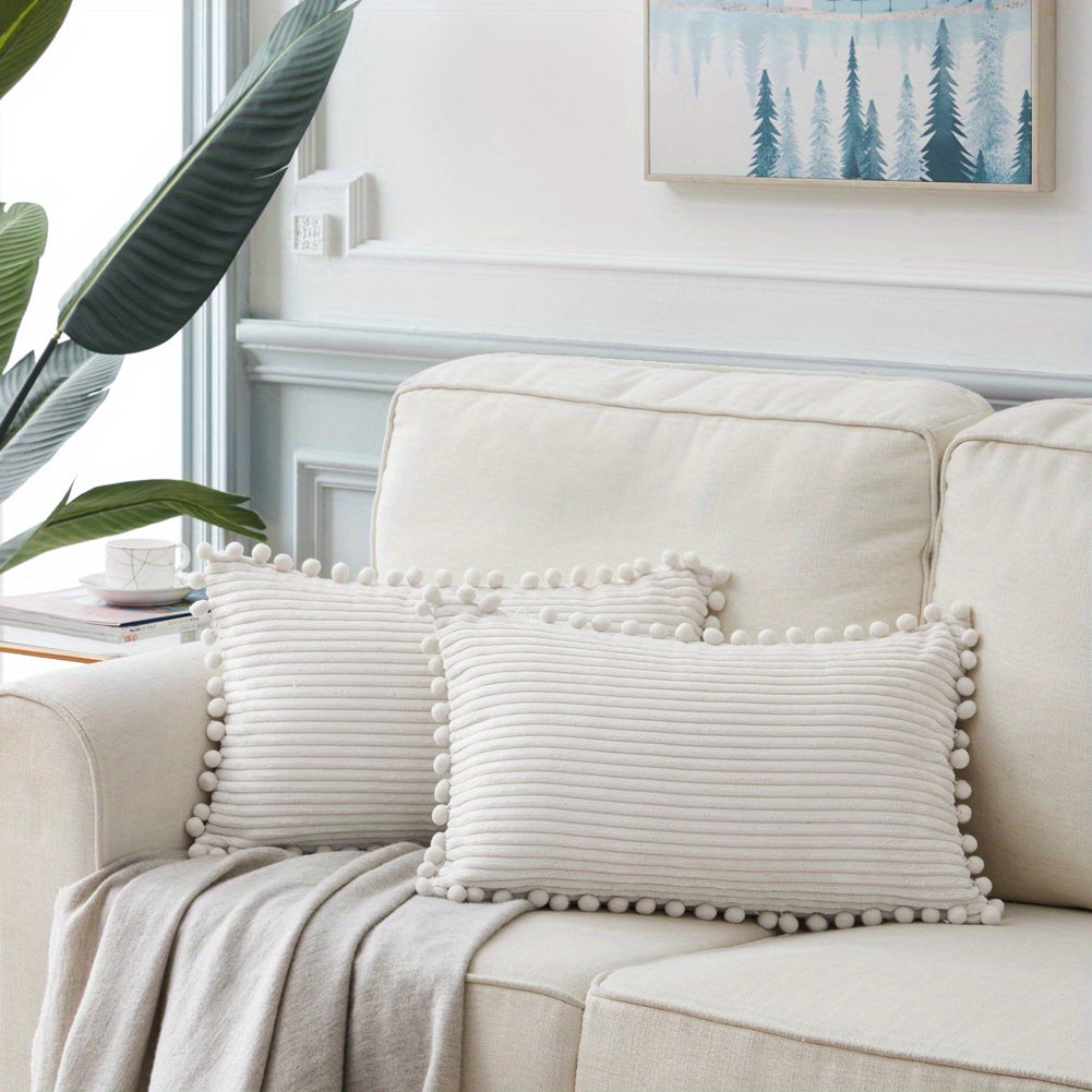 Набор из 2-х бохо наволочек для подушек с помпонами и акцентом из вельвета. Сплошные квадратные подушки для различных пространств. (18x18 дюймов/45x45 см). ВКЛЮЧЕНИЯ НЕ ВХОДЯТ.