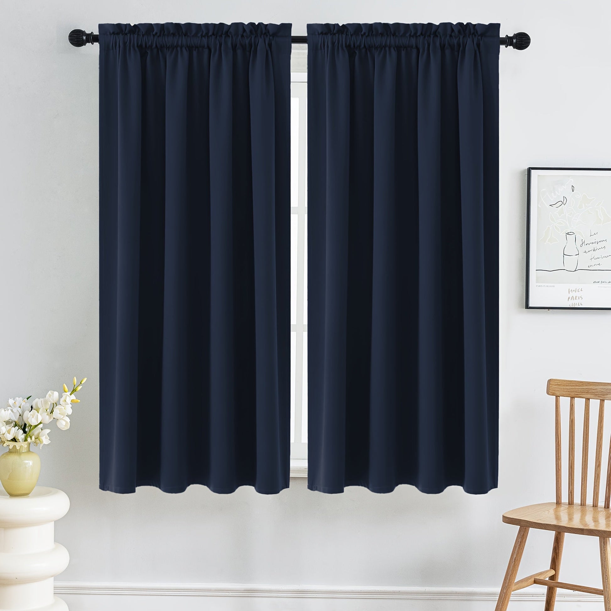 Набор из 2 штор Navy Blue Blackout с изоляцией, блокировкой УФ, устойчивых к выцветанию, с карманом для штанги