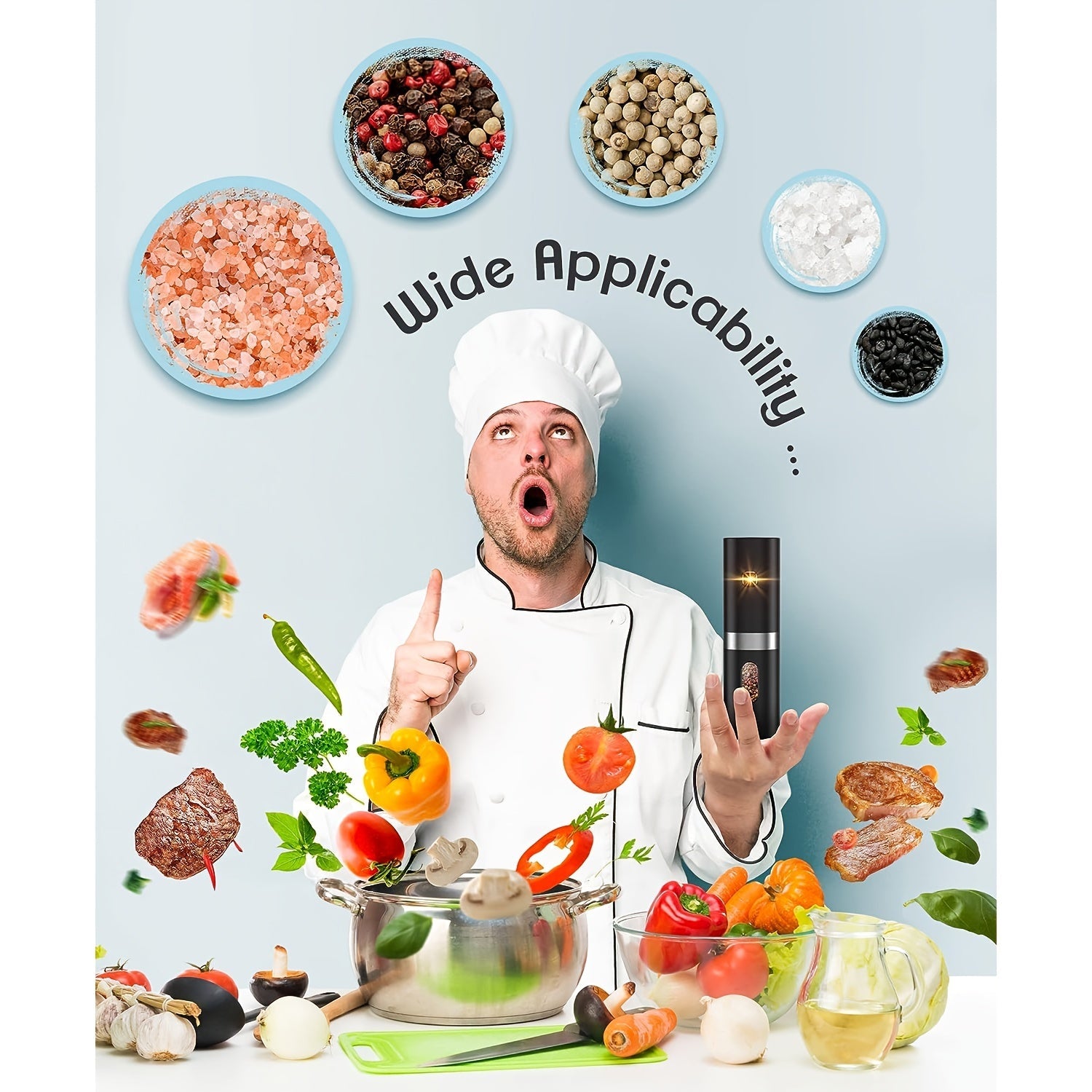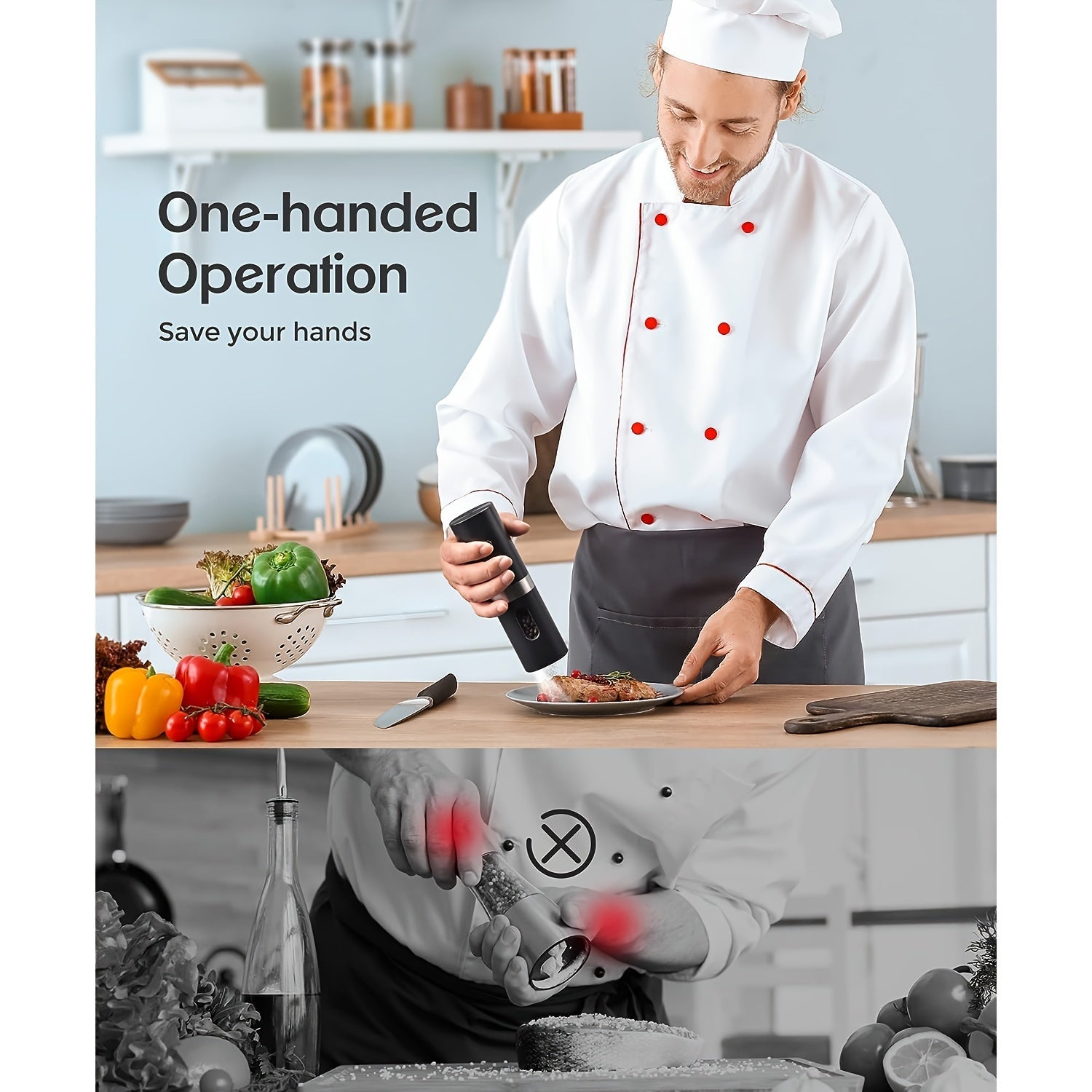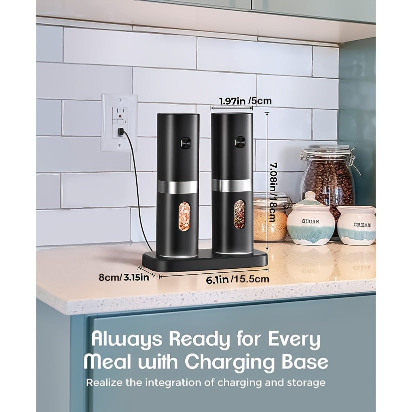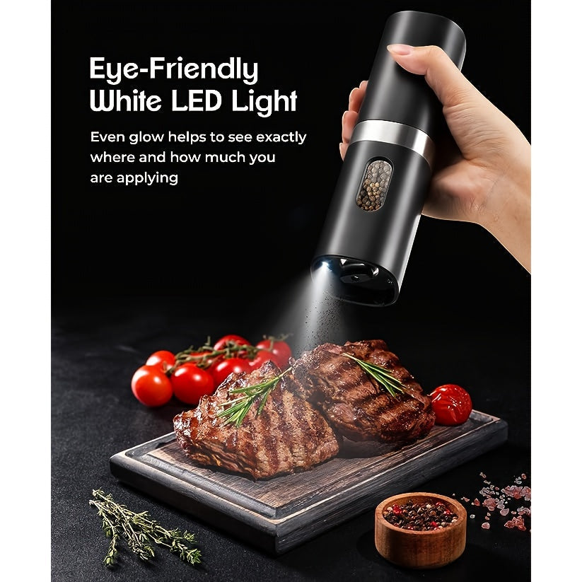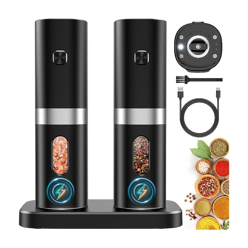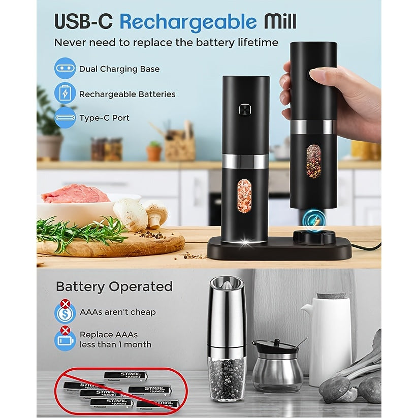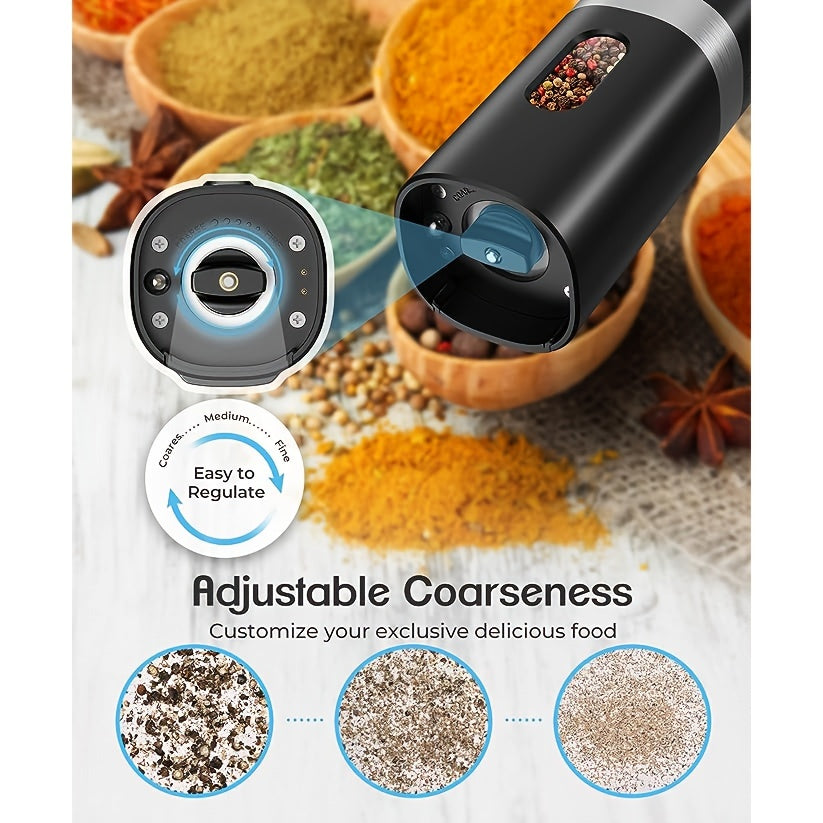 Набор из 2 электрических мельниц для перца - автоматические соломки с регулируемой крупностью, перезаряжаемая батарея 300 мАч, легкая работа одной рукой, необходимые кухонные гаджеты для приправления и готовки - изготовлены из ABS-материала.