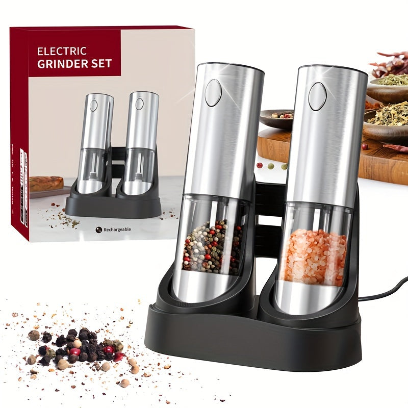 Набор из 2 электрических мельниц для перца и соли с гравитационной индукцией и LED-подсветкой
