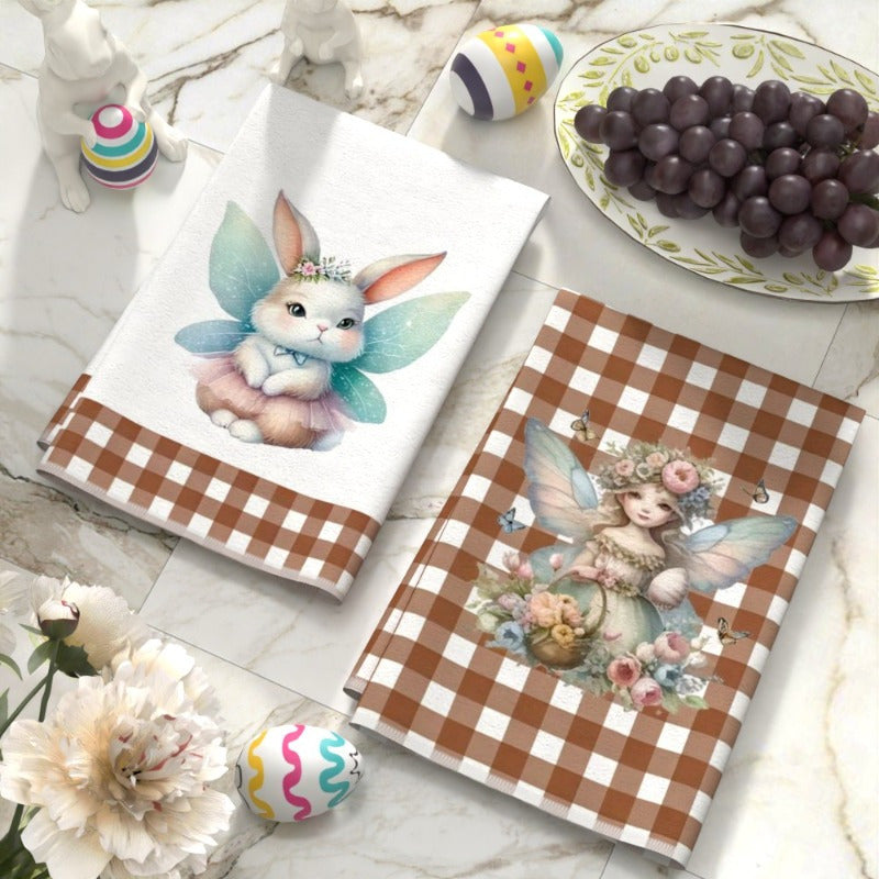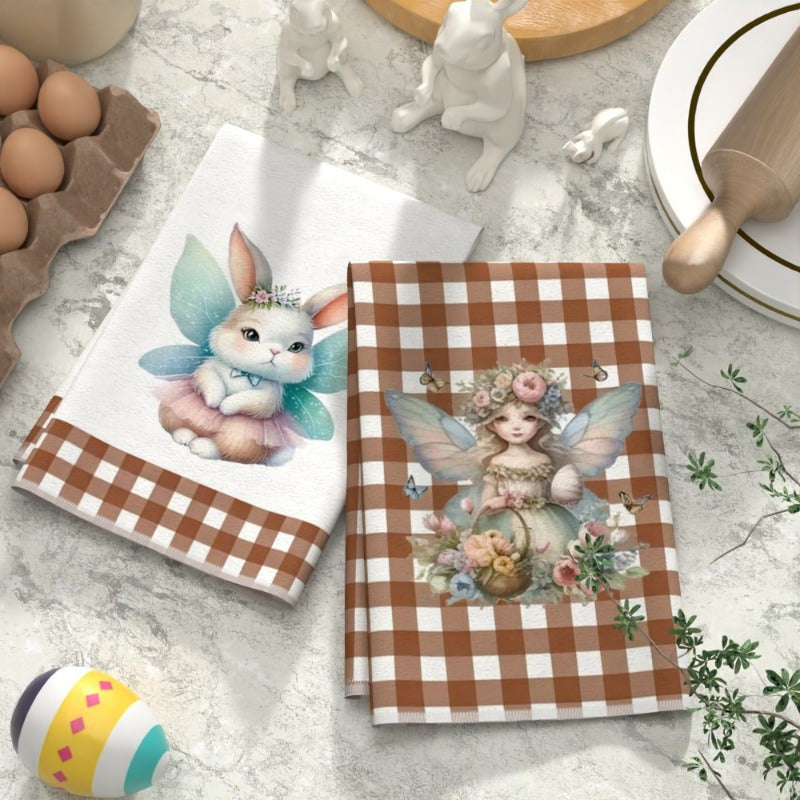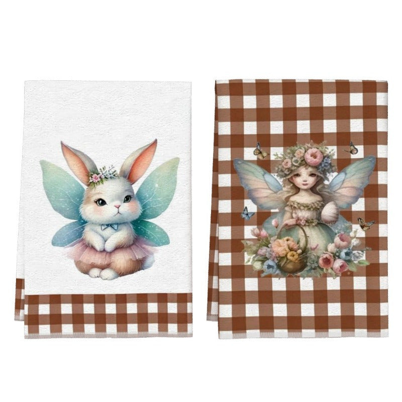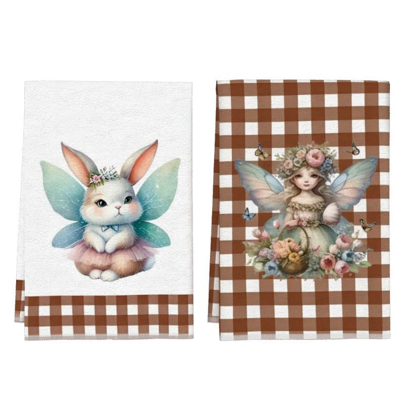 Набор из 2 кухонных полотенец Фея и Кролик 45x66 см, впитывающие, из полиэстера