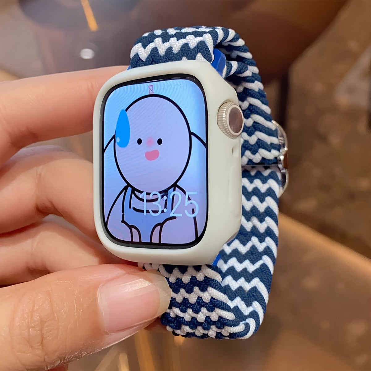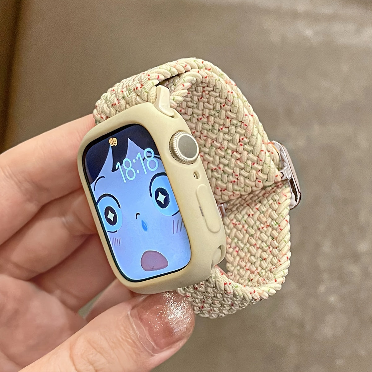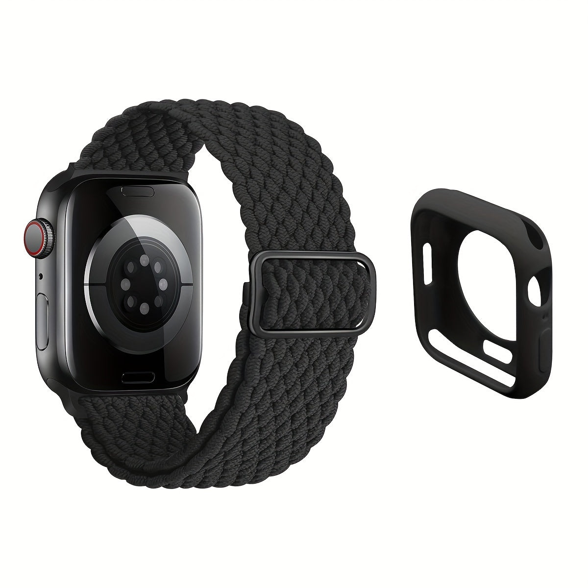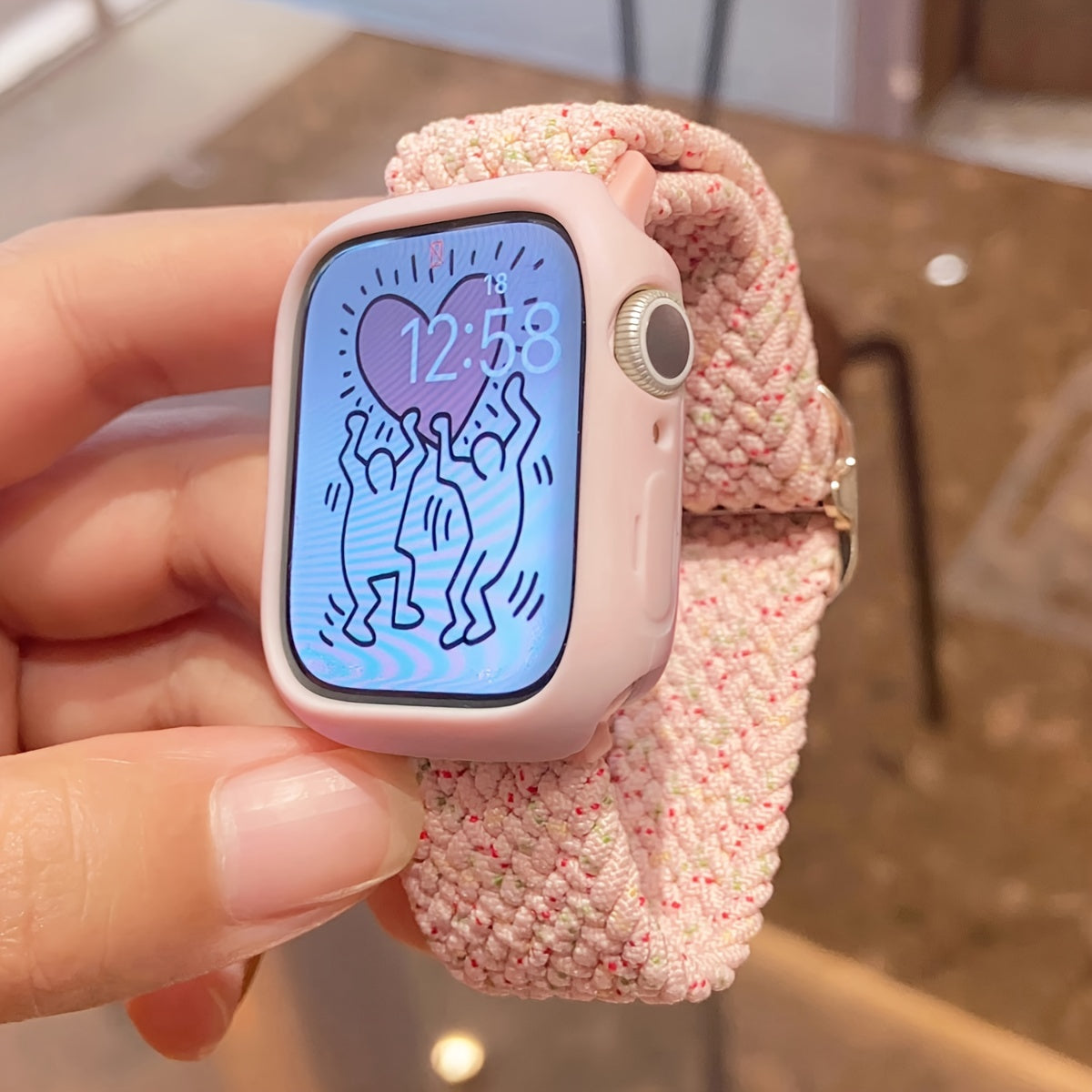 Набор из 2 модных эластичных тканевых ремешков для часов и мягкого силиконового защитного чехла для Apple Watch. Подходит для Apple Watch размером от 38 мм до 49 мм и серии Ultra до 1. Умные часы.
