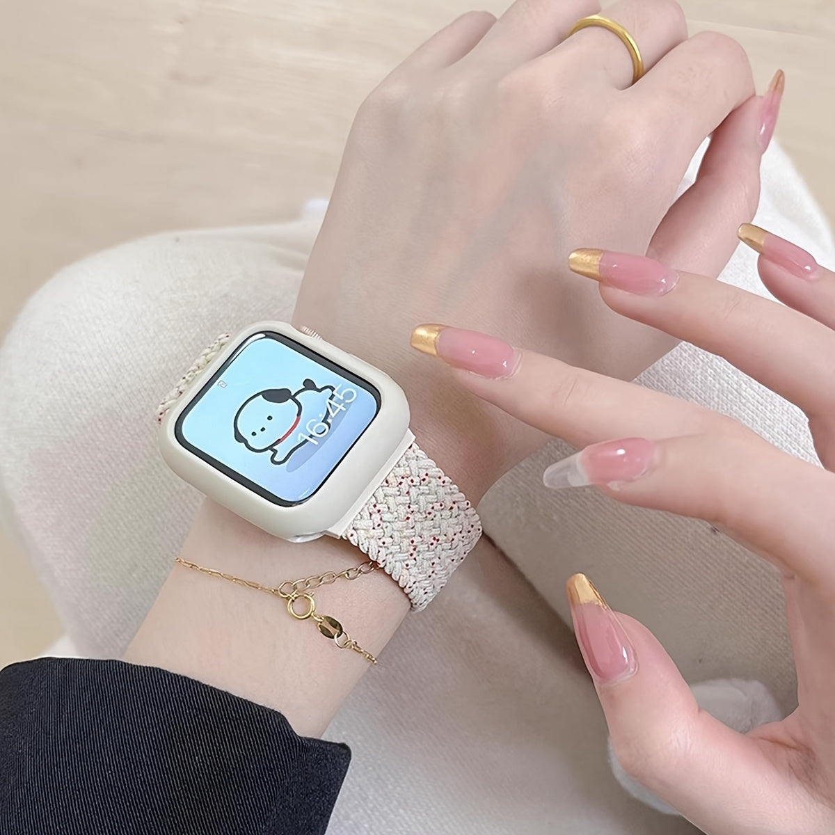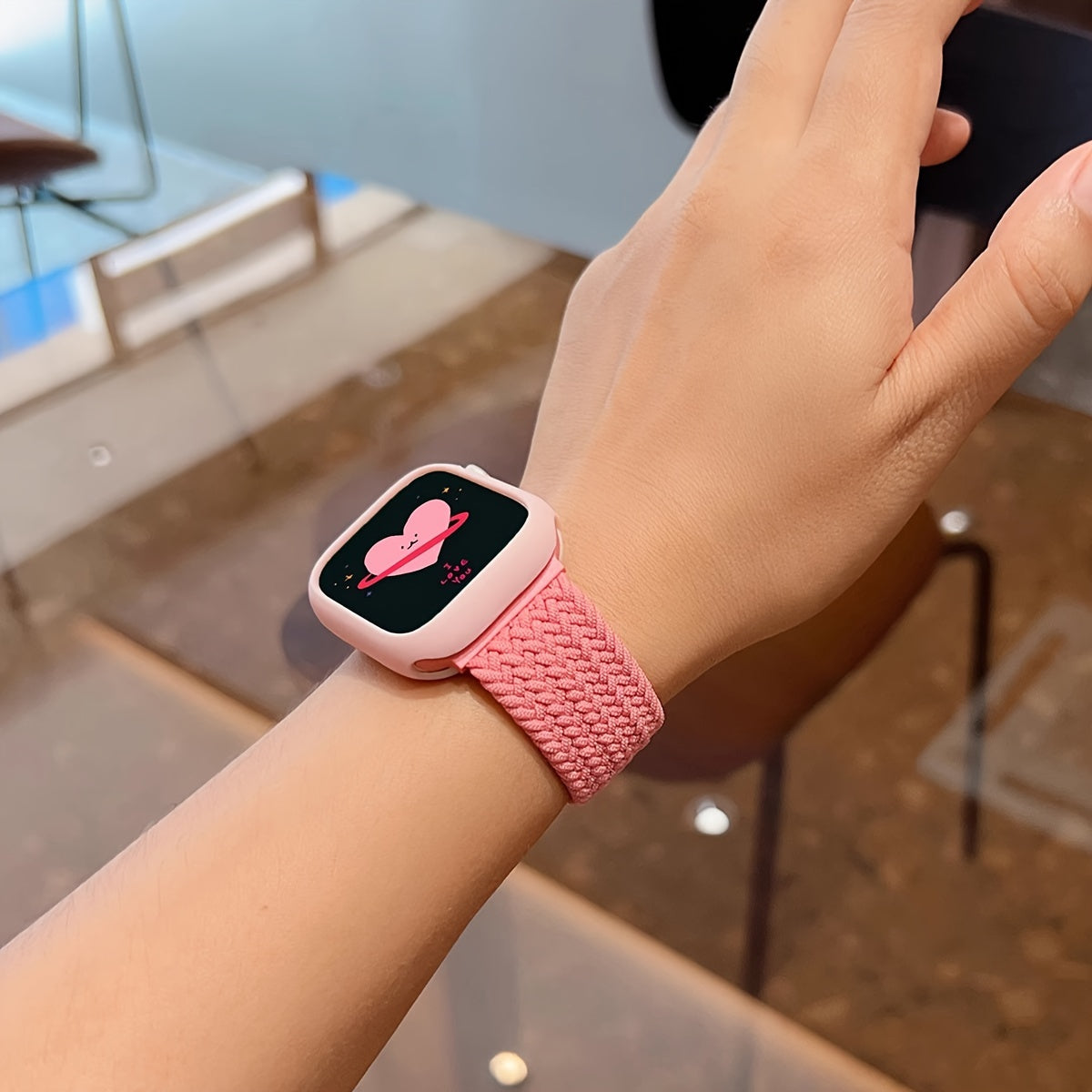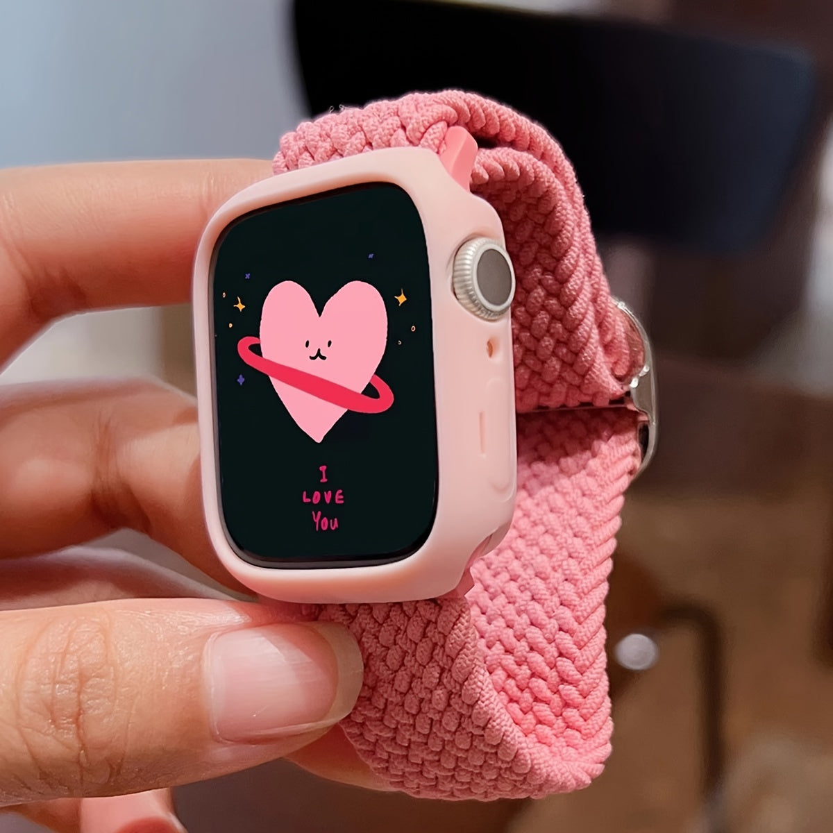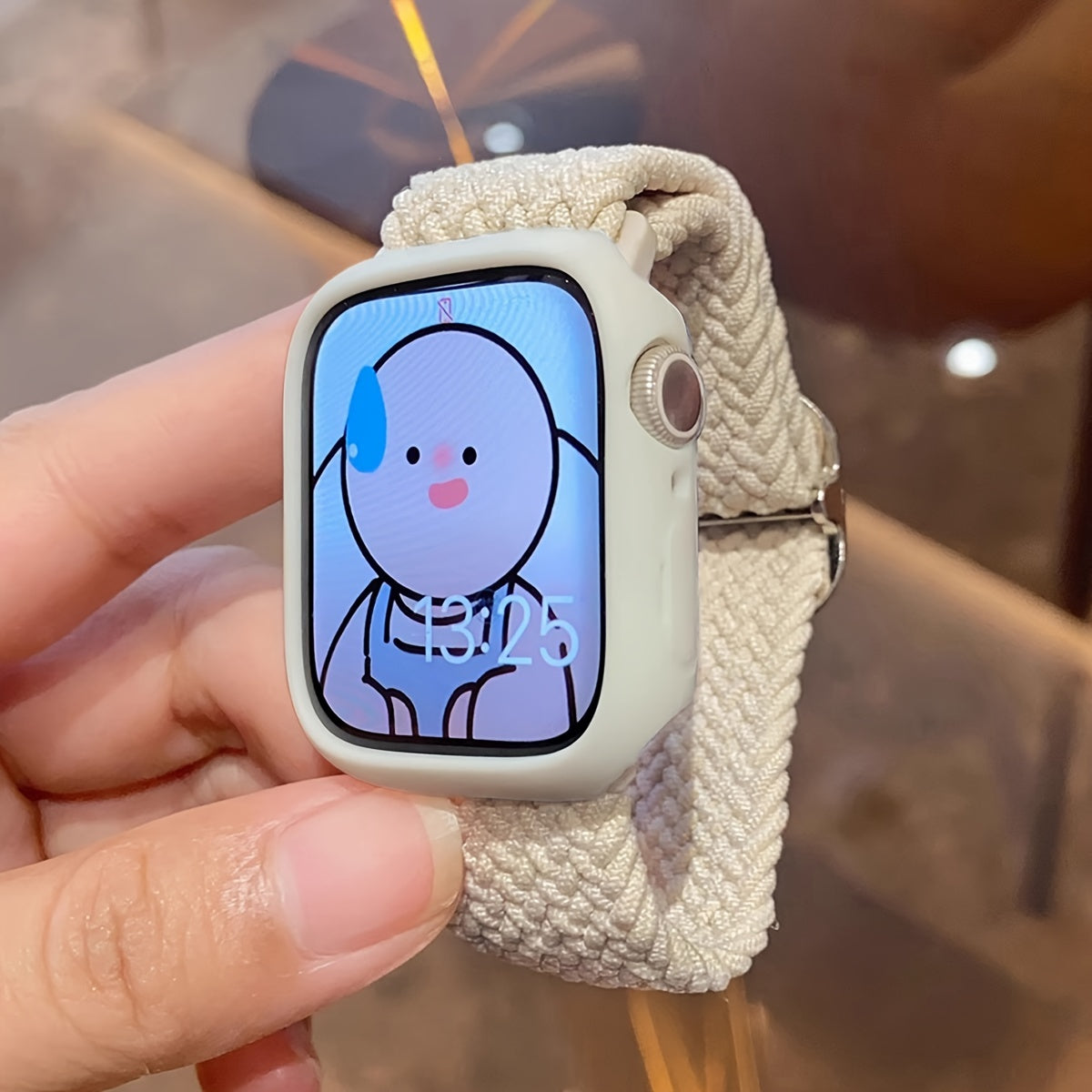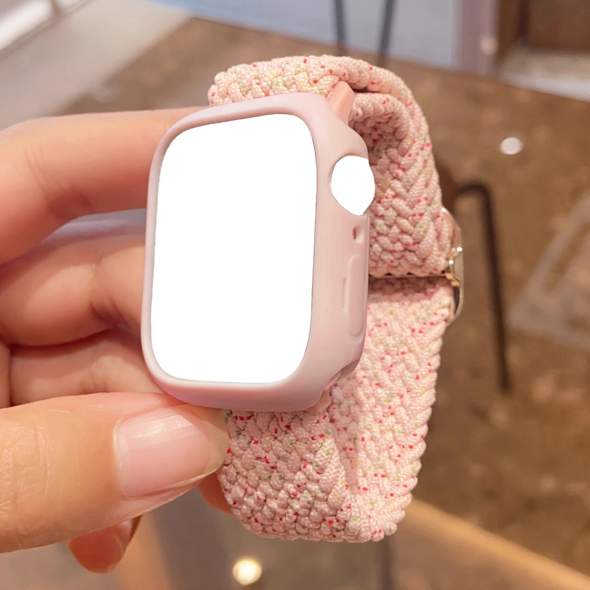 Набор из 2 модных эластичных тканевых ремешков для часов и мягкого силиконового защитного чехла для Apple Watch. Подходит для Apple Watch размером от 38 мм до 49 мм и серии Ultra до 1. Умные часы.