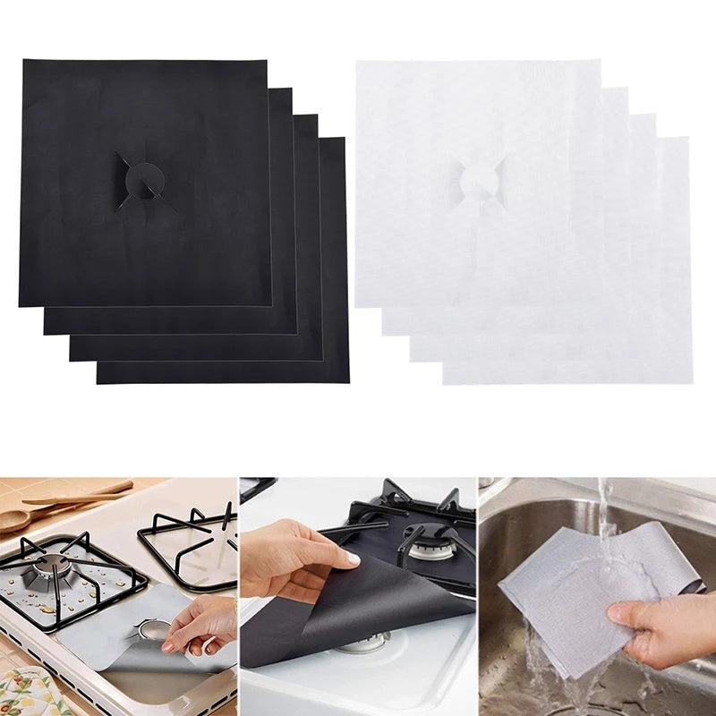 Набор из 2-х защитных крышек для плиты из стекловолокна, которые не прилипают, многоразовые, водонепроницаемые и легко поддаются обрезке для подходящего размера. Не требует электричества, идеально подходит для газовых плит на кухне.