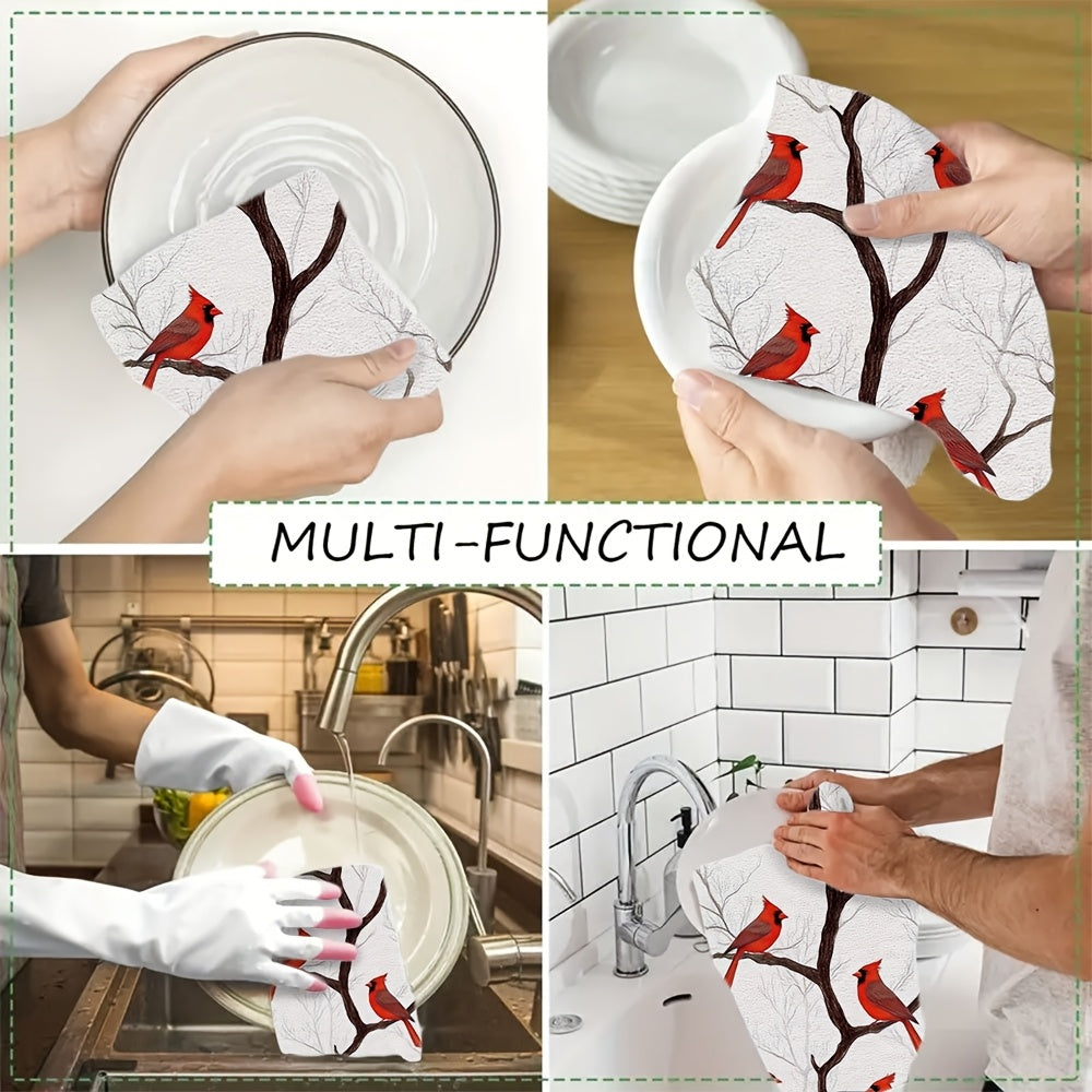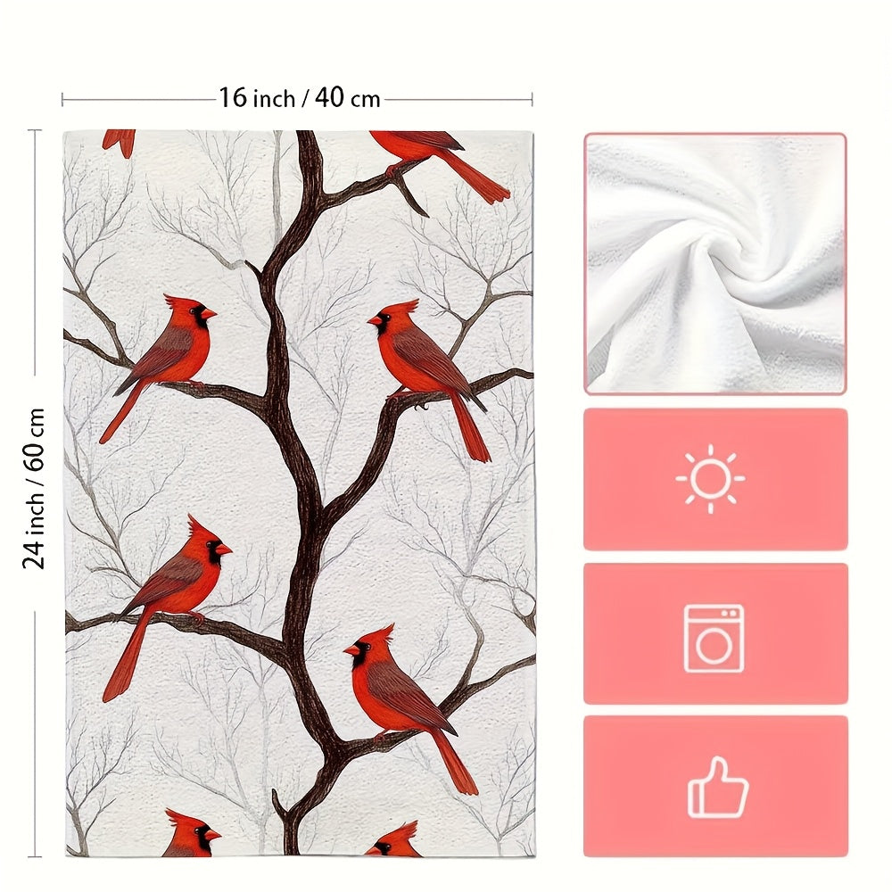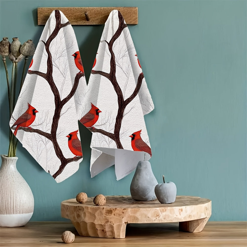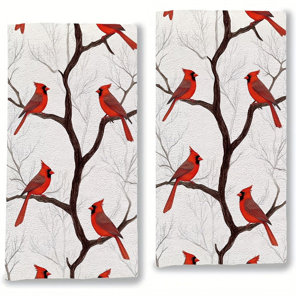 Набор из 2 кухонных полотенец с изображением кардиналов на ветках, цифровой художественный дизайн, ультрамягкие и высокоабсорбирующие кухонные полотенца для праздничного декора, можно стирать в машине, размер 16x24 дюйма - номер товара: 2KYSYS1225071