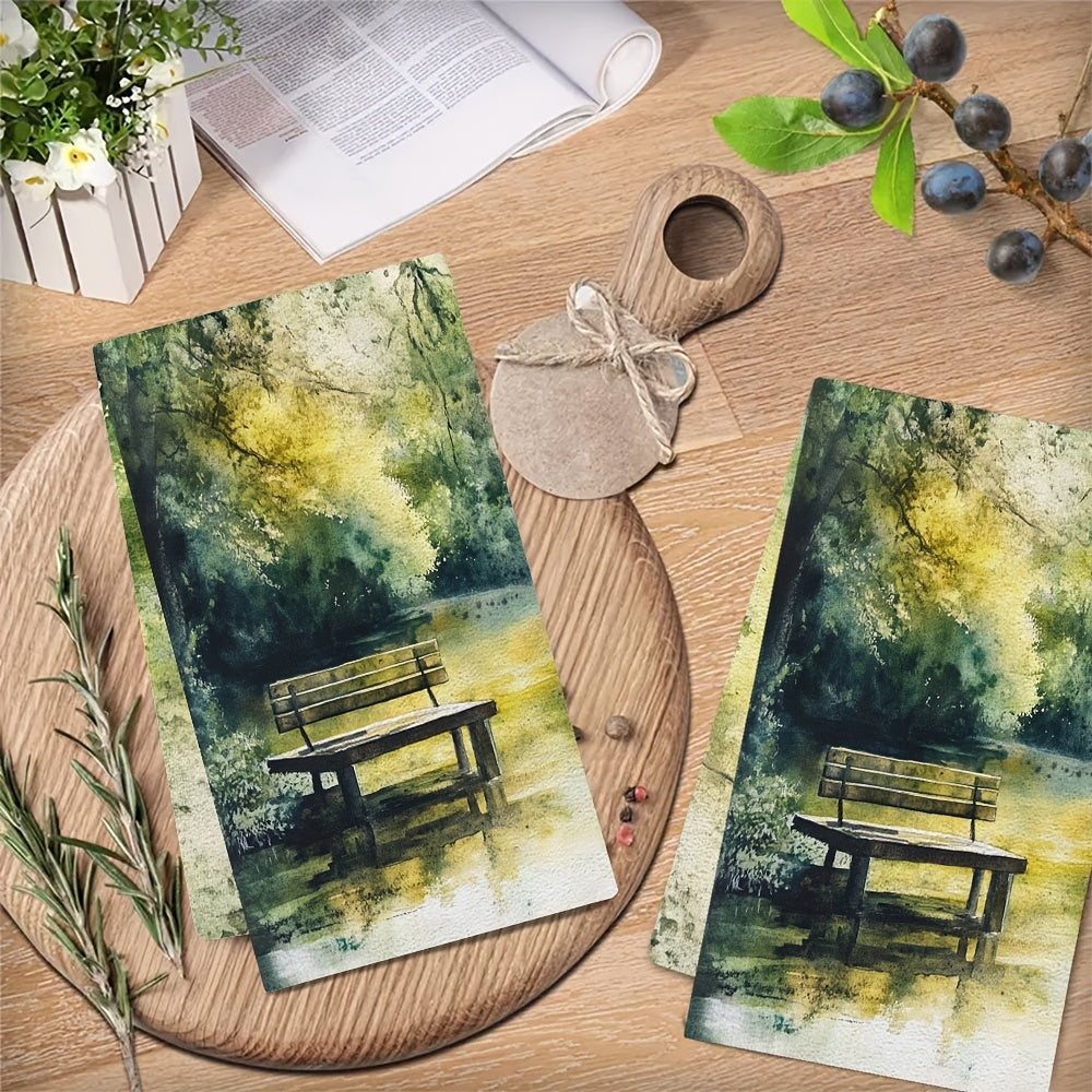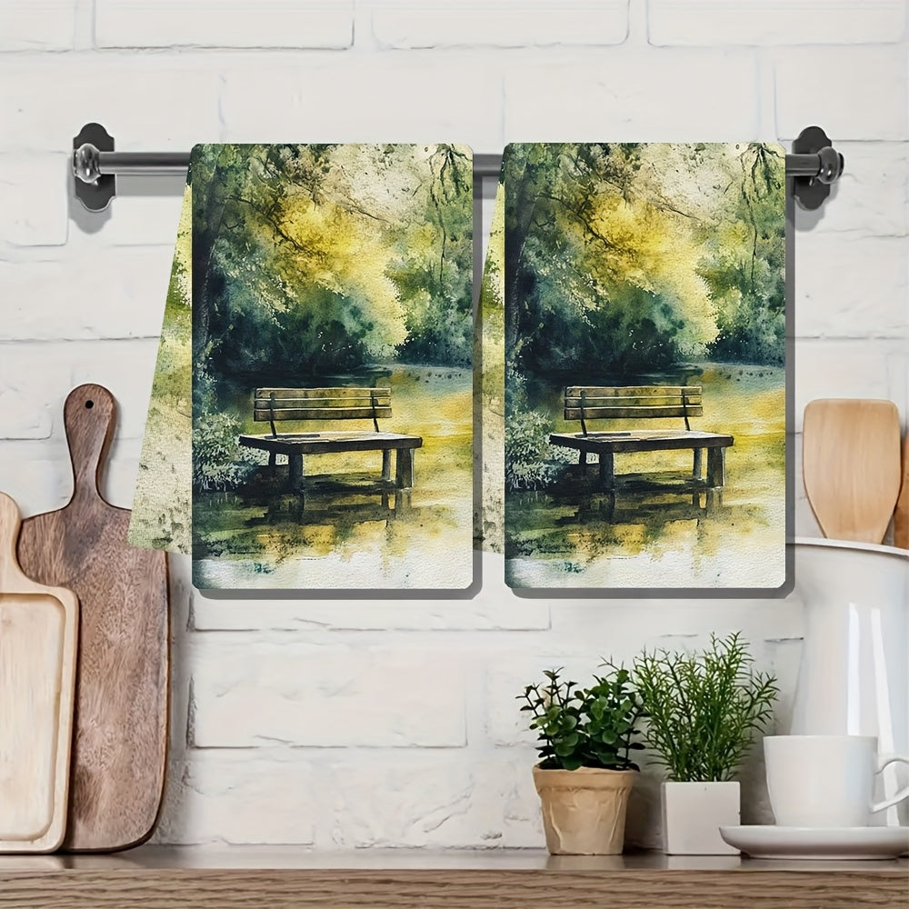 Набор из 2 кухонных полотенец - с изображением спокойной красоты мирного сада, роскошно мягкие и впитывающие полотенца для рук, идеальные для праздничного декора, легко стираются в стиральной машине, размер 16x24 дюйма_ Код товара: 2KYSYS1218638