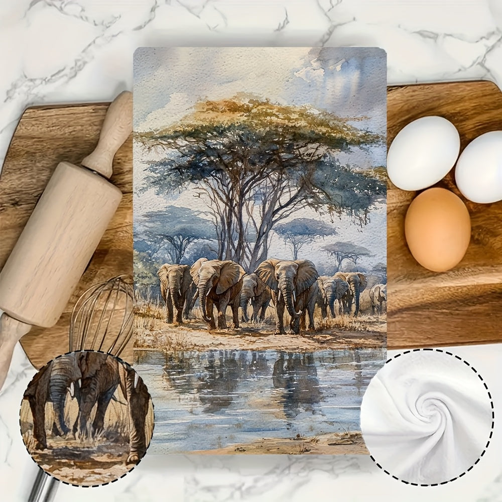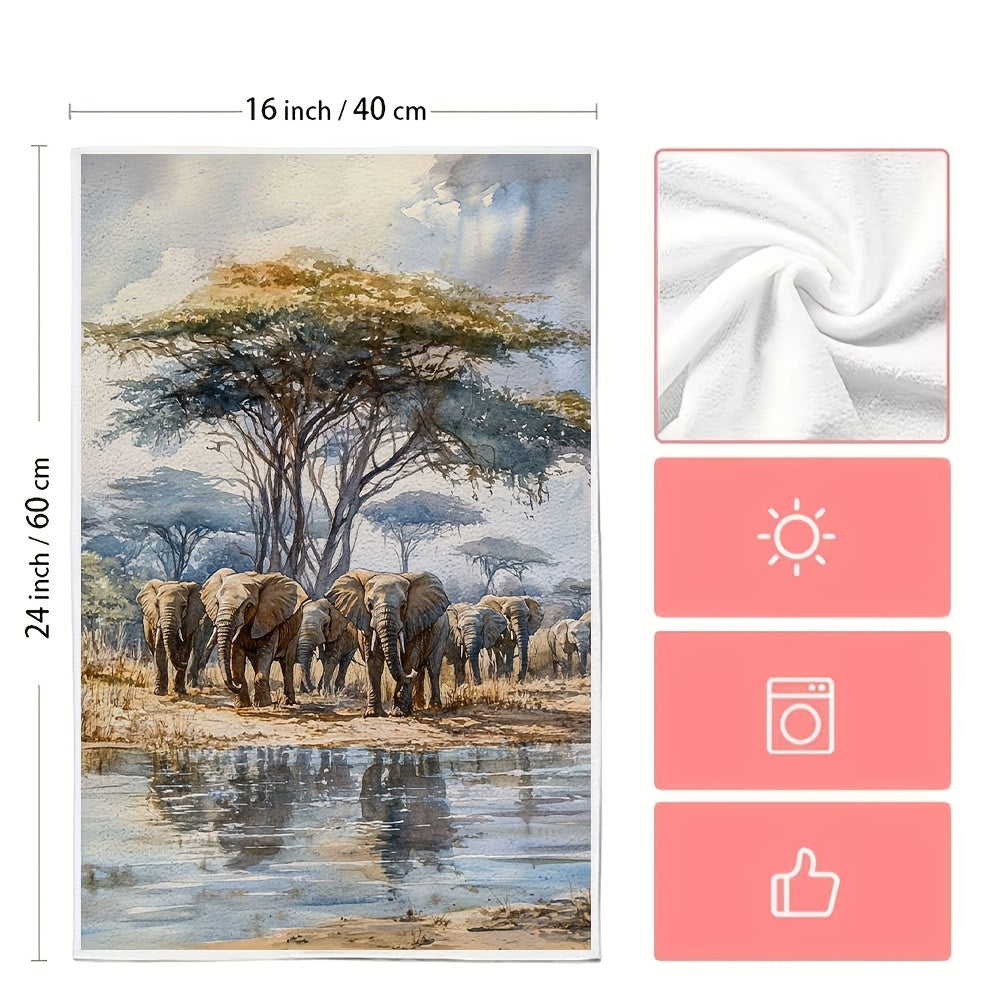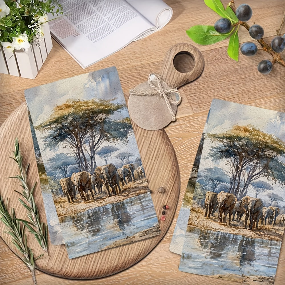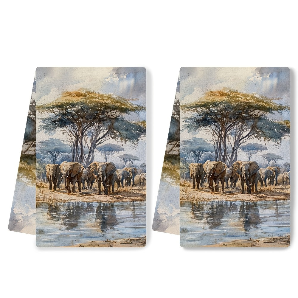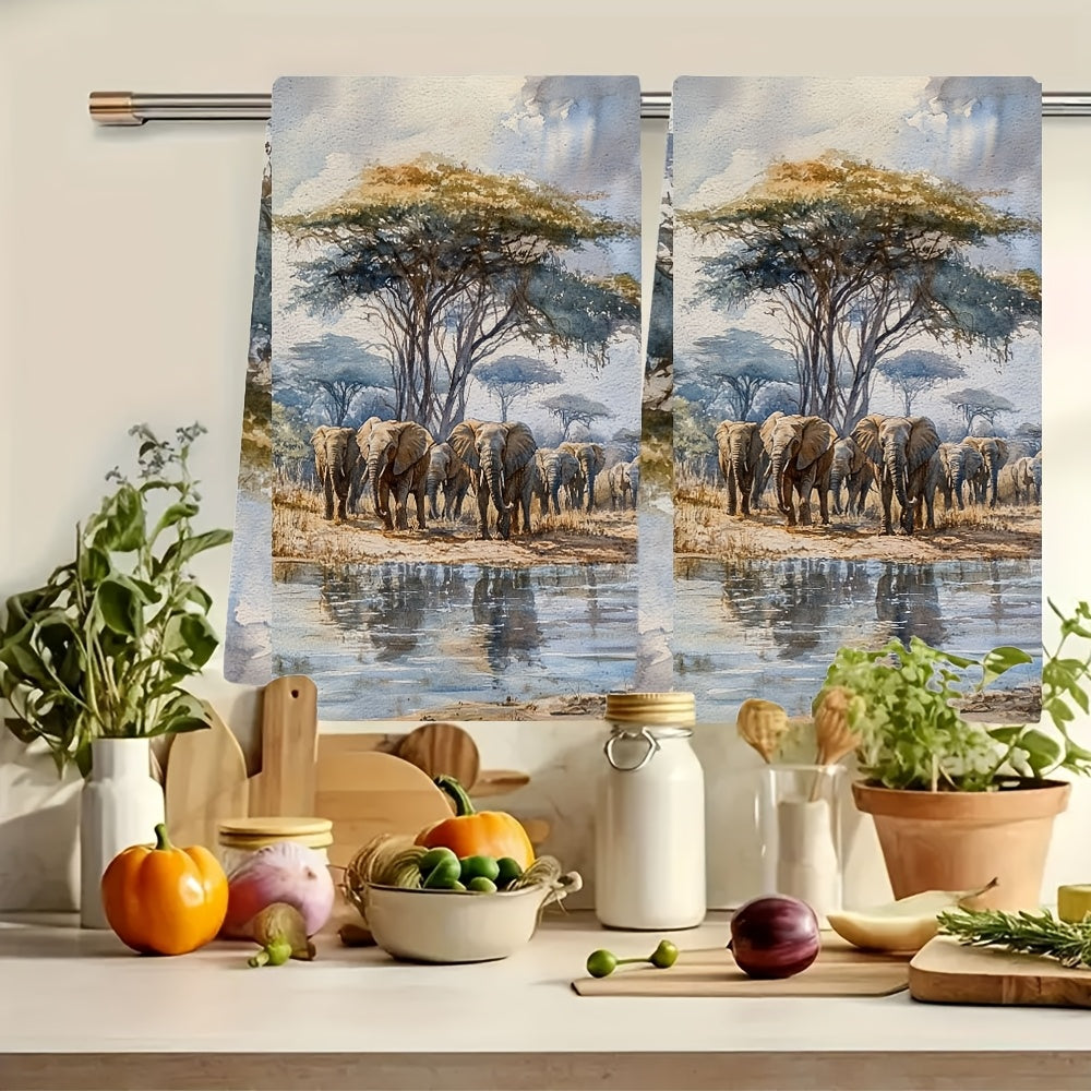 Набор из 2 кухонных полотенец, роскошно мягких, с потрясающим изображением стада слонов в дикой природе, высокоабсорбирующие полотенца для рук для праздничного декора, можно стирать в машине, размер 16x24 дюйма - Код товара: 2KYSYS1218584