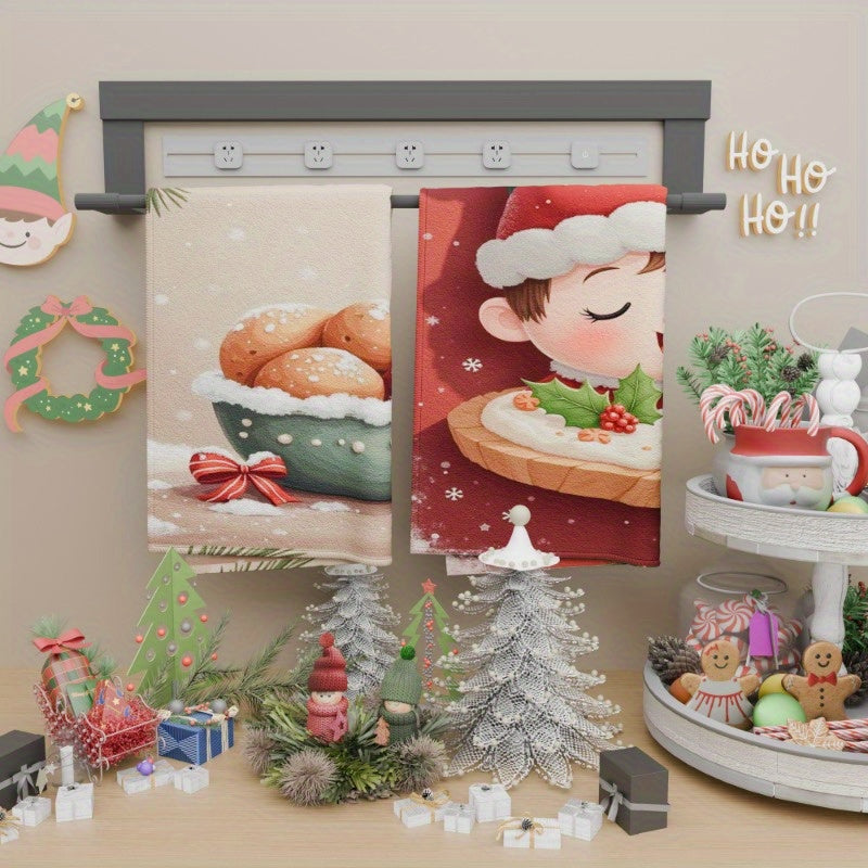 Набор из 2 кухонных полотенец размером 45,72*66,04 см, отлично подходит для чая и рождественского зимнего декора. Подарите радость Рождества с этими уютными полотенцами, идеально подходящими для подарков и украшения вашего дома.