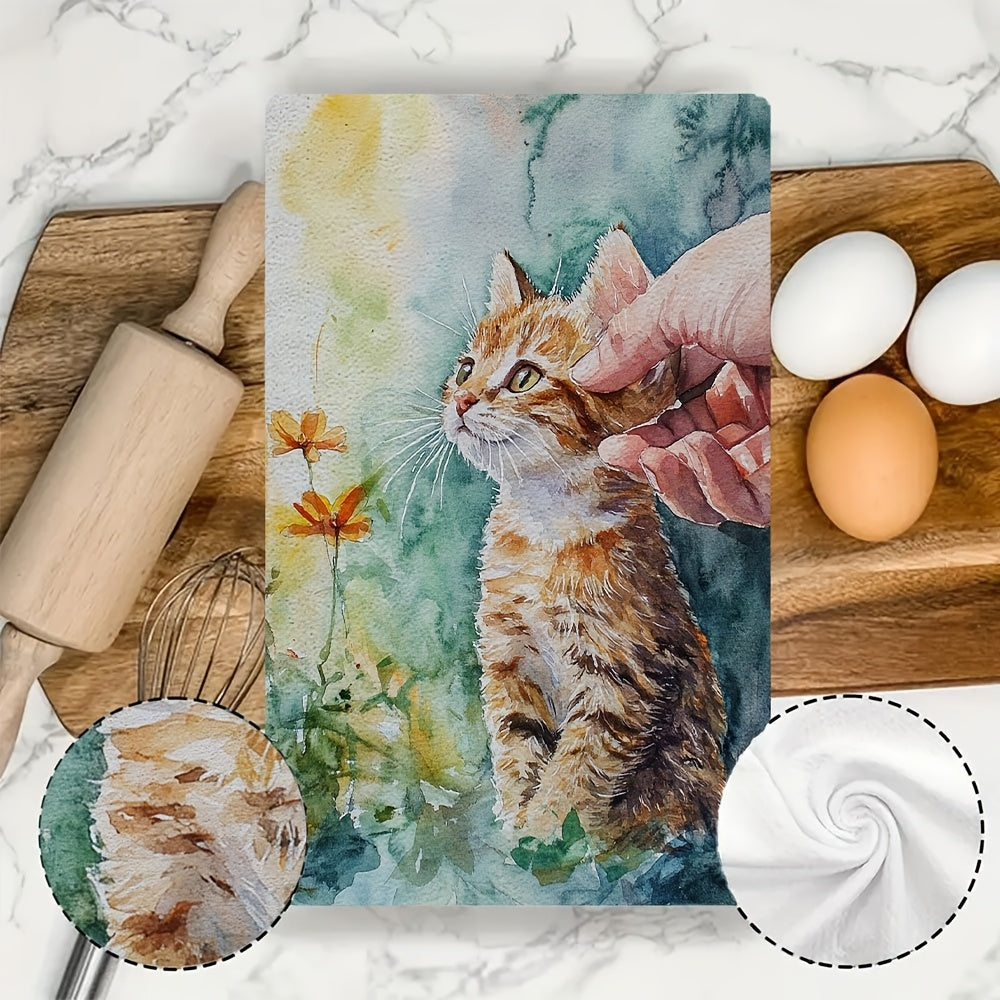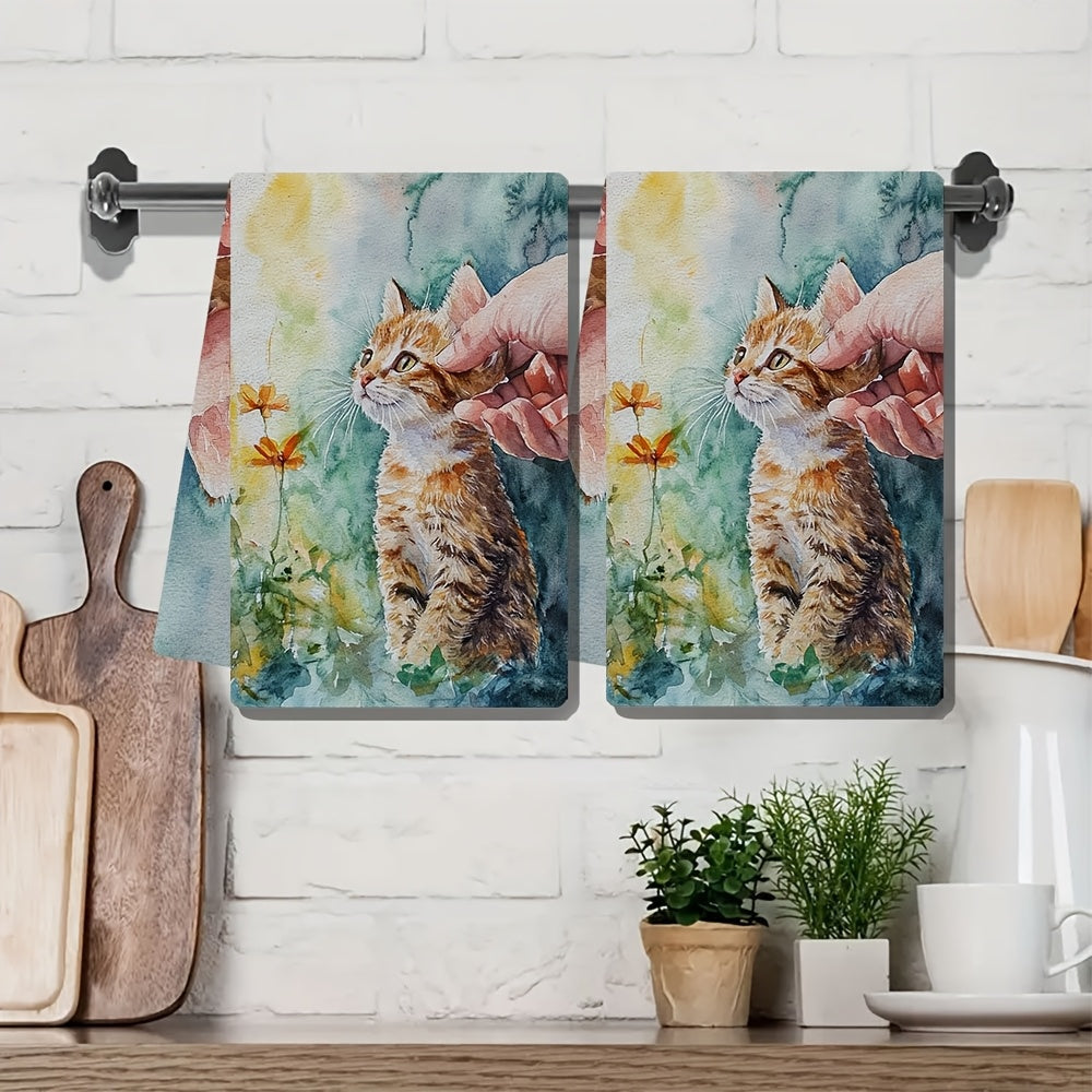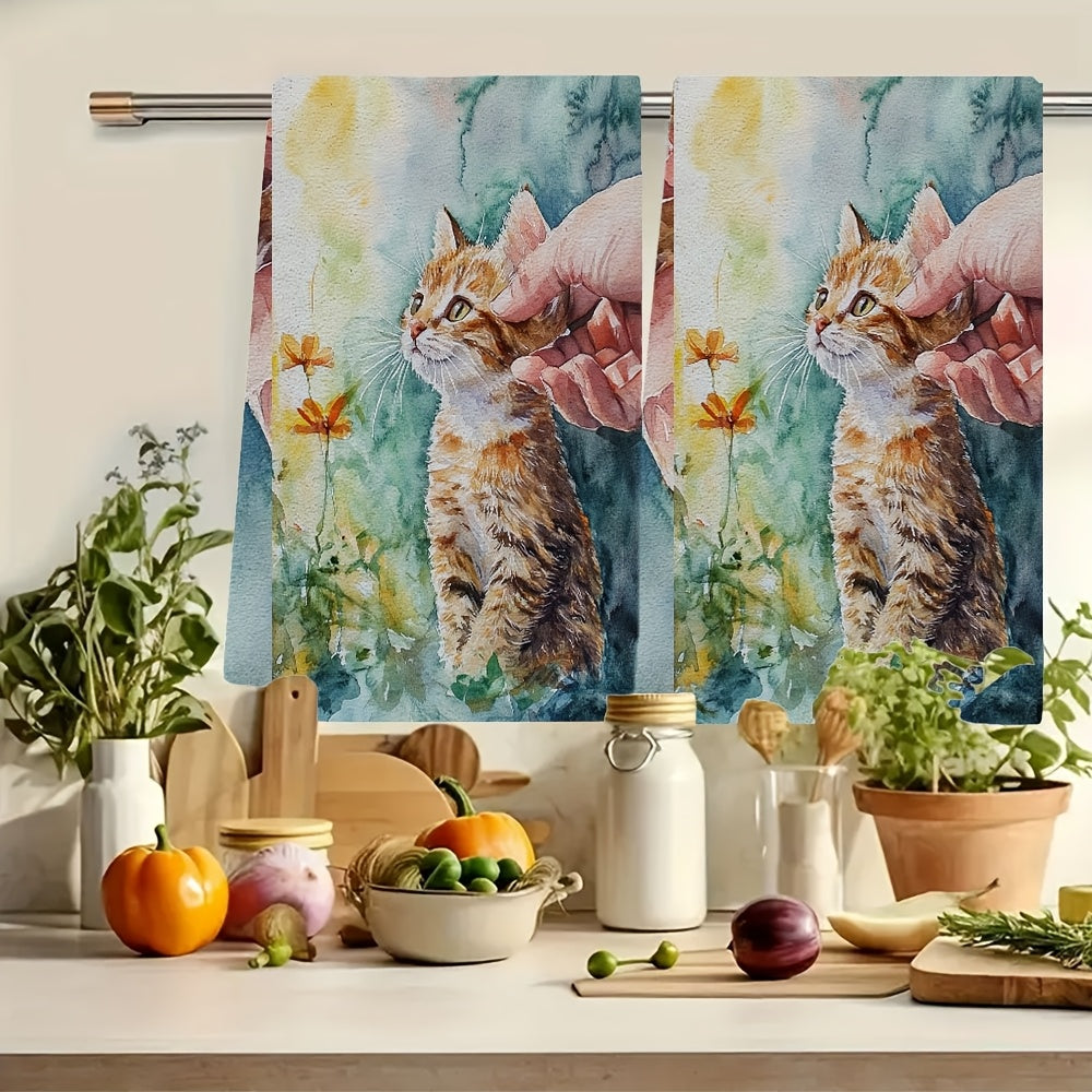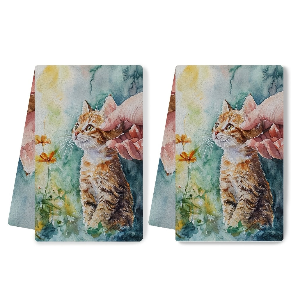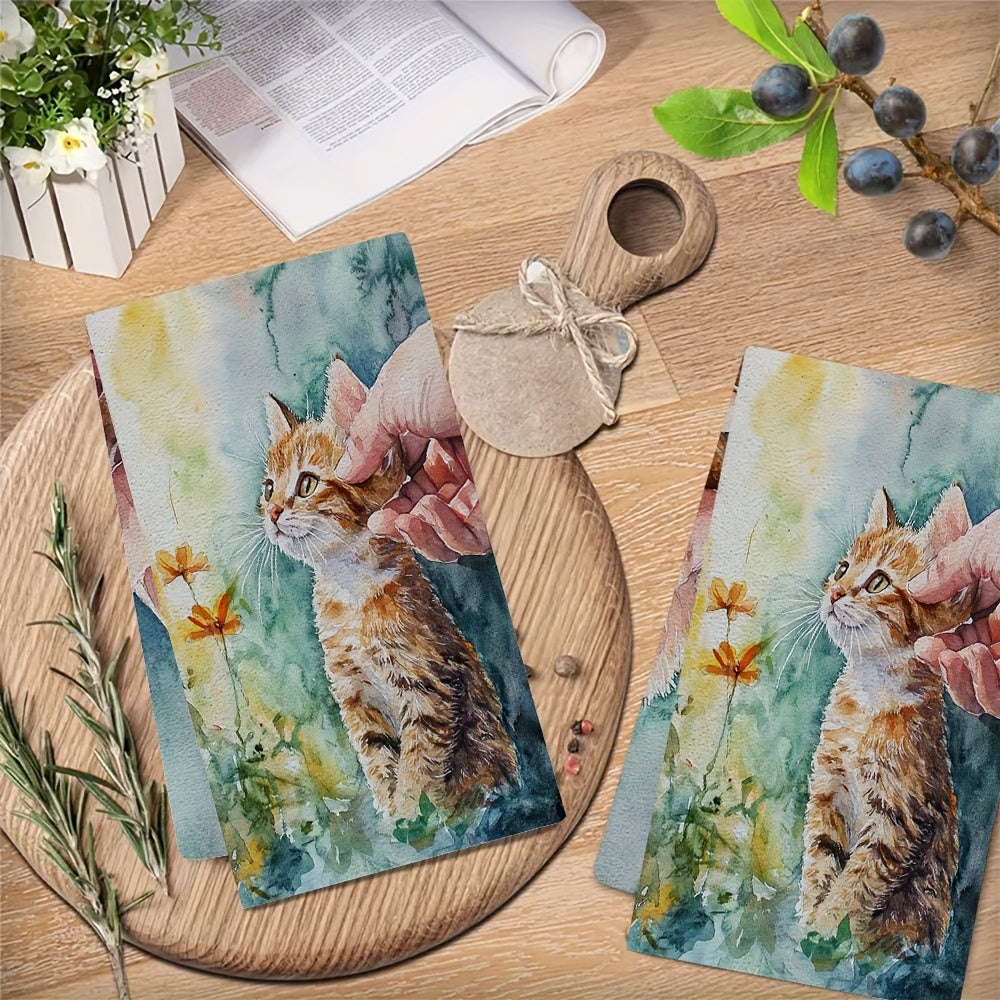 Набор из 2 кухонных полотенец, супер мягкие с восхитительным ароматом котенка, встречающего нового друга, высоко впитывающие кухонные полотенца для праздничного декора, легко стираются в стиральной машине, размер: 16x24 дюйма - номер товара: 2KYSYS1218456