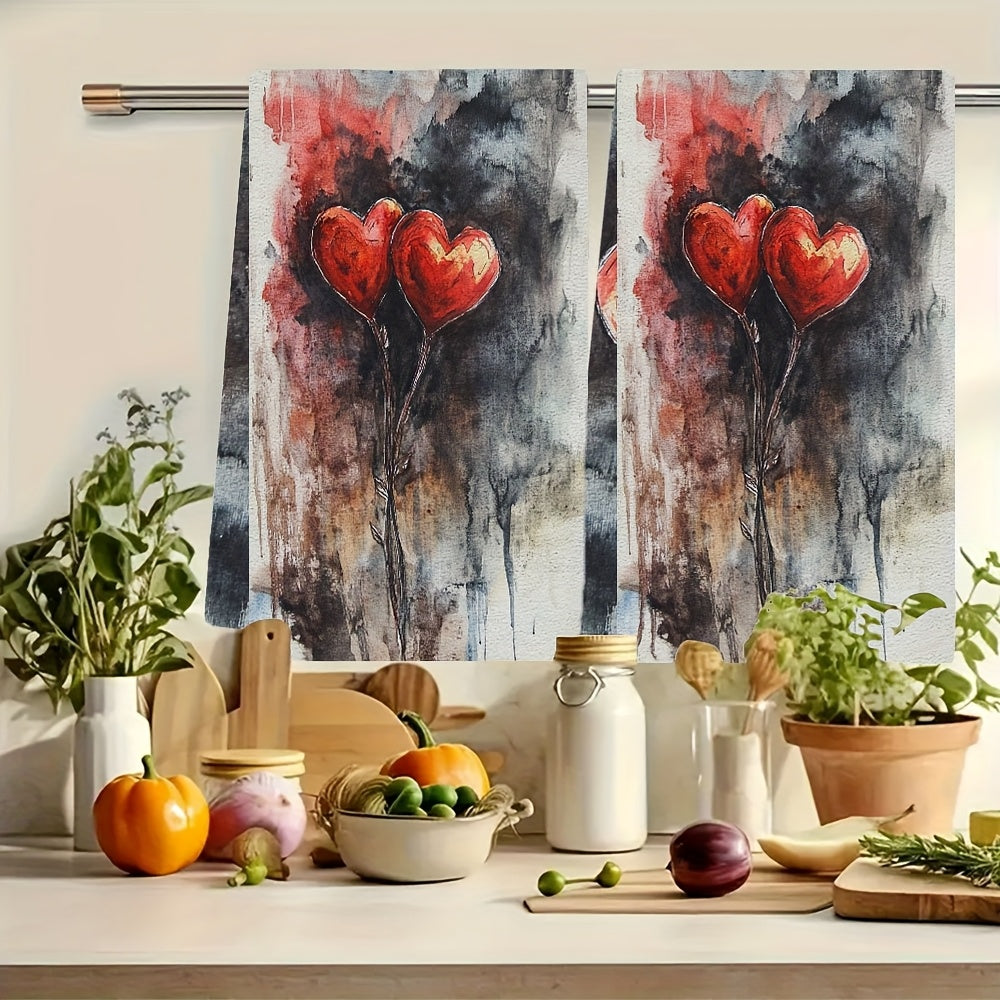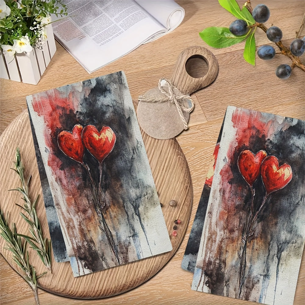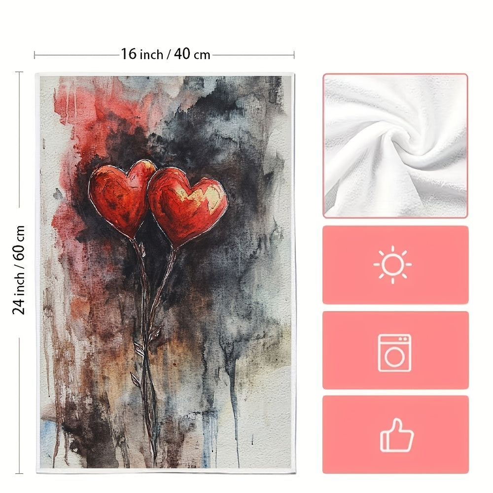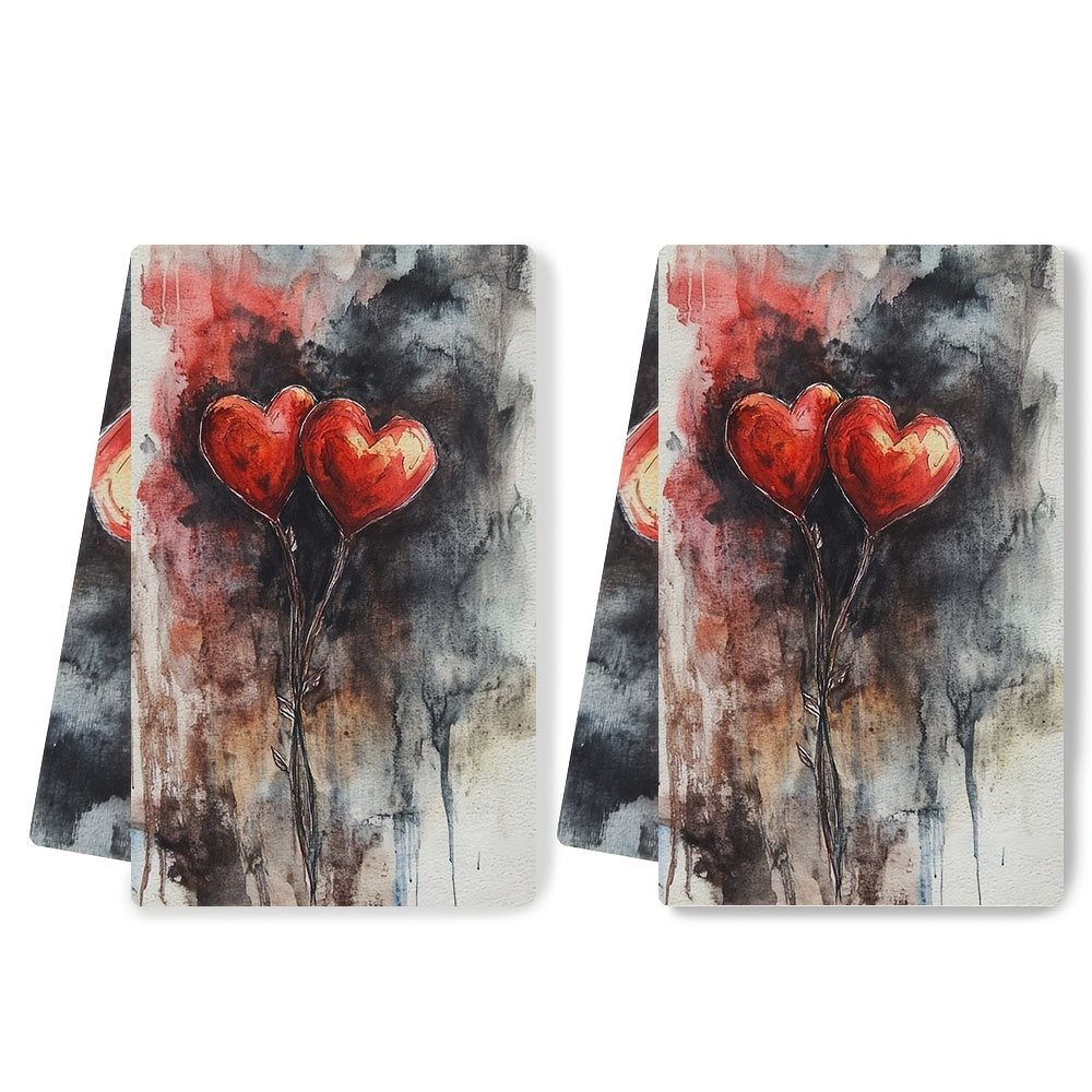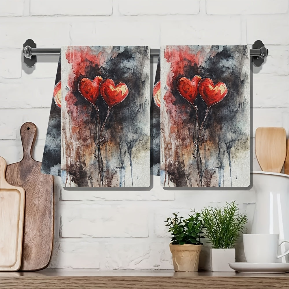 Набор из 2 кухонных полотенец, ультрамягкие и высокоабсорбирующие полотенца для рук, для декора ко Дню Святого Валентина, машинная стирка, 16x24 дюйма - Артикул: 2KYSYS1217672