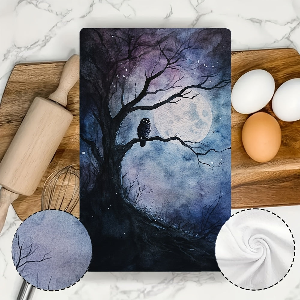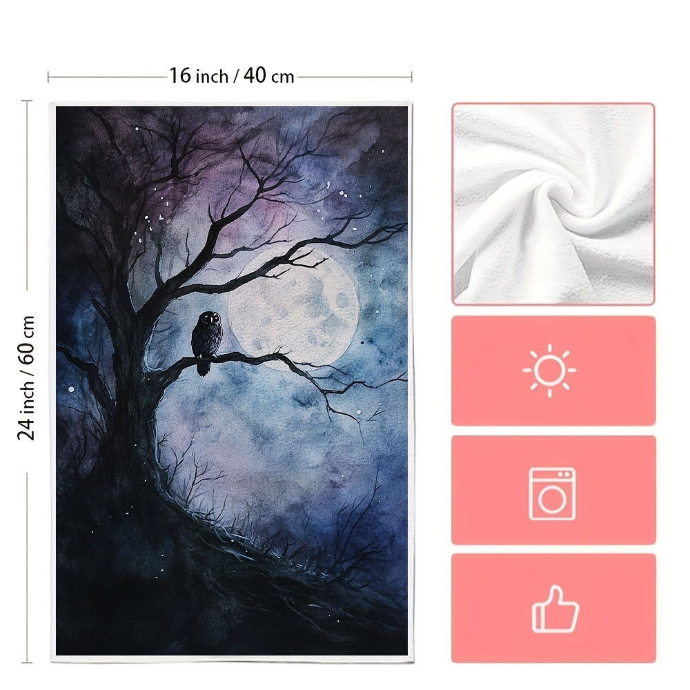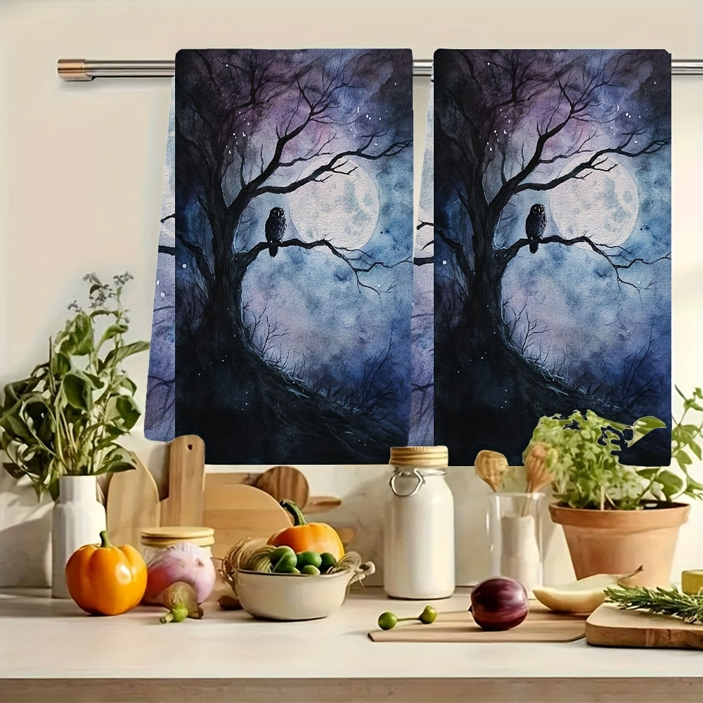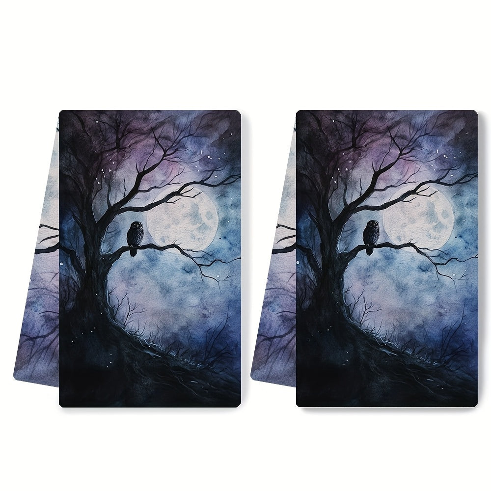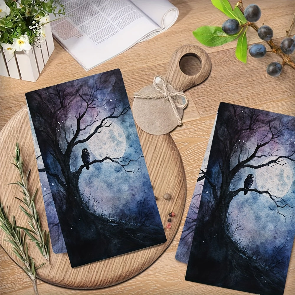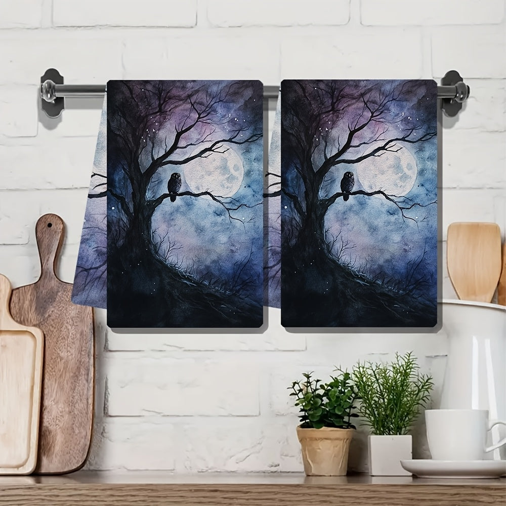 Набор из 2 кухонных полотенец, ультрамягкие с нежным уханьем совы ночью, высокоабсорбирующие полотенца для рук, идеальные для праздничного декора, машинная стирка, размер 16x24 дюйма, номер дизайна 2KYSYS1218674